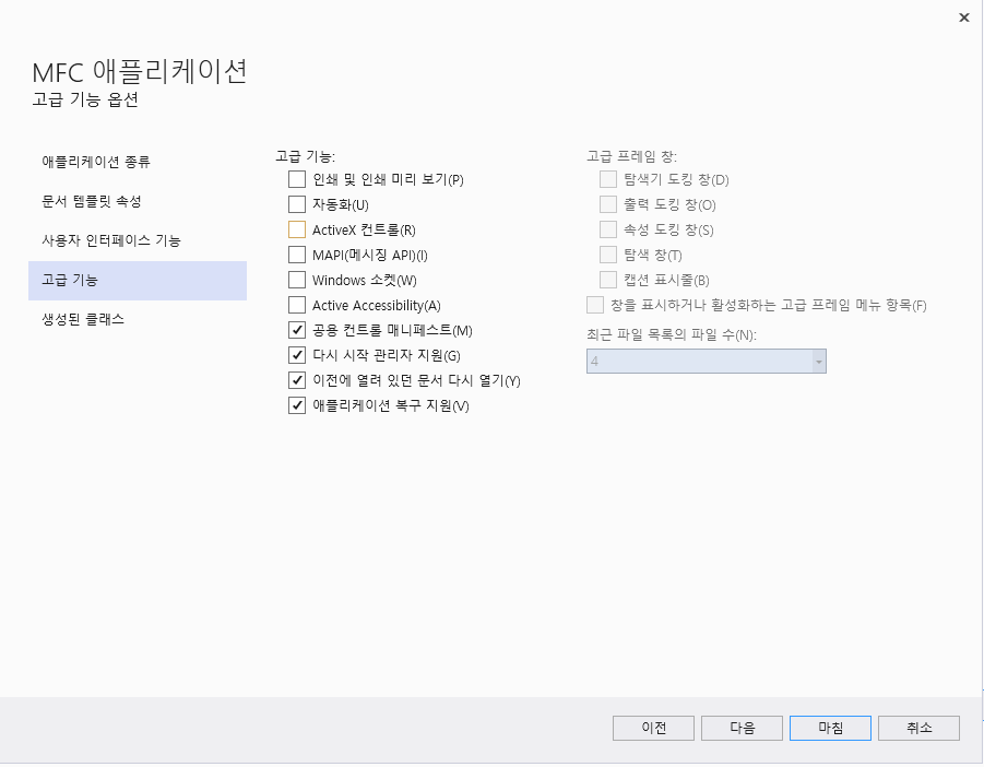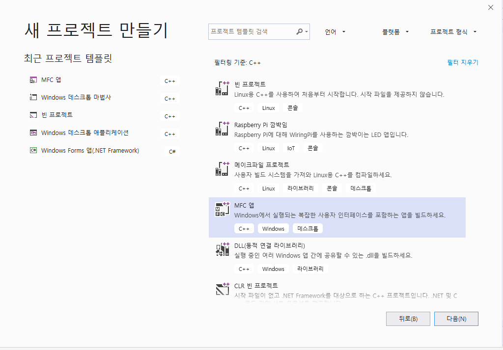 "MFC 앱"을 클릭합니다.