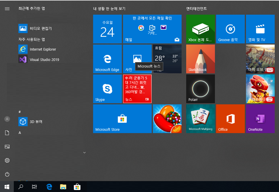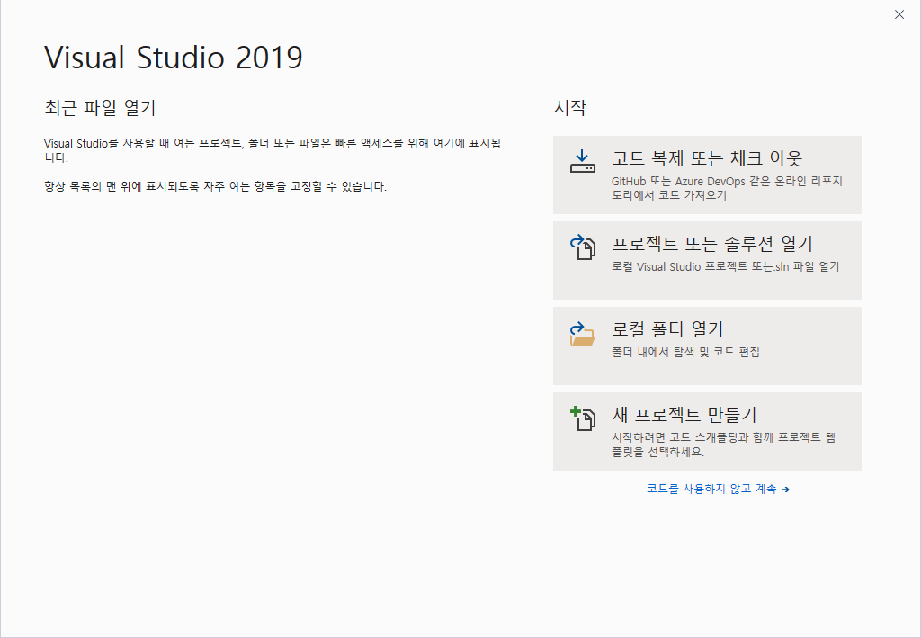 Visual Studio 2019를 켭니다.