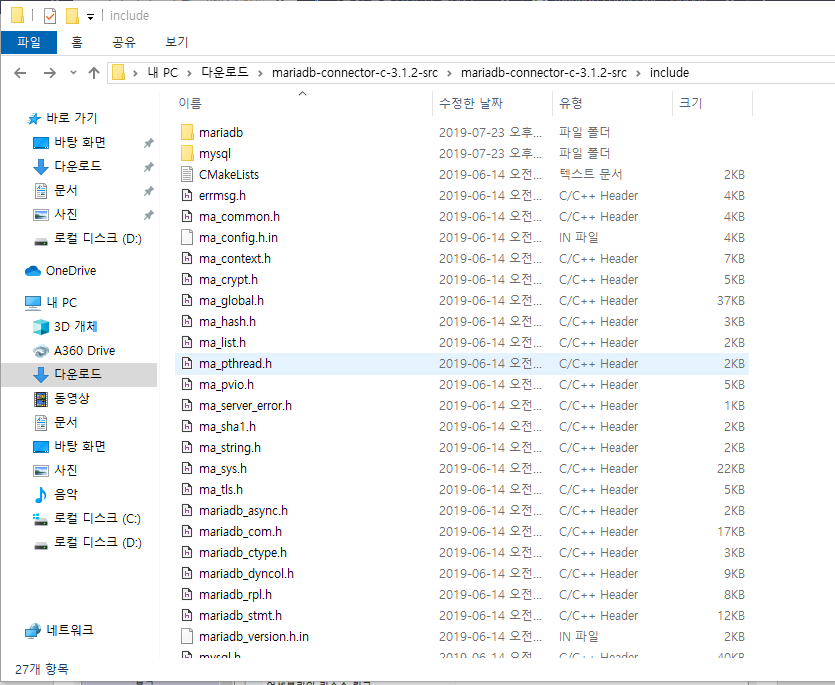 또는 c:\....\mariadb-connector-c-3.1.2-src\mariadb-connector-c-3.1.2-src\include