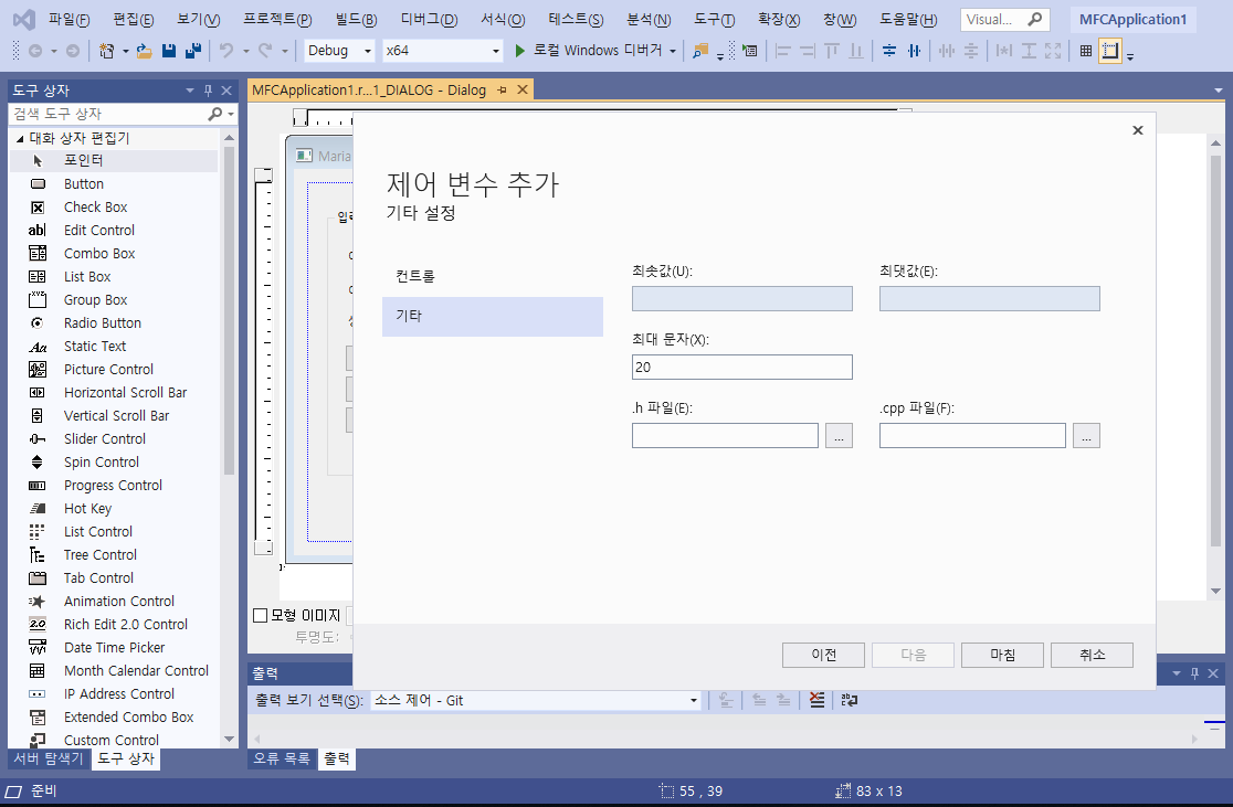이름(N)은 "m_txtId"로 하였습니다.