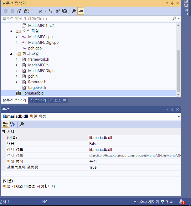 5단계: libmysql.dll 또는 libmariadb.dll 프로젝트에 추가해주기
