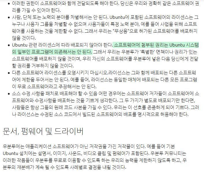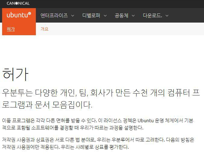 우분투 공식사이트에서 제공하는 라이선싱에 대한 사항이다.