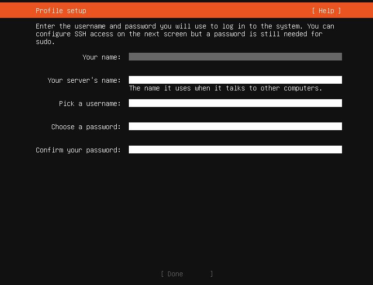 리눅스 우분투 서버 20.04를 설치하게 되면 이렇게 검은색 화면이 뜬다.