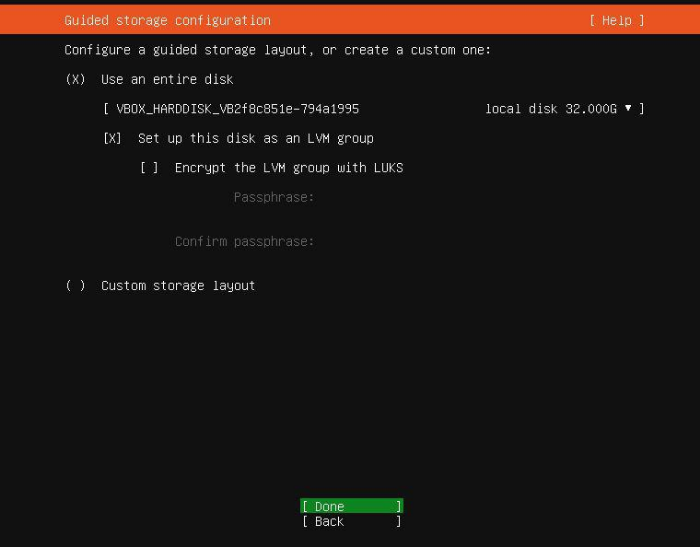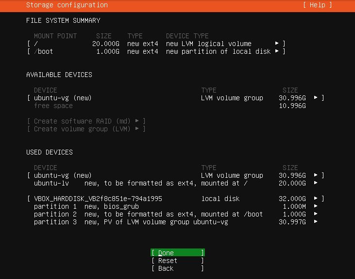 그림 18. 스토레지(저장소) 설정 확인 창 - 우분투 서버 20.04(2021-02-21)