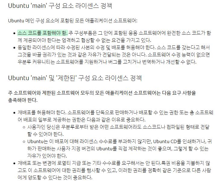 그림 1. 우분투 라이선싱 소개