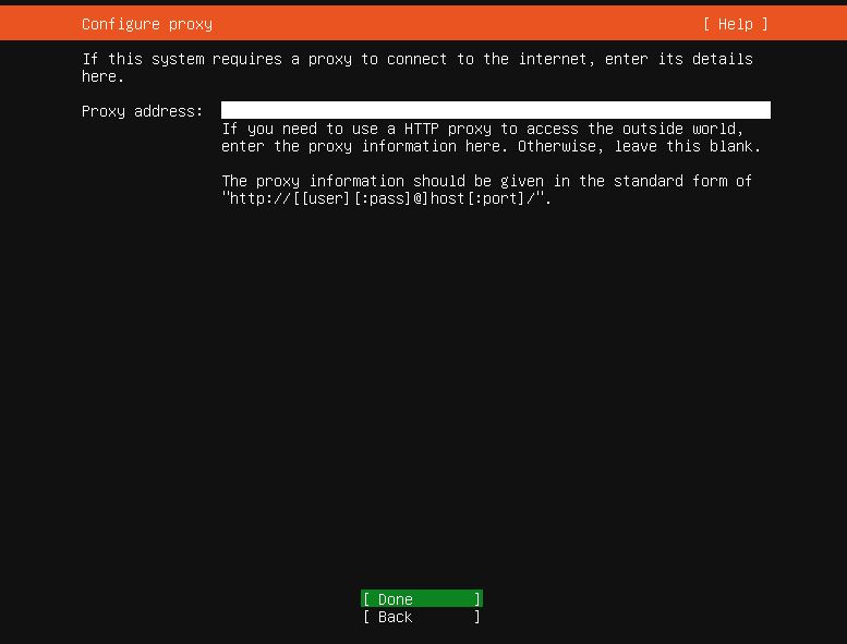 그림 14. 설치 모습 / 프록시 환경설정 - 우분투 서버 20.04(2021-02-21)