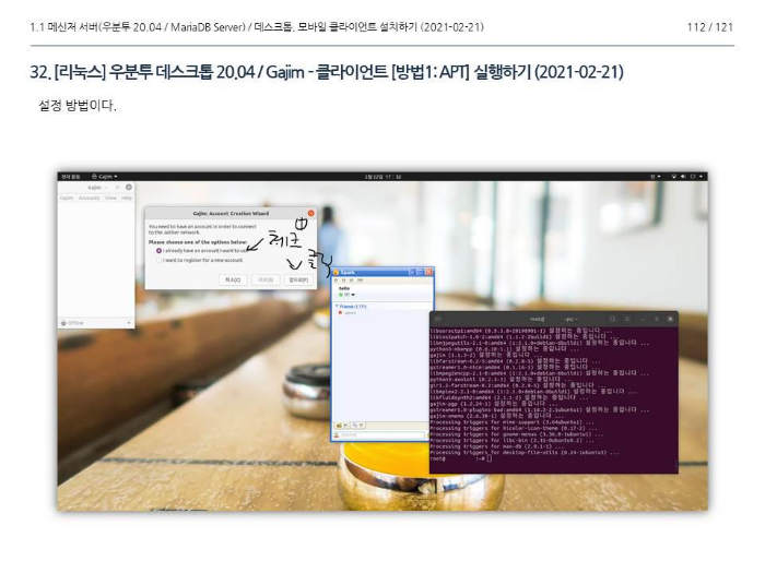 그림 15. 리눅스 (우분투 데스크톱 20.04) - 메신저 예 (2021-02-23)