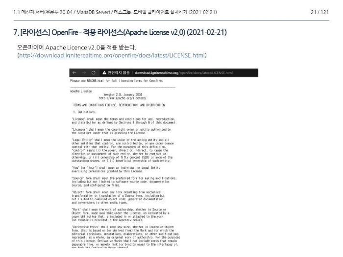 그림 5. 오픈파이어 - 라이선스 소개 (2021-02-23)