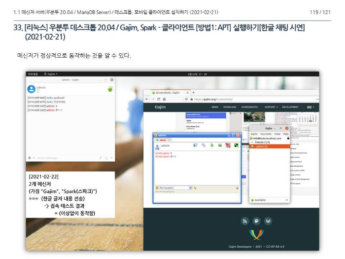 그림 16. 리눅스 (우분투 데스크톱 20.04) - 메신저 예 (2021-02-23)