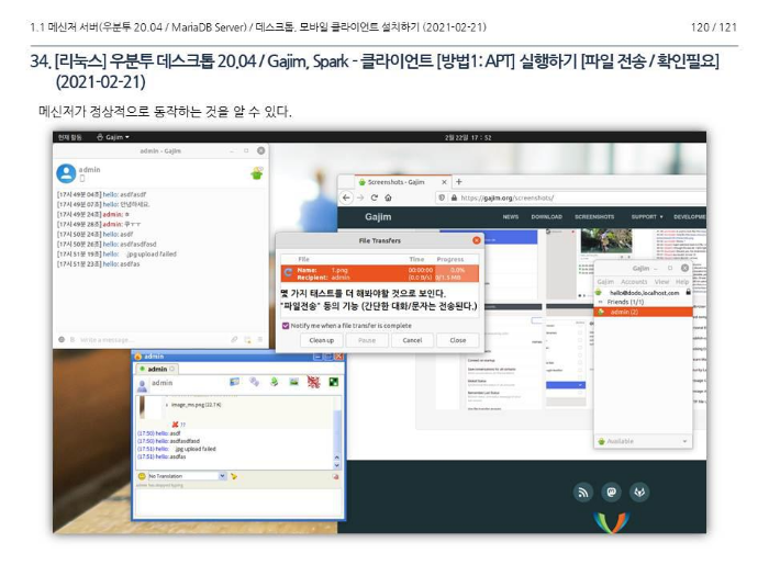 그림 18. 리눅스 (우분투 데스크톱 20.04) - 메신저 시연 모습 (2021-02-23)