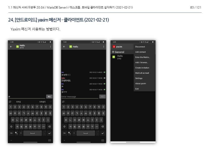 그림 14. 안드로이드 - yaxim 메신저 (2021-02-23)