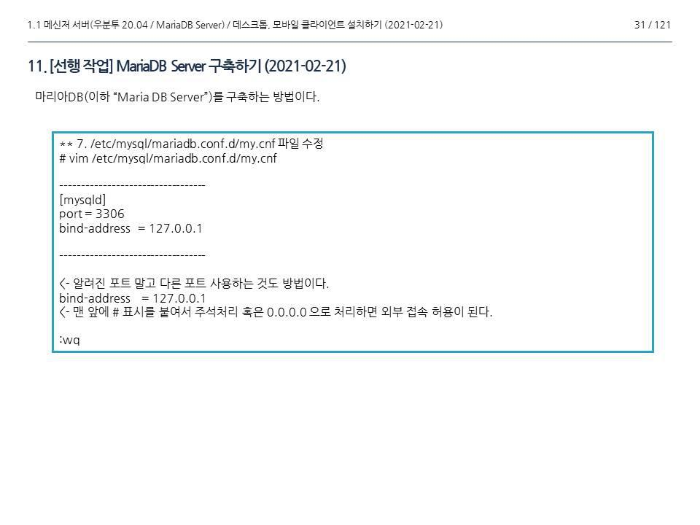 그림 11. 마리아DB서버 - 소개 (2021-02-23)