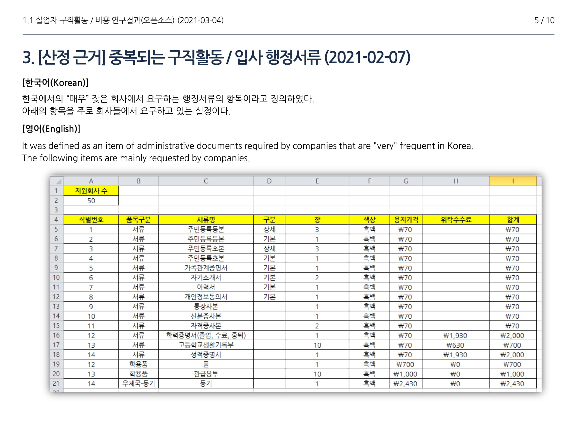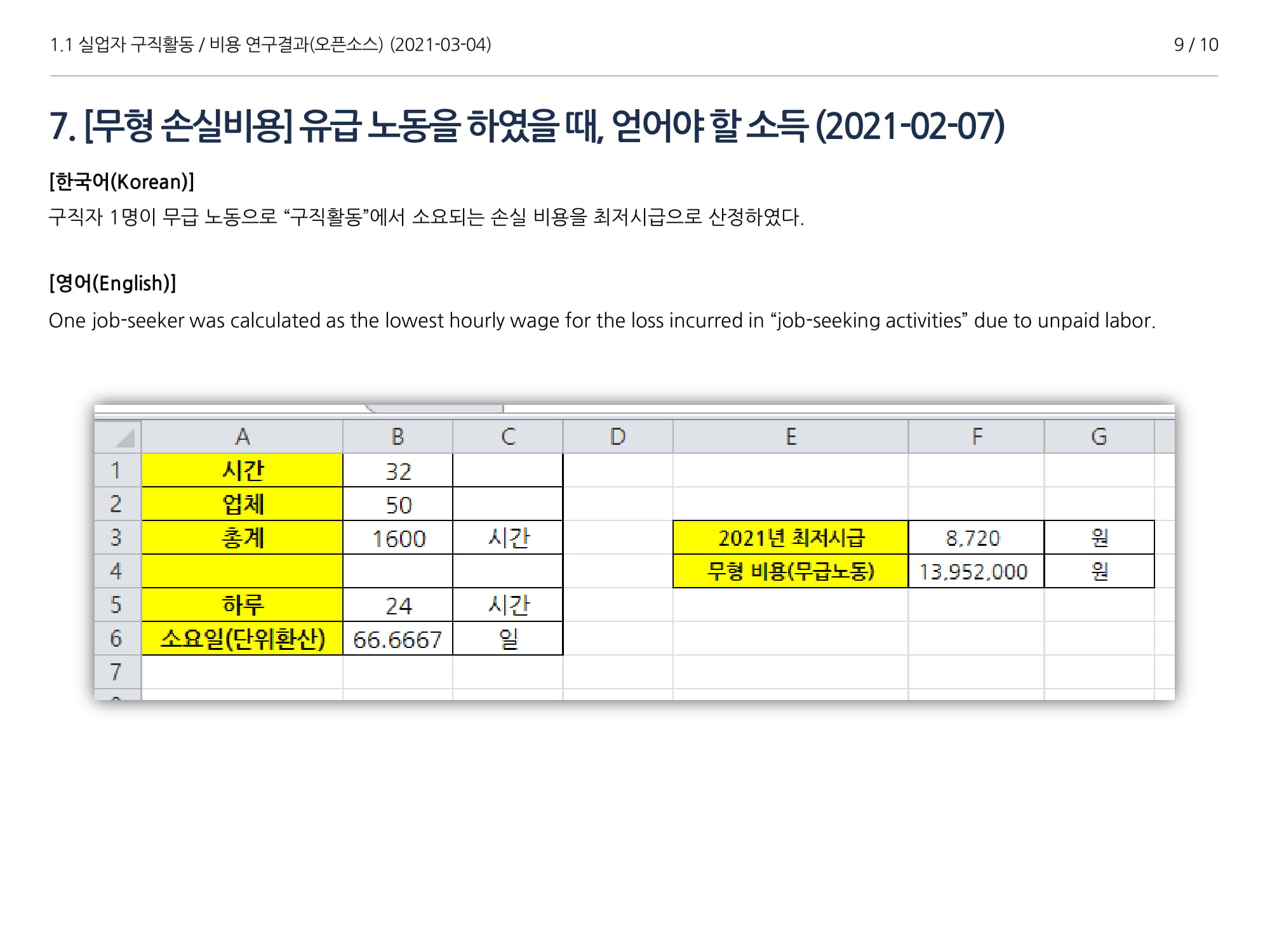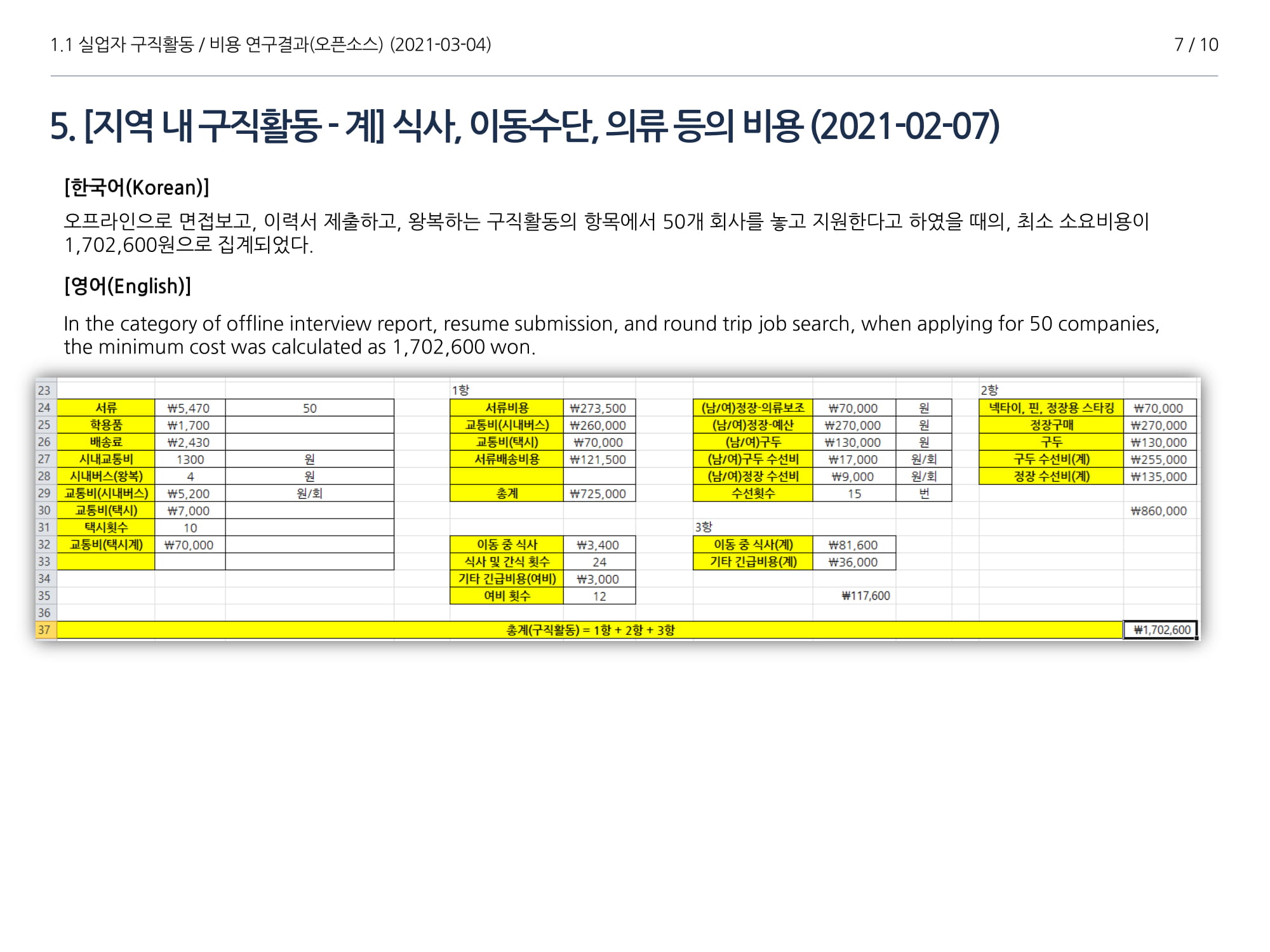 실업자 구직활동에 소요되는 비용에 대해서 연구한 결과를 공개하였다.
