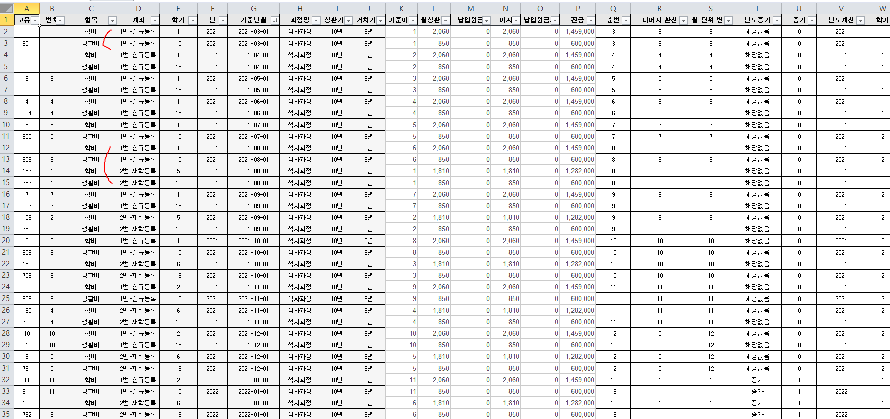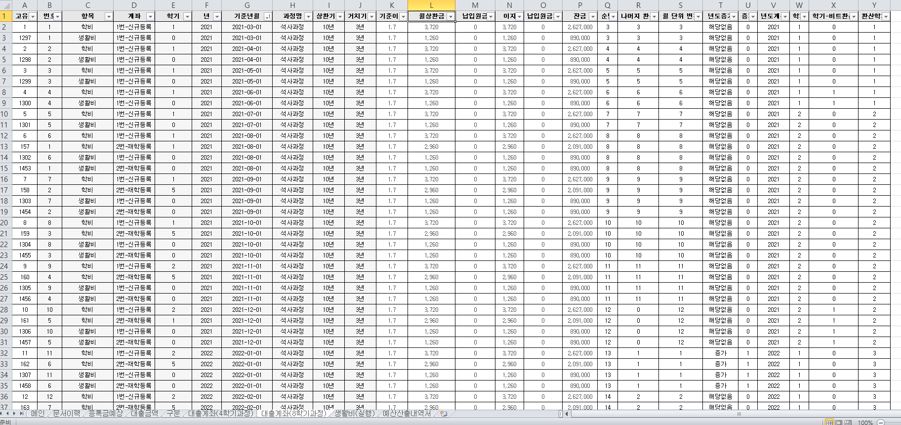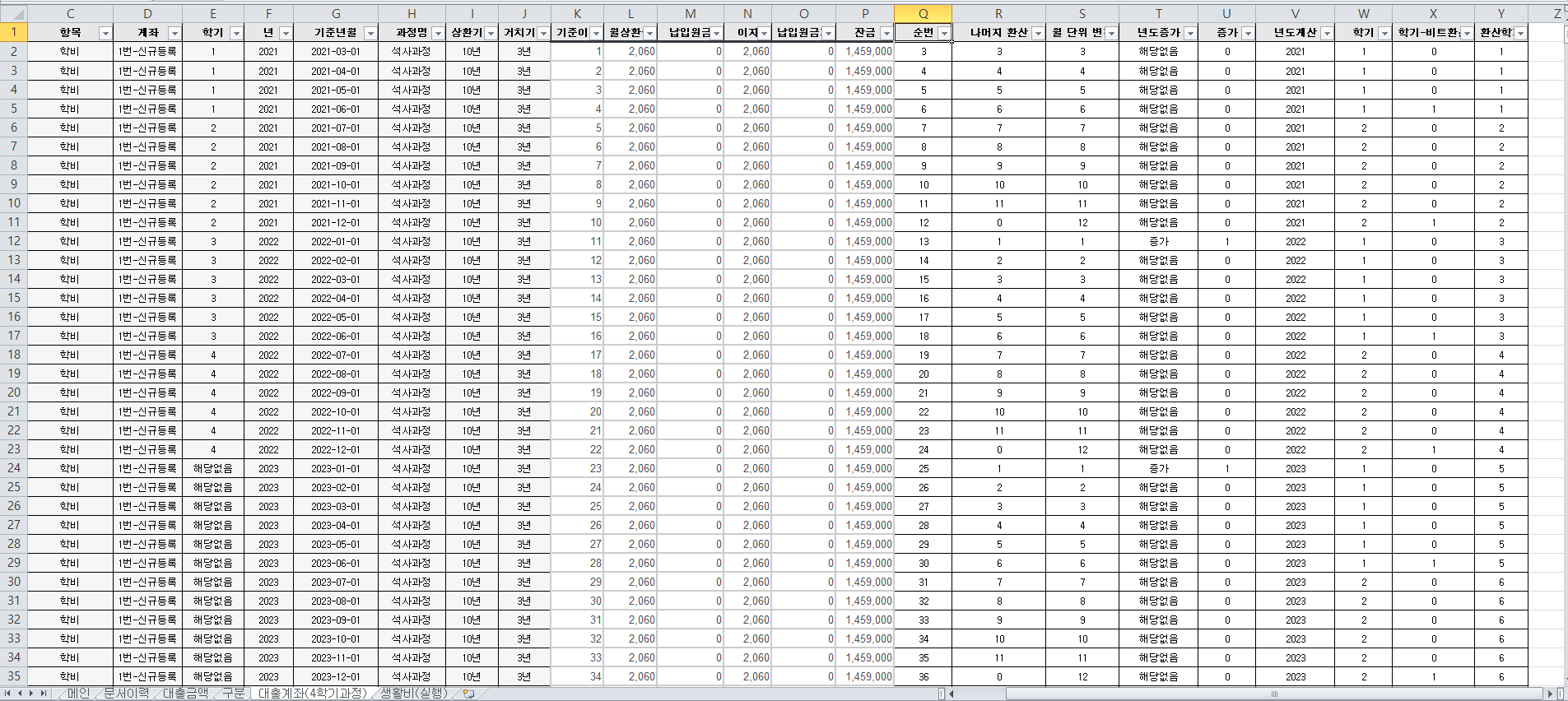 학비, 생활비 대출 흐름에 대한 "현금 흐름 시나리오"이다.