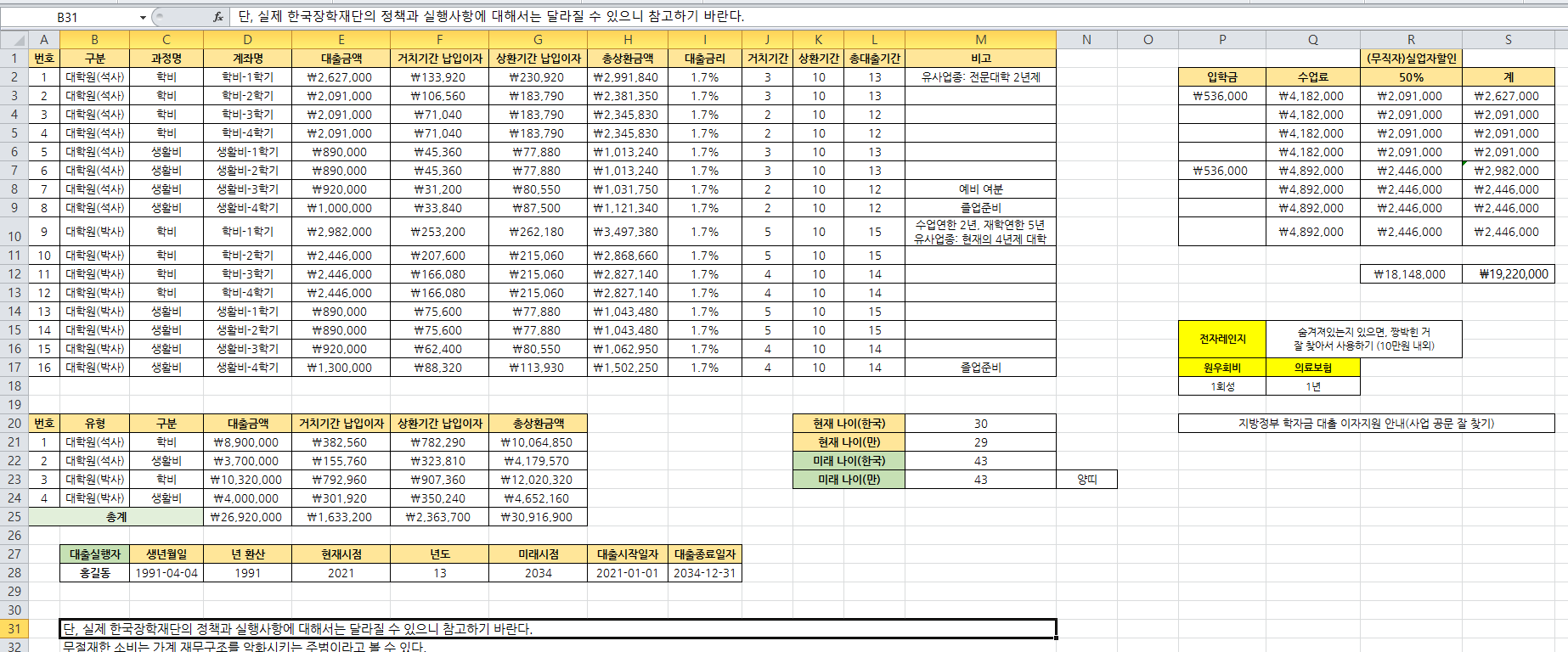 이번에 다룰 주제는 한국장학재단이나 학교, 은행에서는 알려주지 않은 대출에 대한 시나리오에 대해서 소개해주려고 한다. 해당 연구는 "후원"을 받지 않았으며, 무급으로 3가지 3안을 개인으로 작성하였다.
