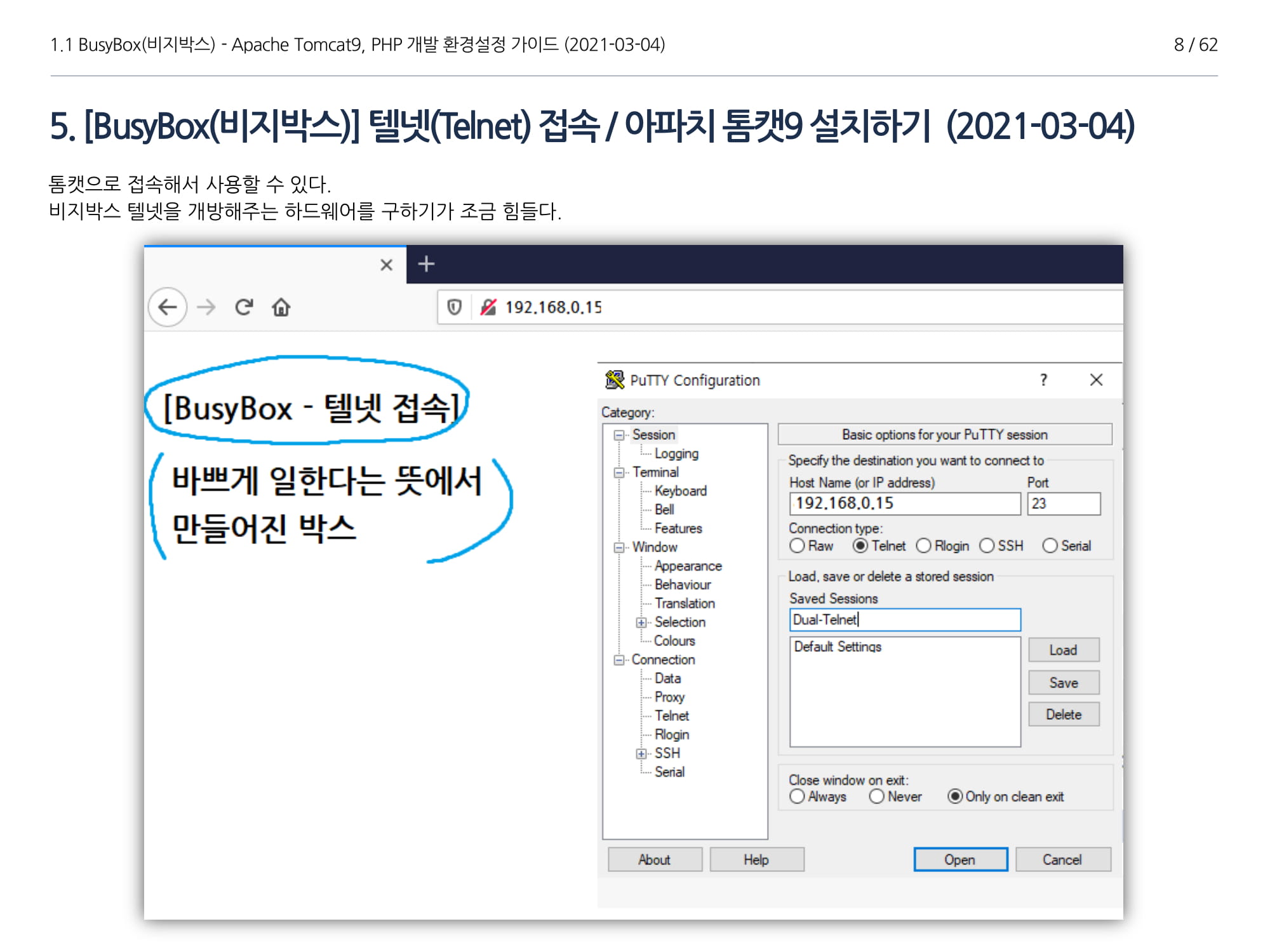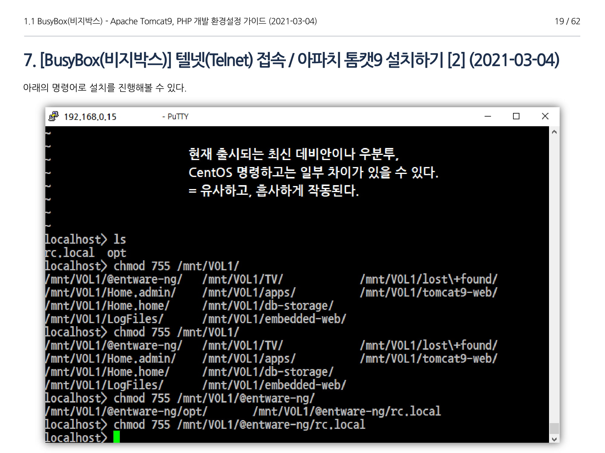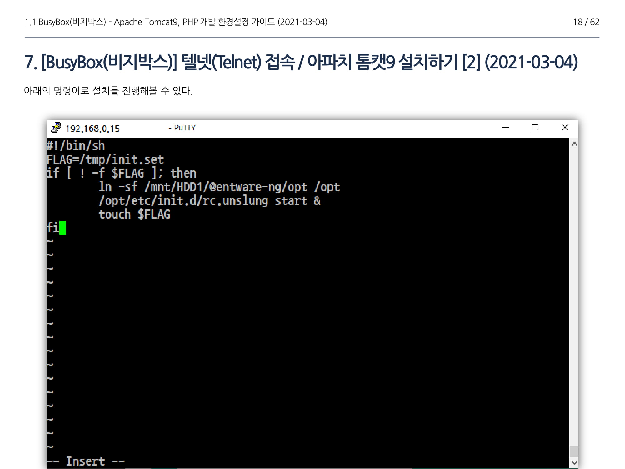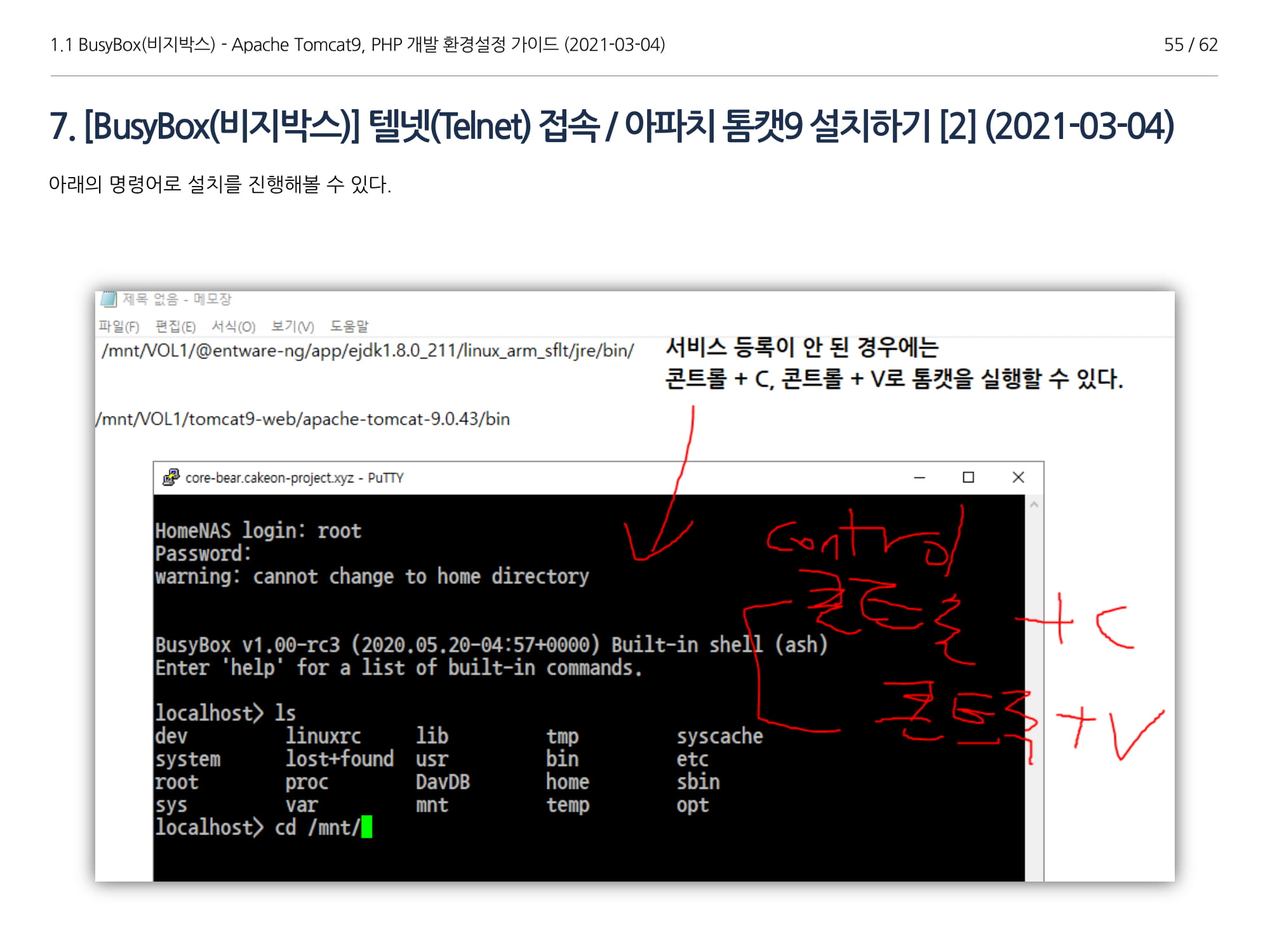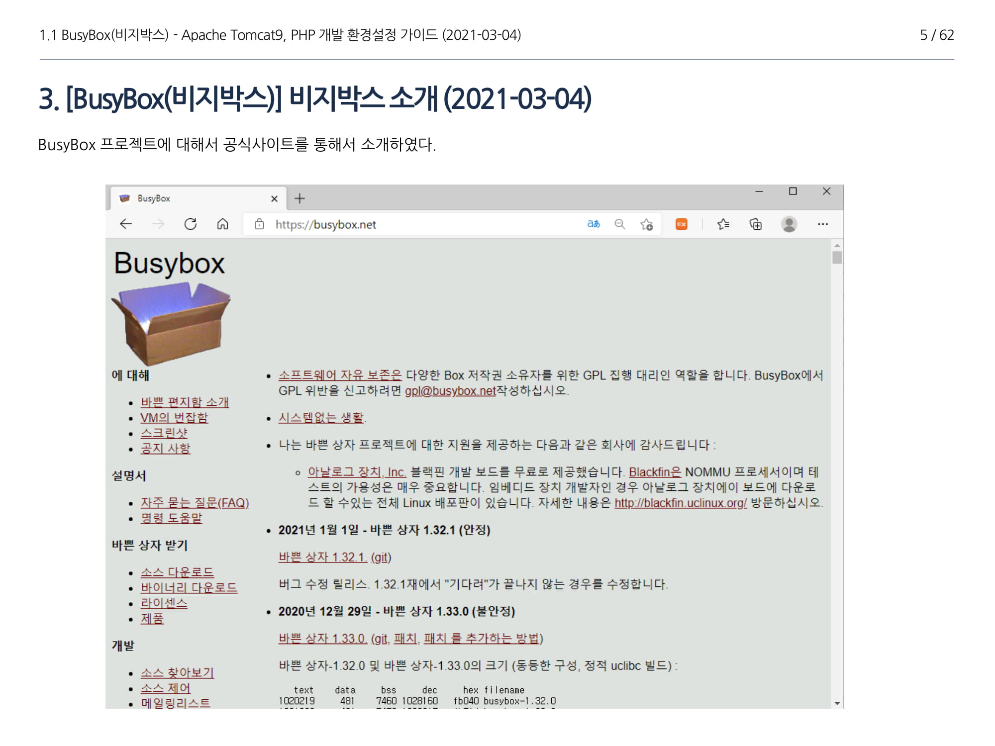이번에 소개할 내용은 비지박스(이하 "BusyBox")에서 Apache Tomcat(이하 "아파치 톰캣 9"), Java 1.8 설치, PHP 개발가이드에 대해서 소개하고자 한다.