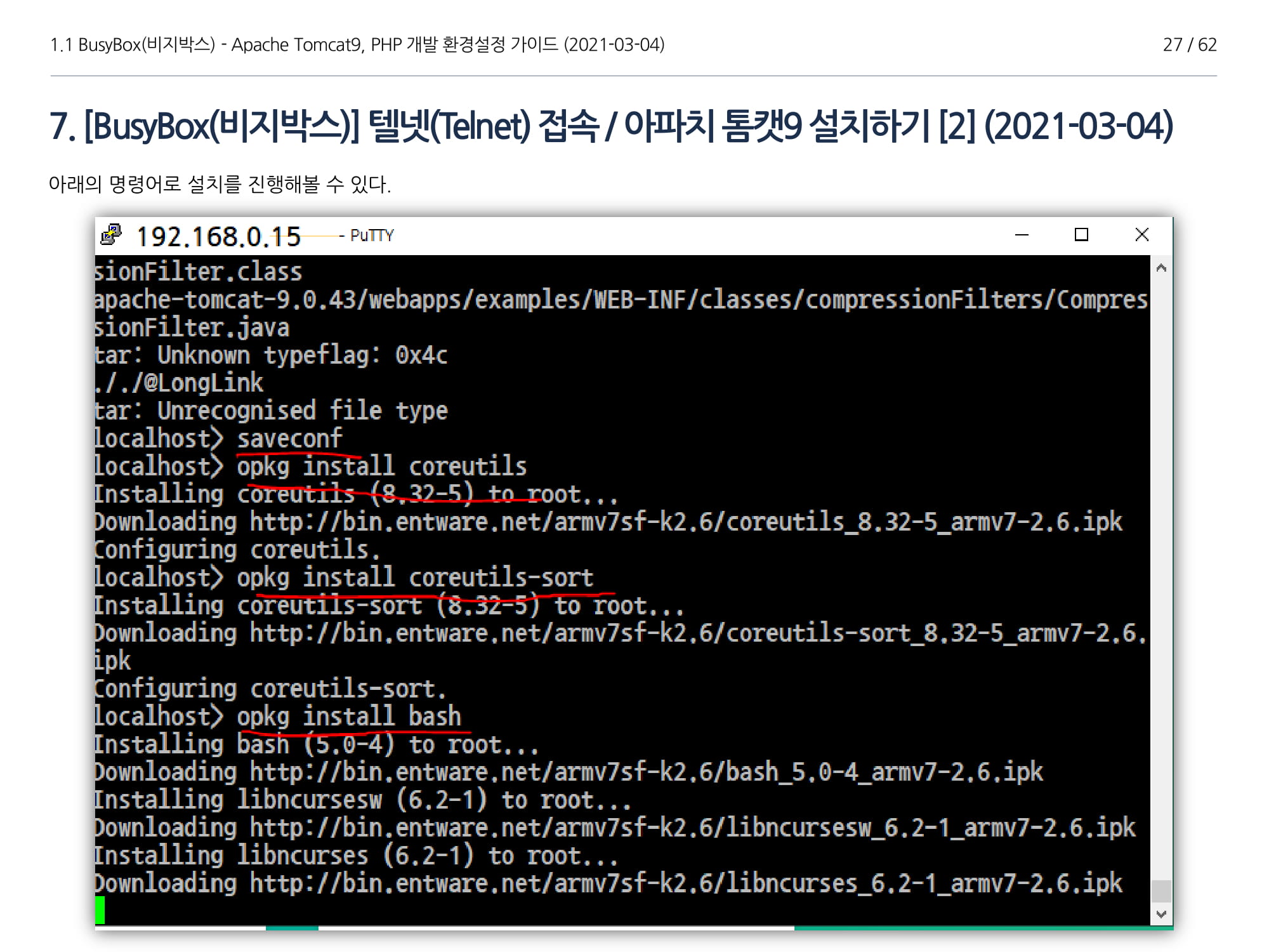 [GNU(리눅스[Linux])] BusyBox 그리고 Apache Tomcat 9, Java 1.8 설치, PHP 개발가이드