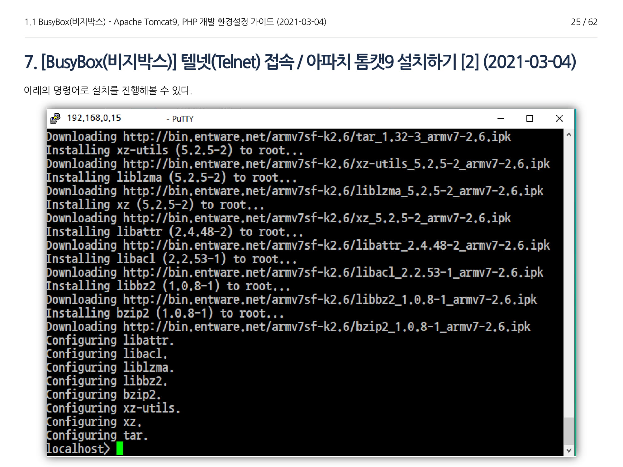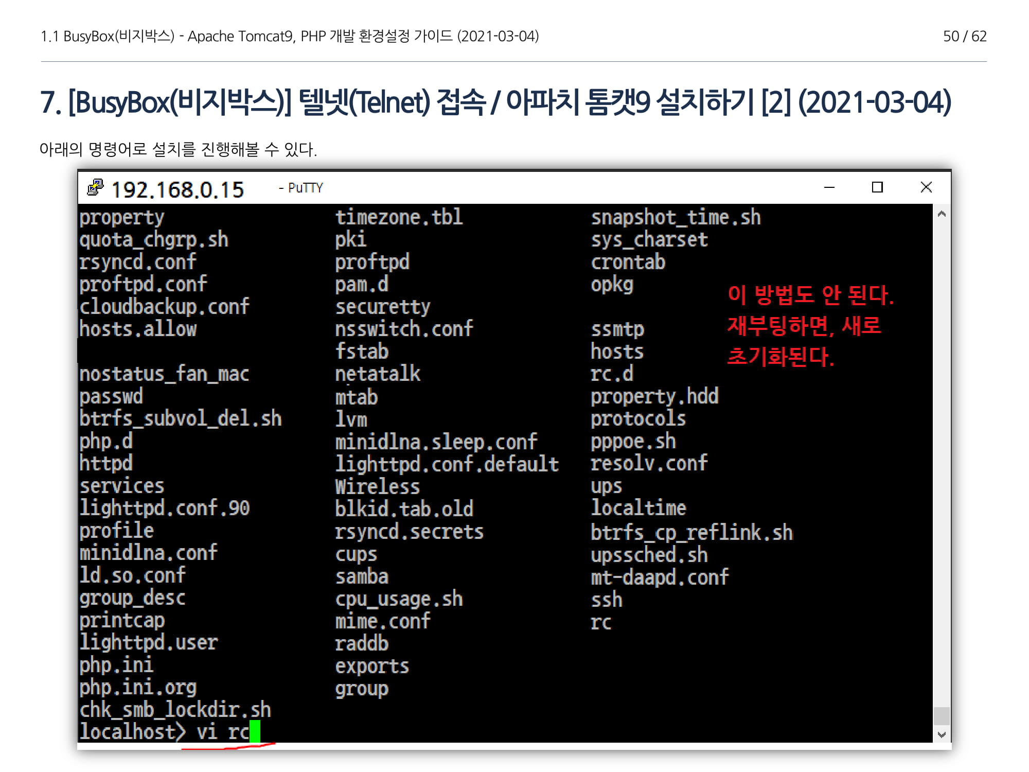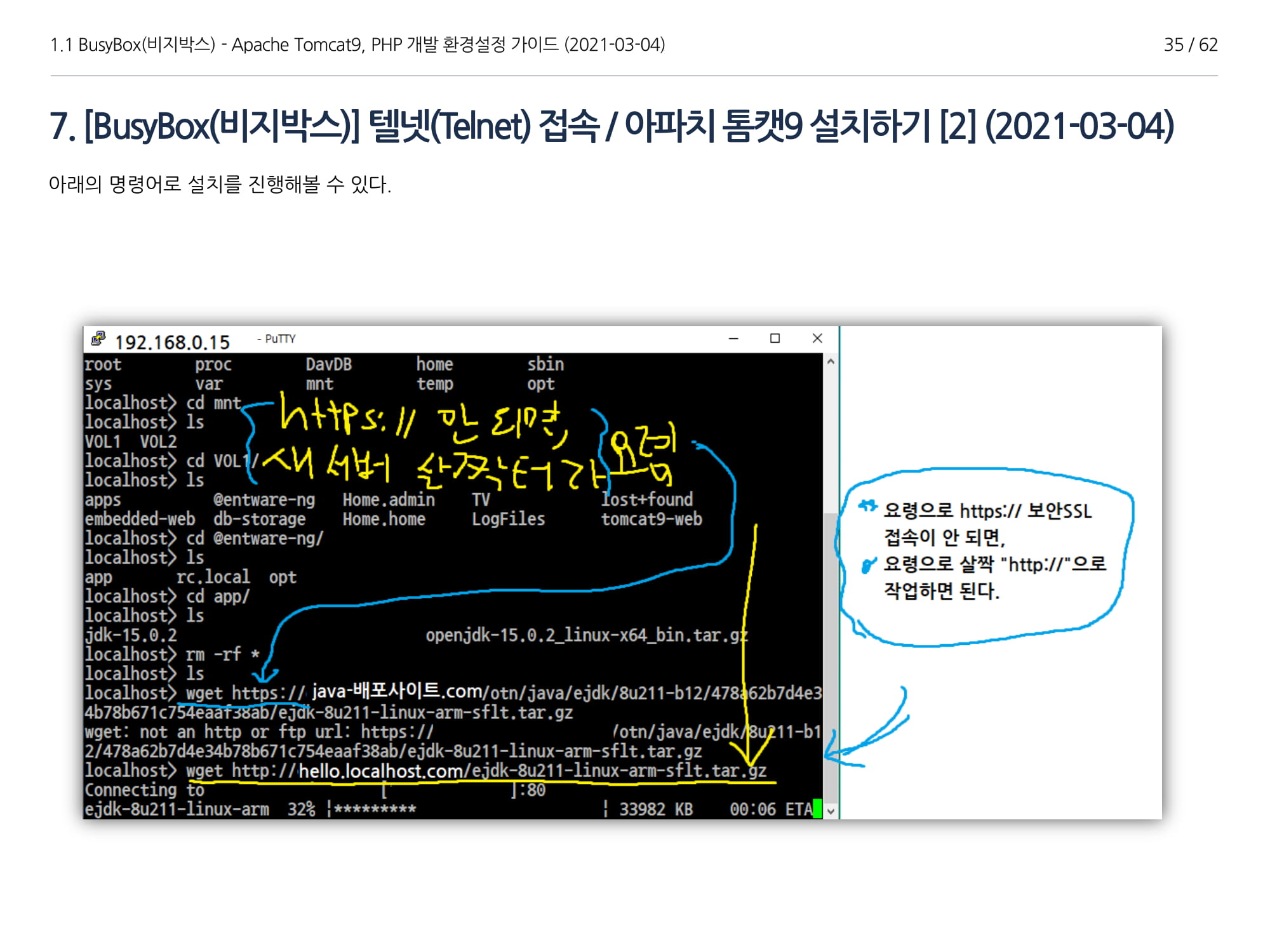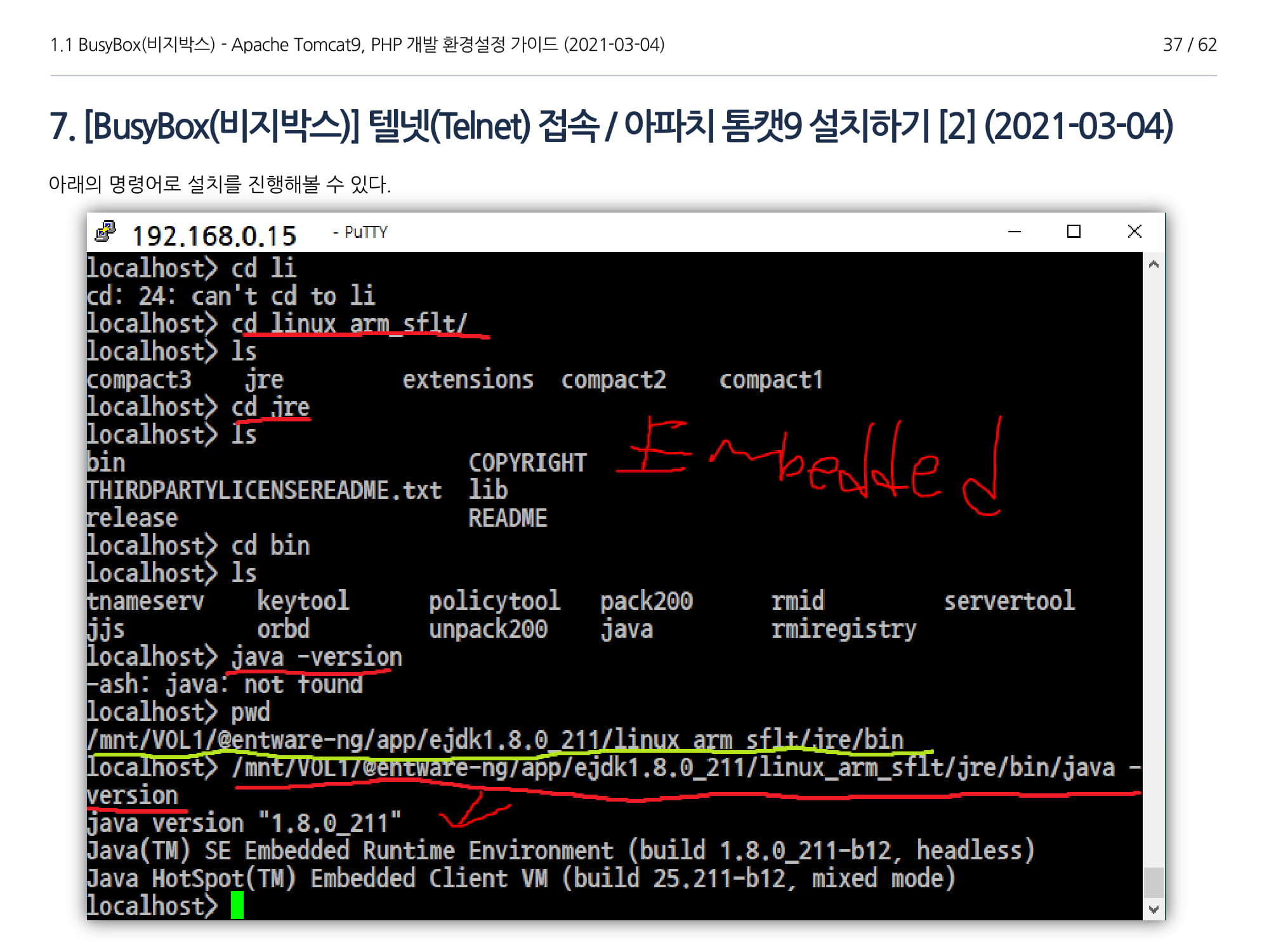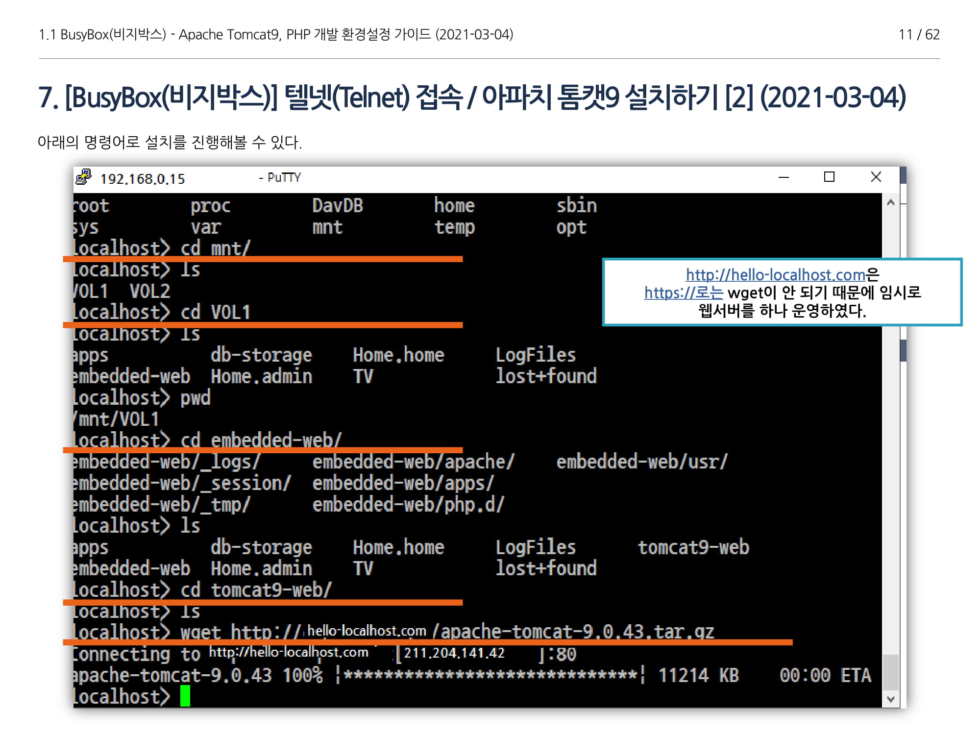 BusyBox에서 아파치톰캣9과 임베디드 Java 1.8버전 설치, PHP 개발에 대해서 소개하였다.
