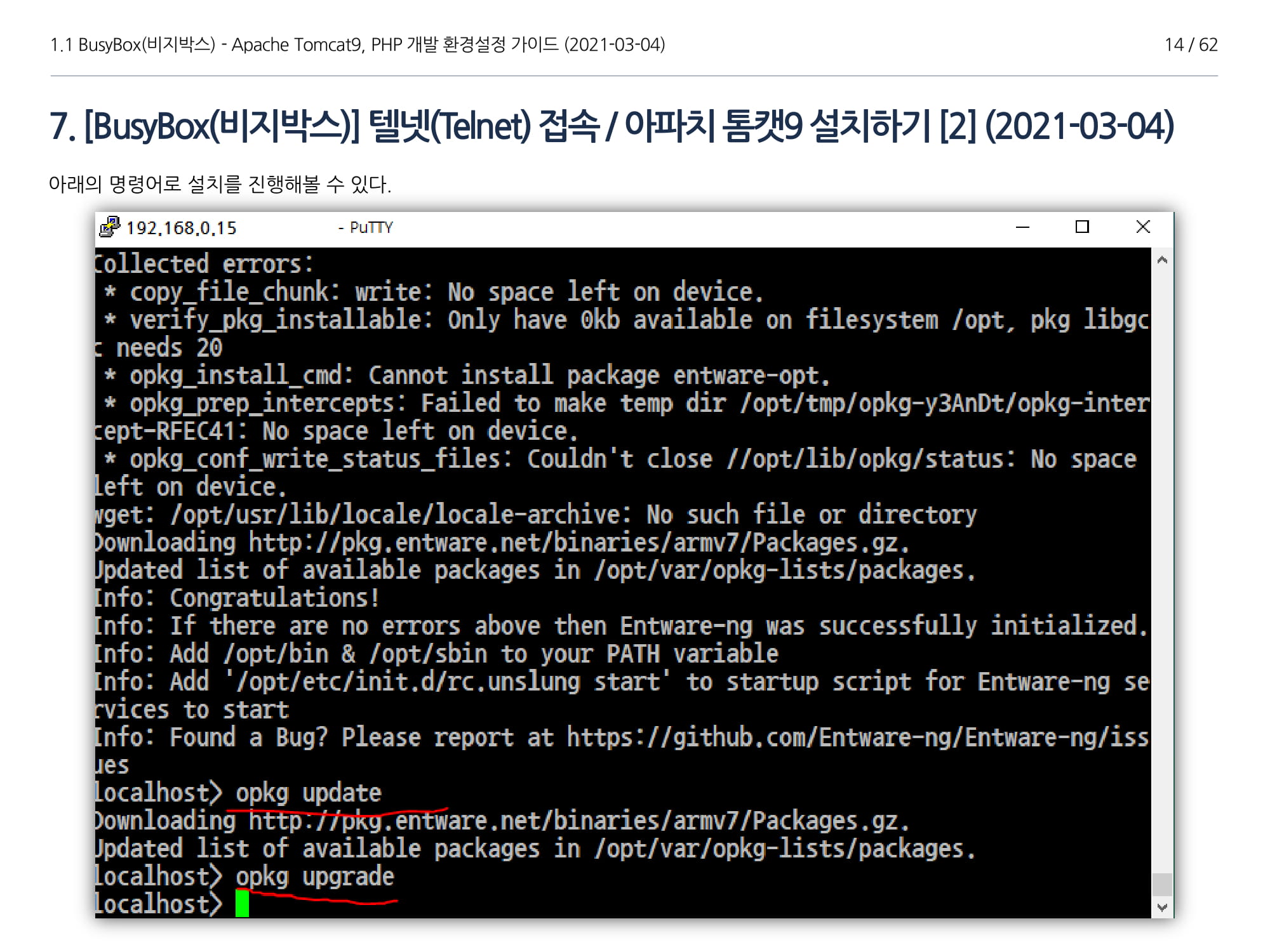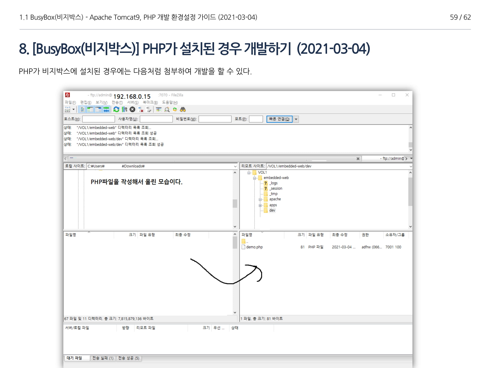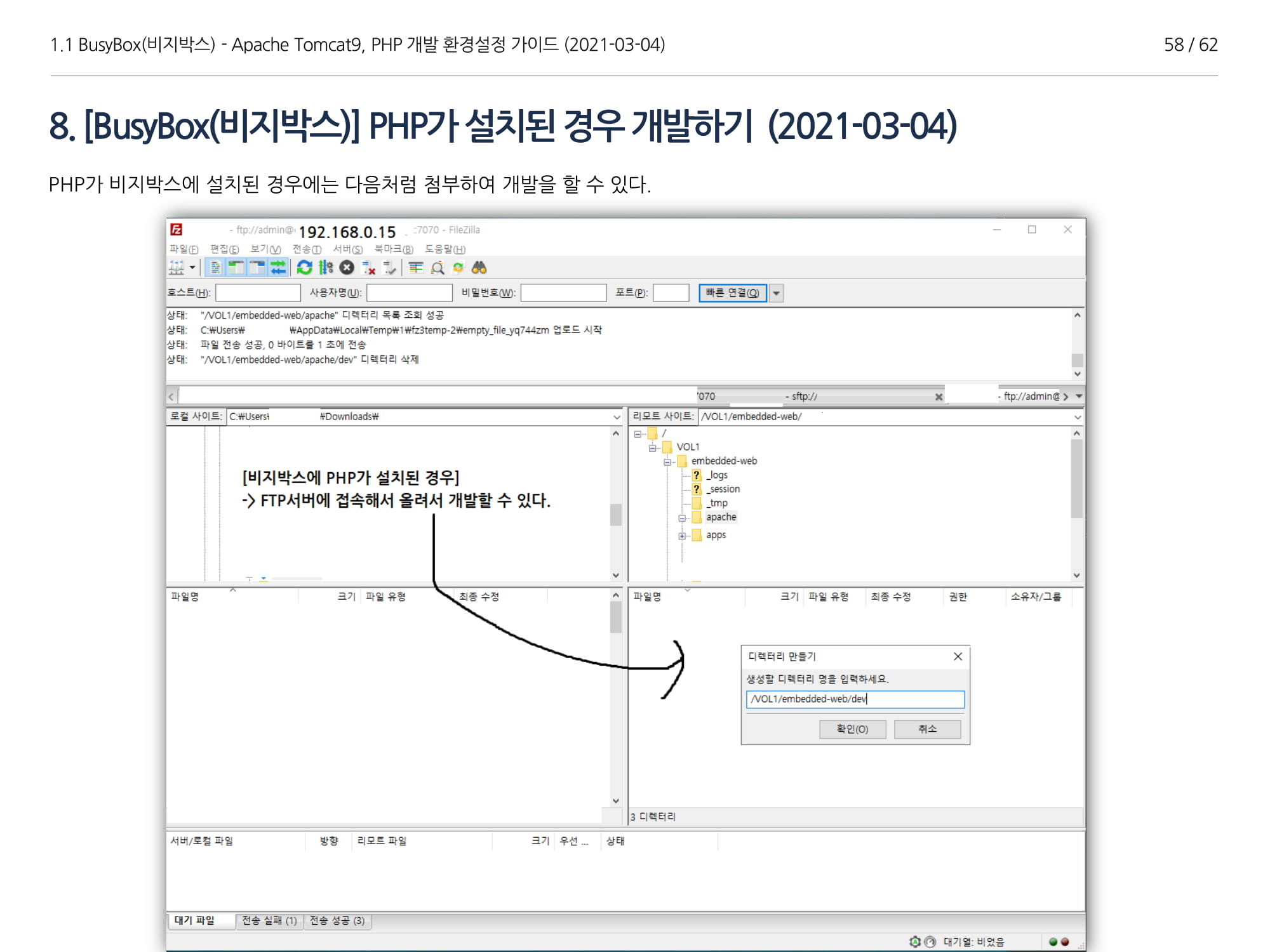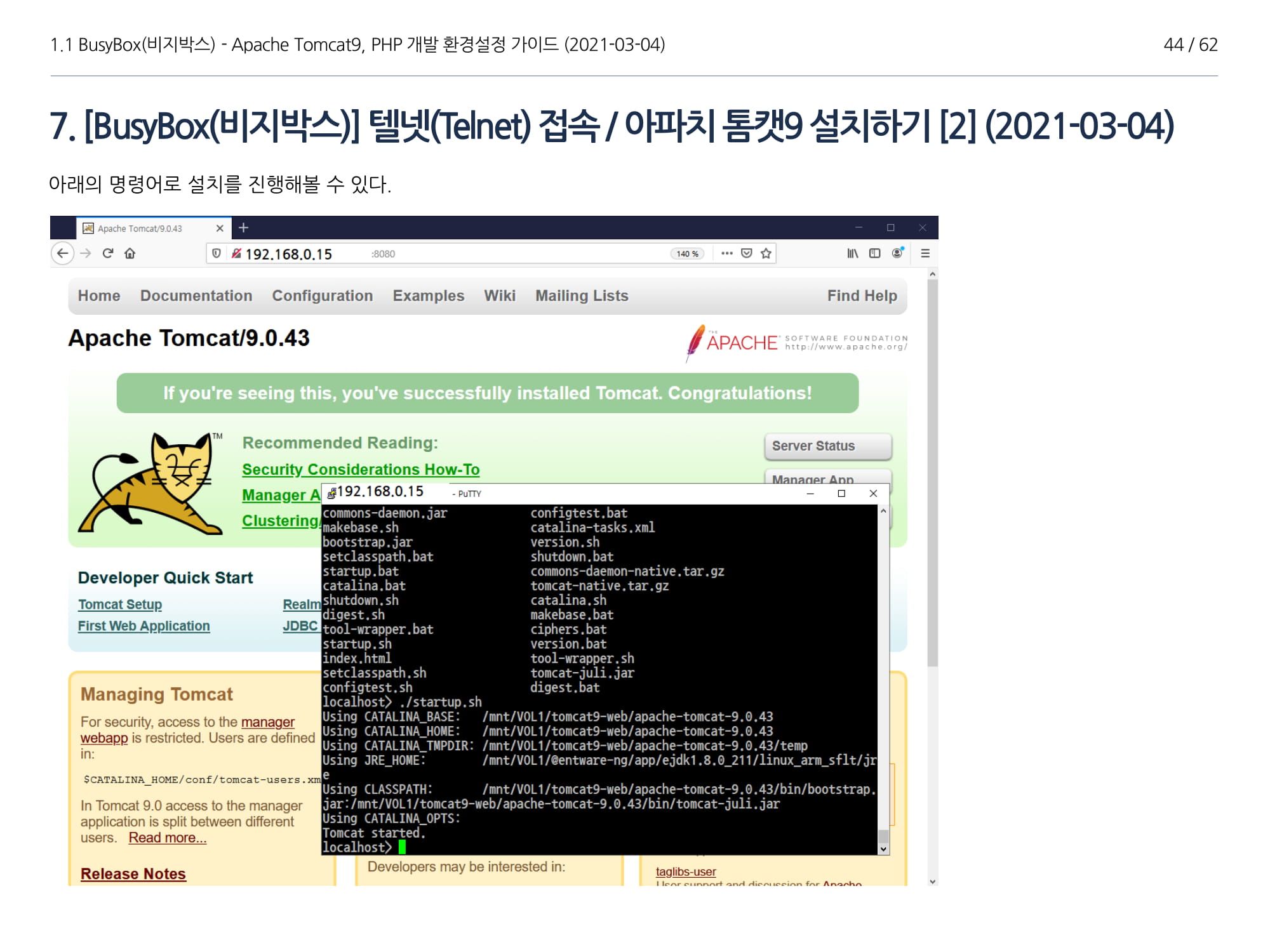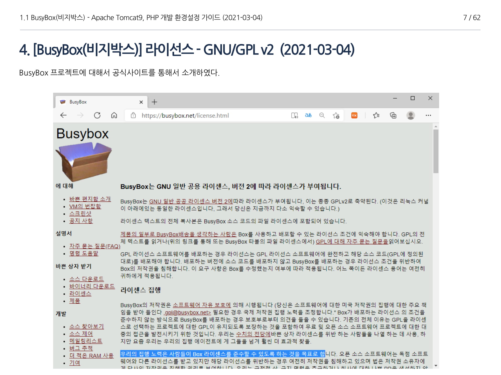 BusyBox에서 아파치톰캣9과 임베디드 Java 1.8버전 설치, PHP 개발에 대해서 소개하였다.