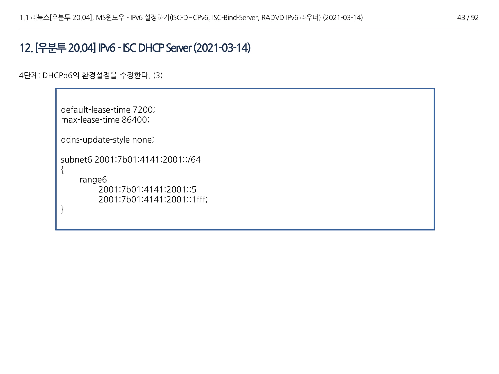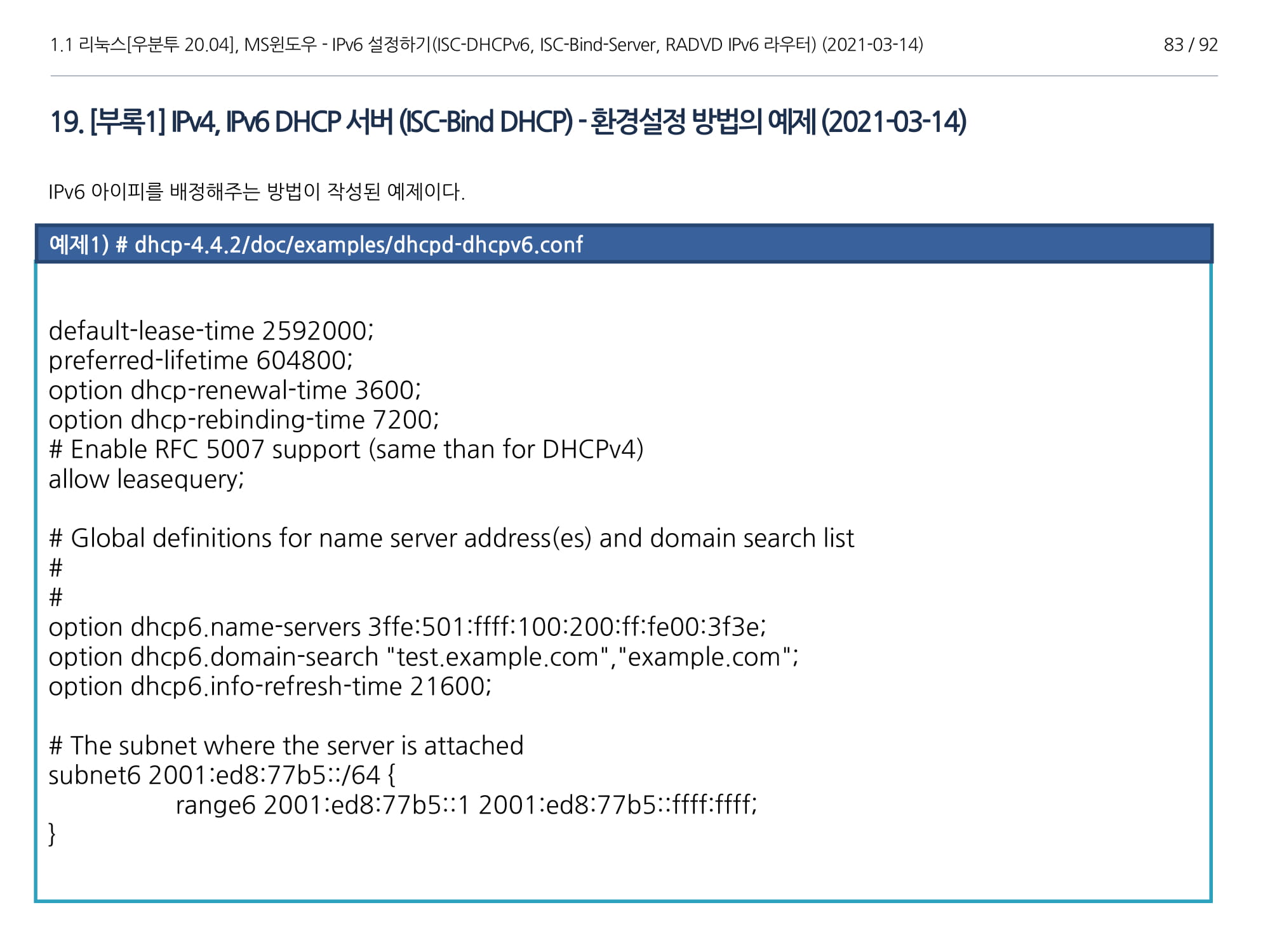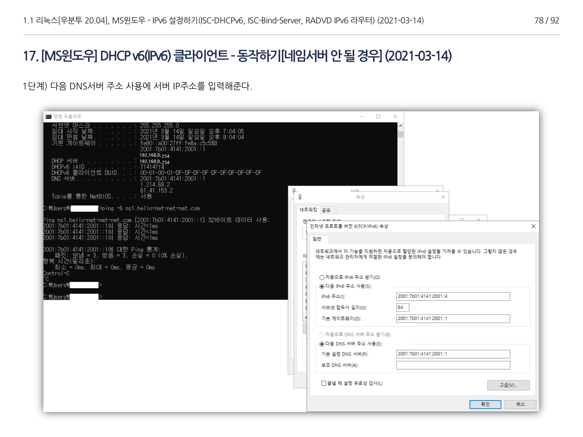 우분투 20.04, IPv6, ISC DHCPv6 Server, ISC-Bind-Server RADVD를 구축하는 방법에 대해서 소개하였다.