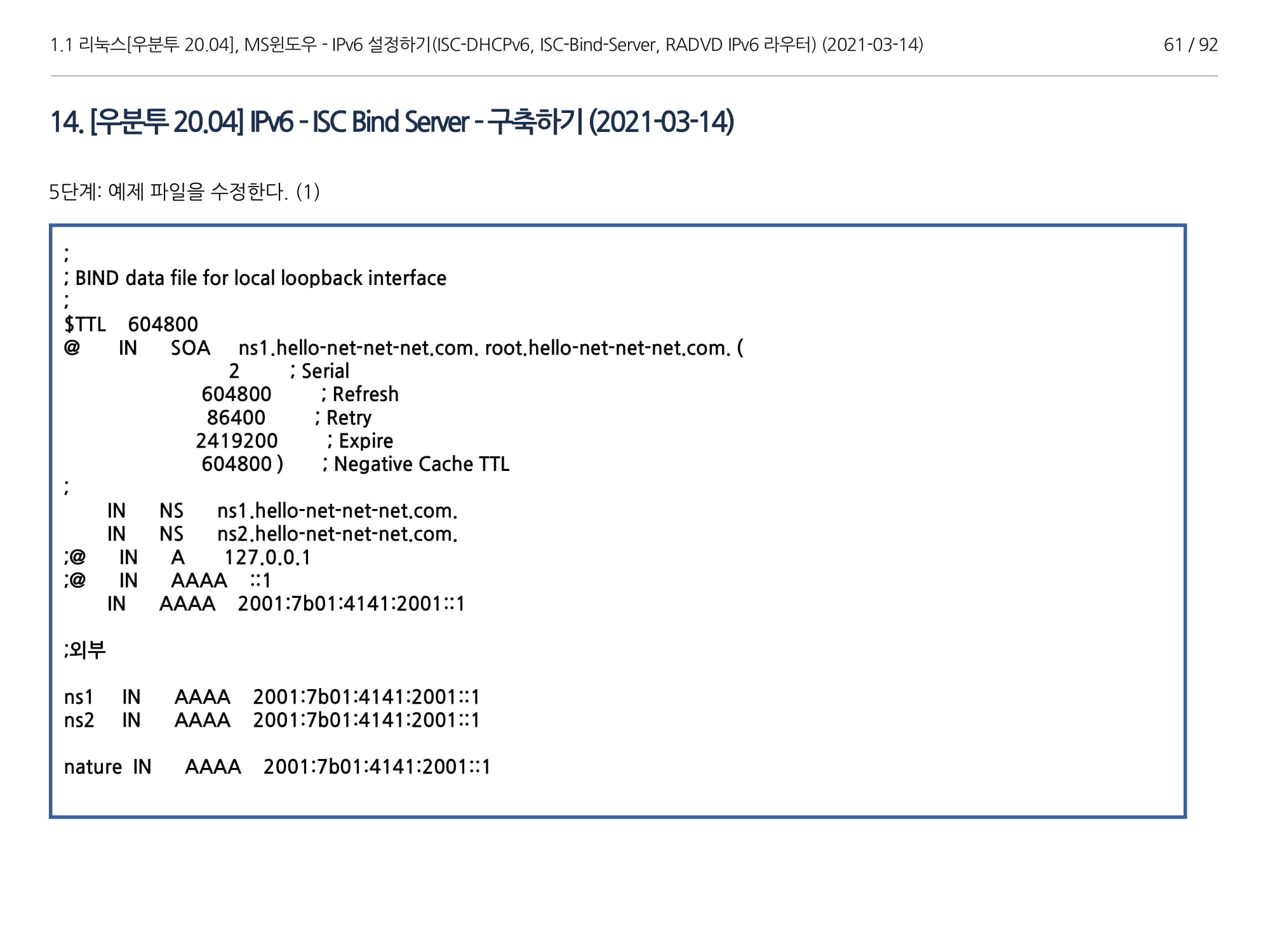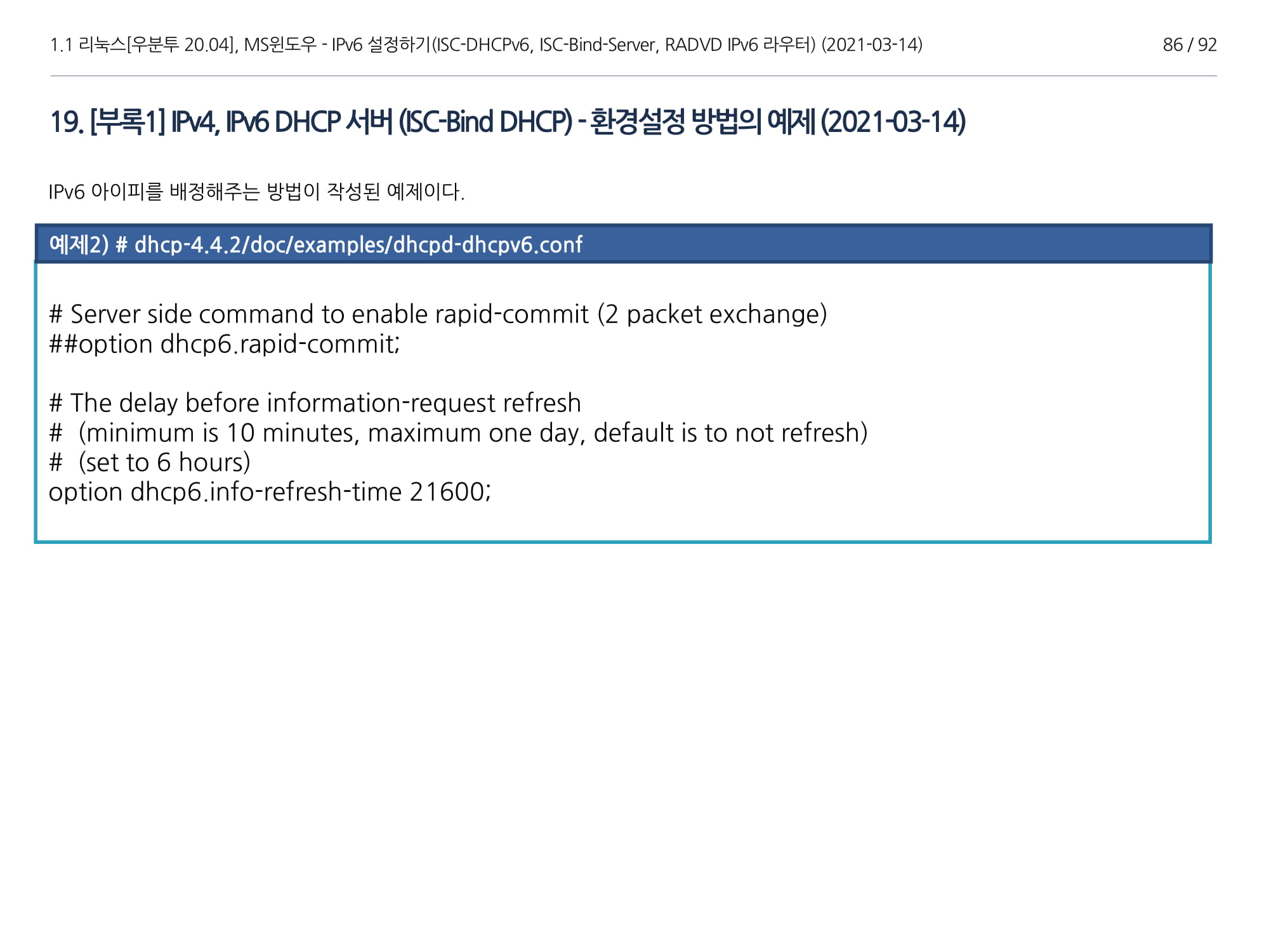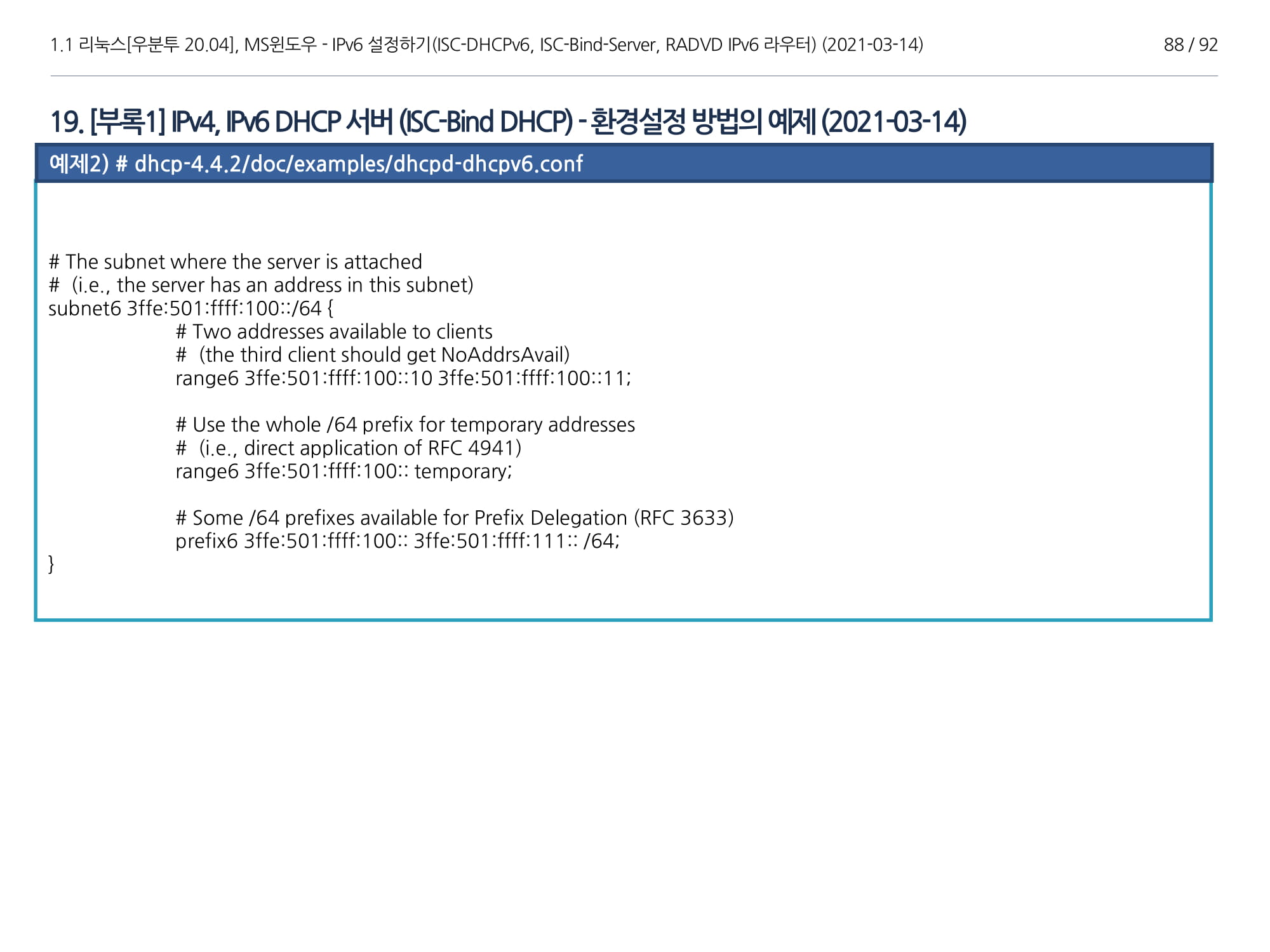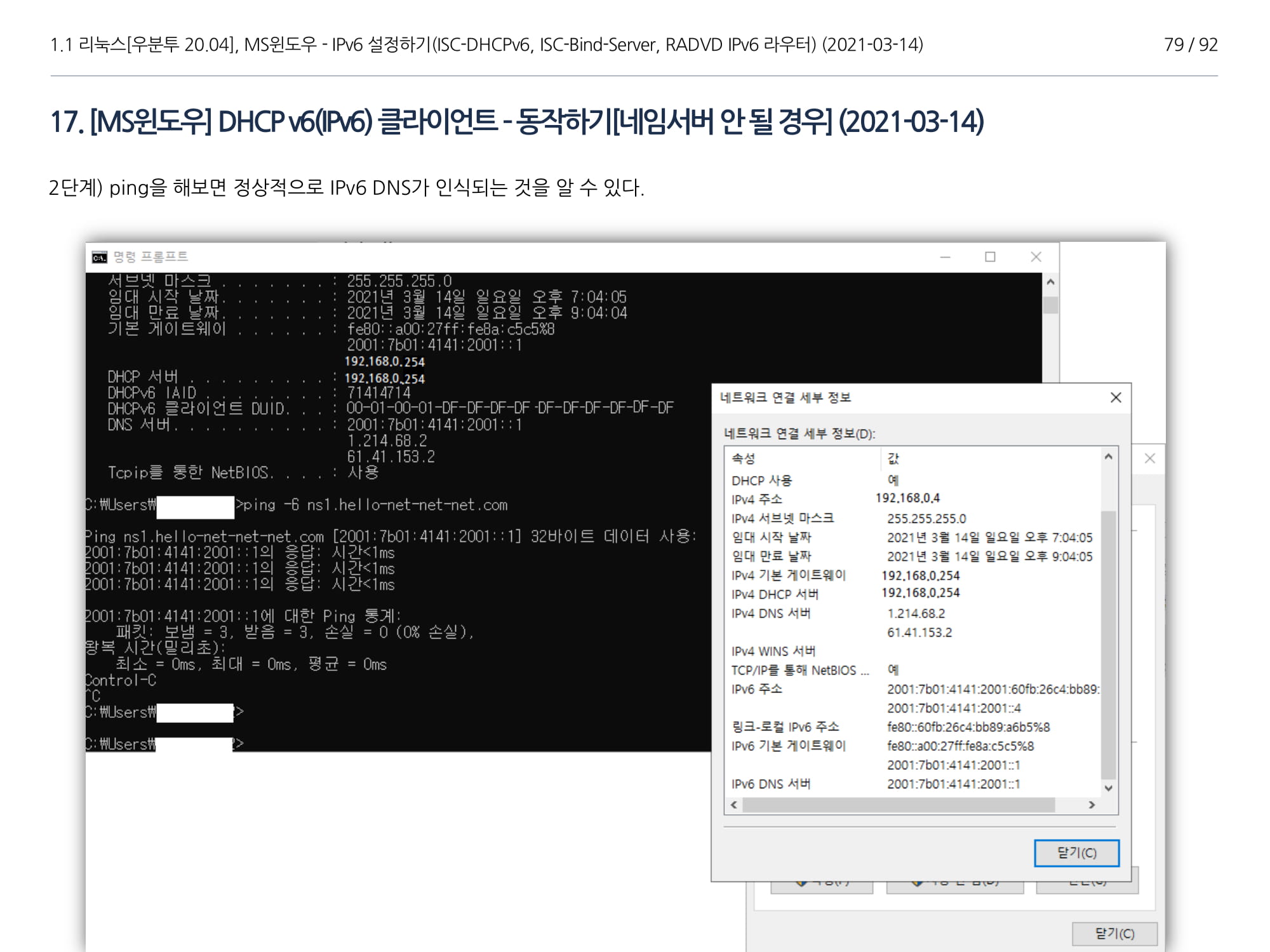 우분투 20.04, IPv6, ISC DHCPv6 Server, ISC-Bind-Server RADVD를 구축하는 방법에 대해서 소개하였다.