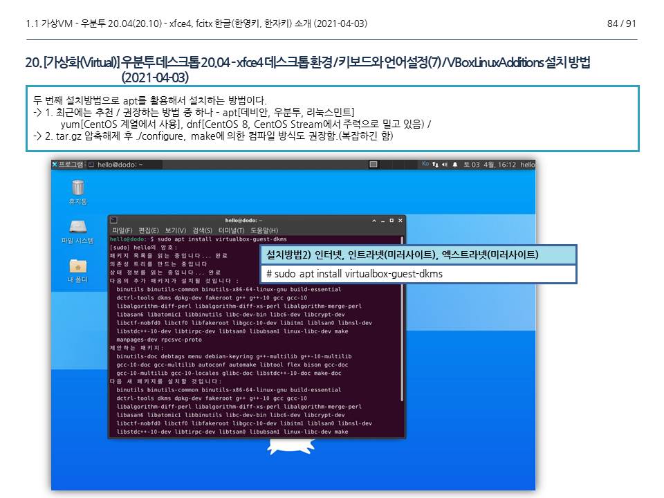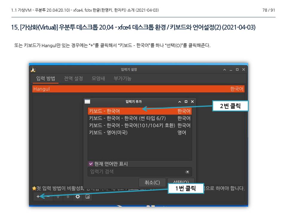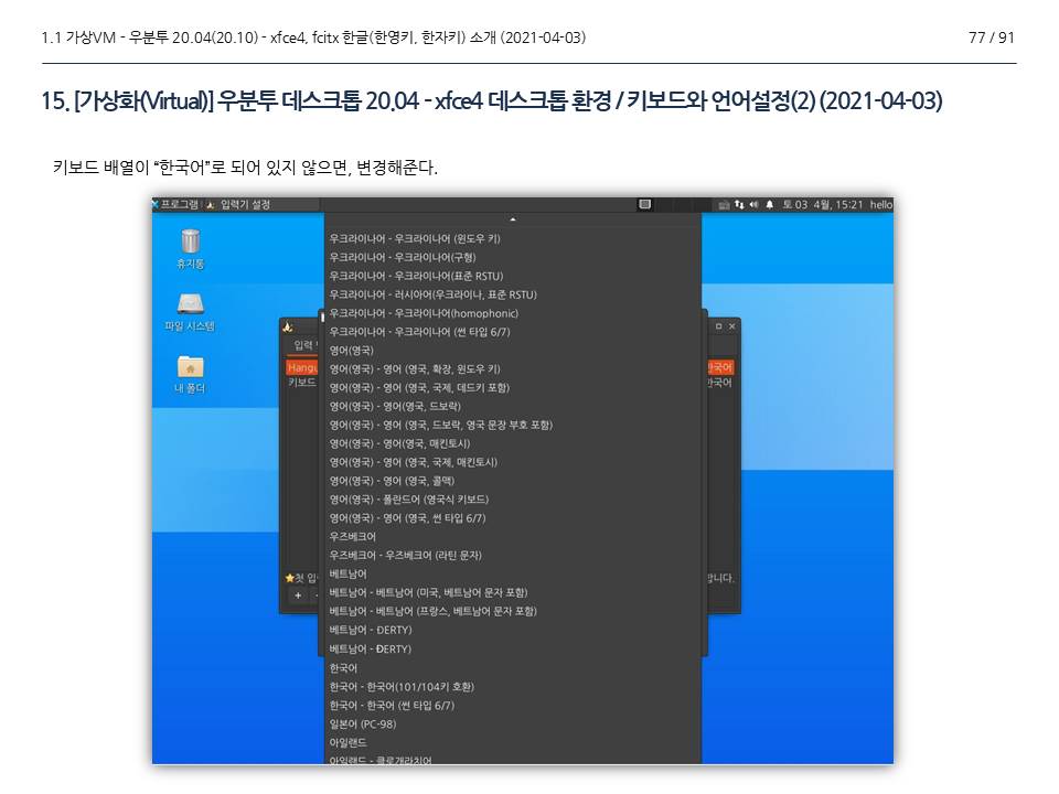 | [GNU - 리눅스(Linux)] 우분투 20.04(20.10) / fcitx 한글 키보드, 그래픽카드 설치(1/4), 2021-04-03. 22:06 |
