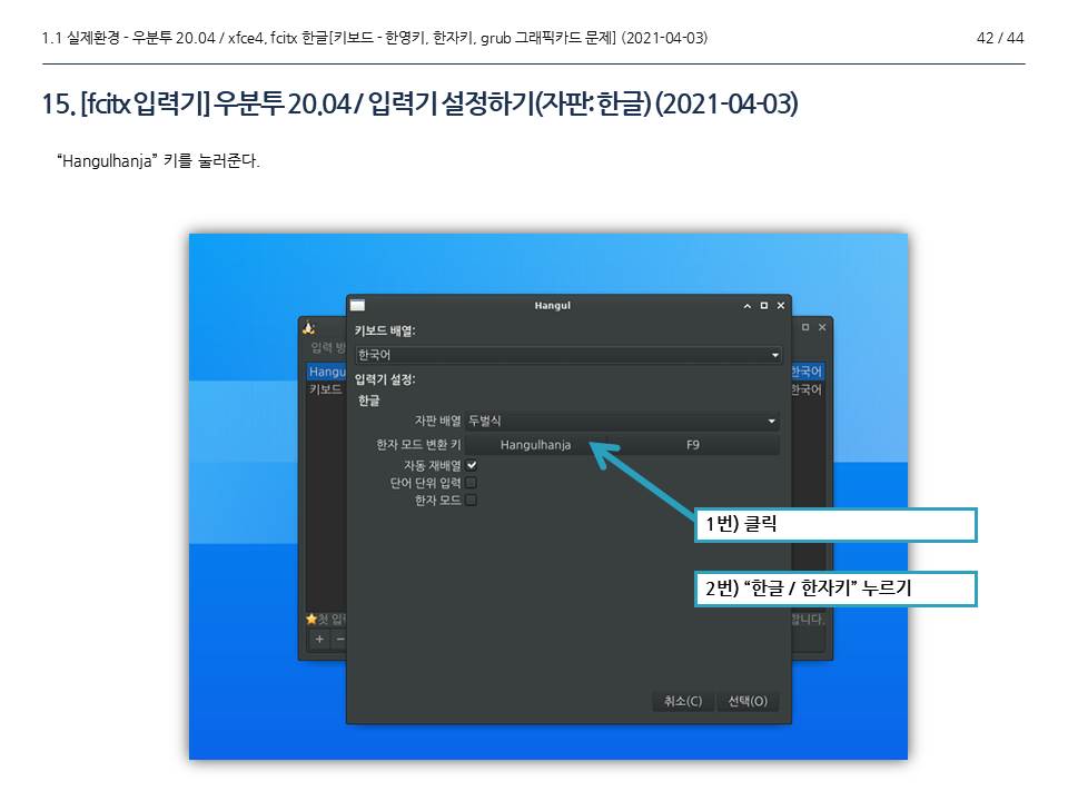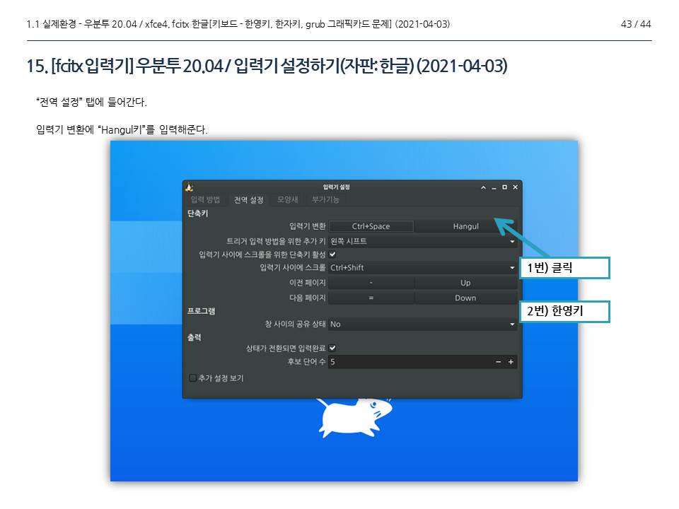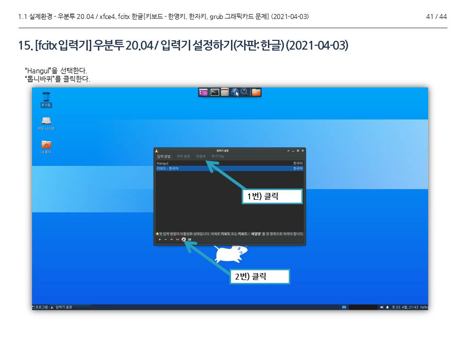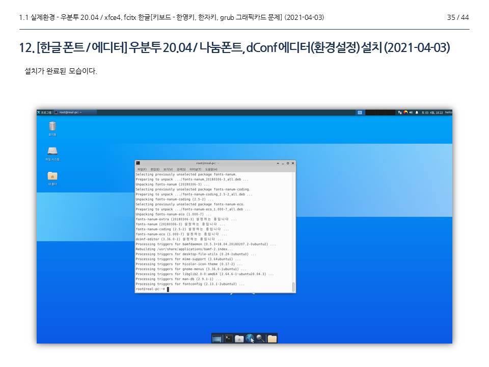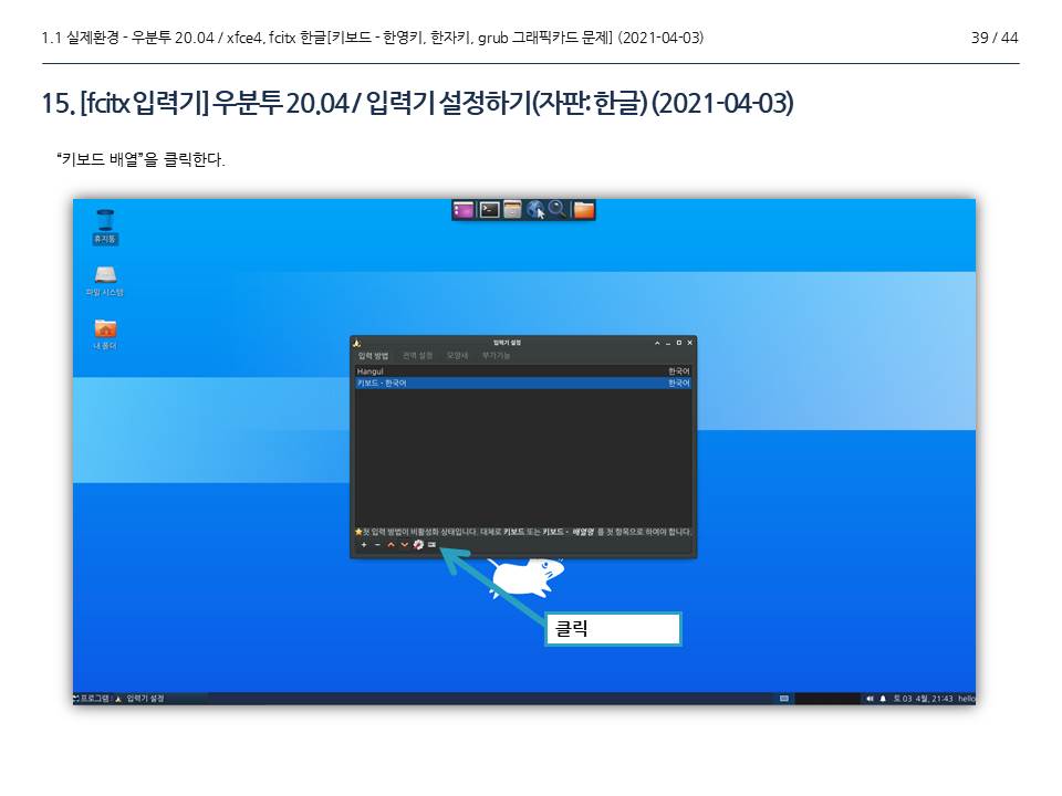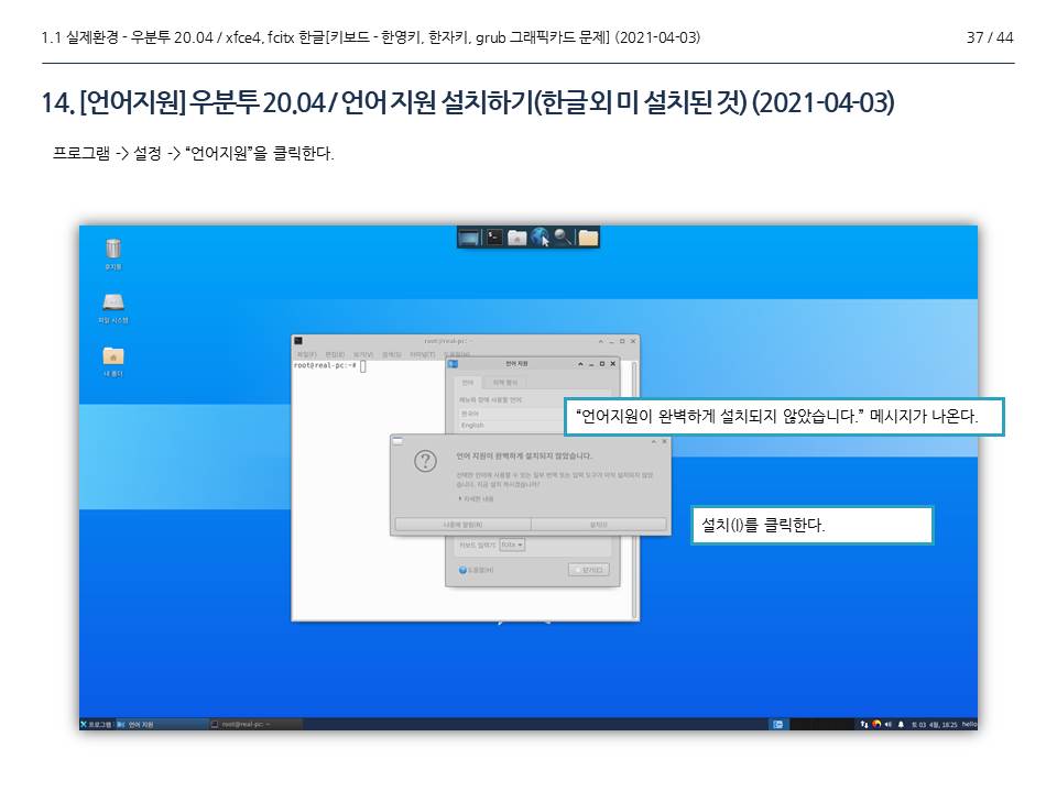 실제환경에서 우분투 20.04, xfce4, fcitx 등을 적용하는 방법에 대해서 소개하였다.