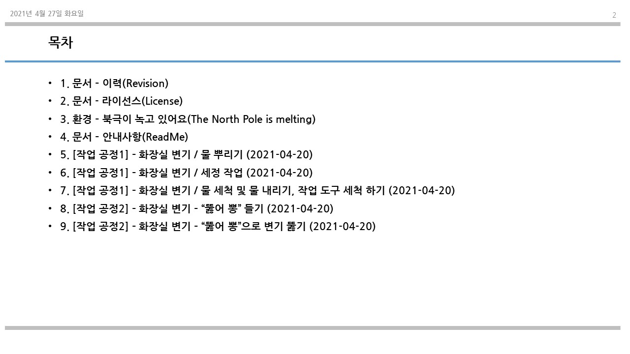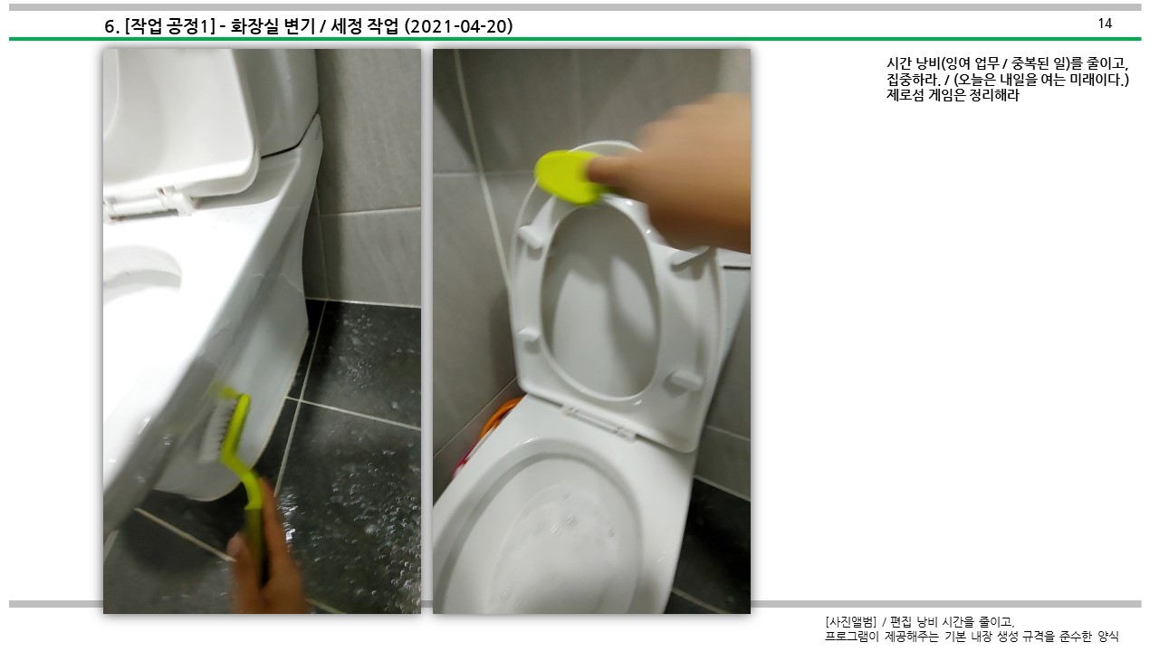 이번에 소개할 내용은 화장실 청소에 대해서 다뤄보고자 한다.
