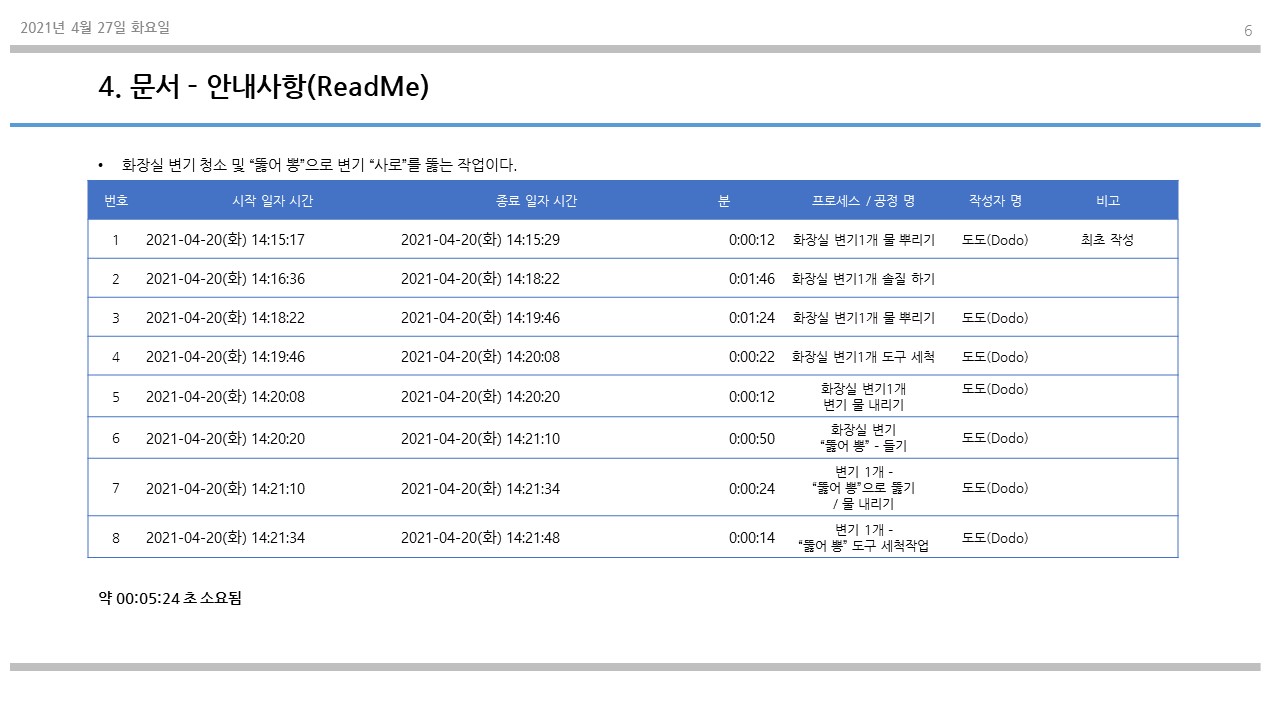 화장실 청소에 대해서 살펴보았다.