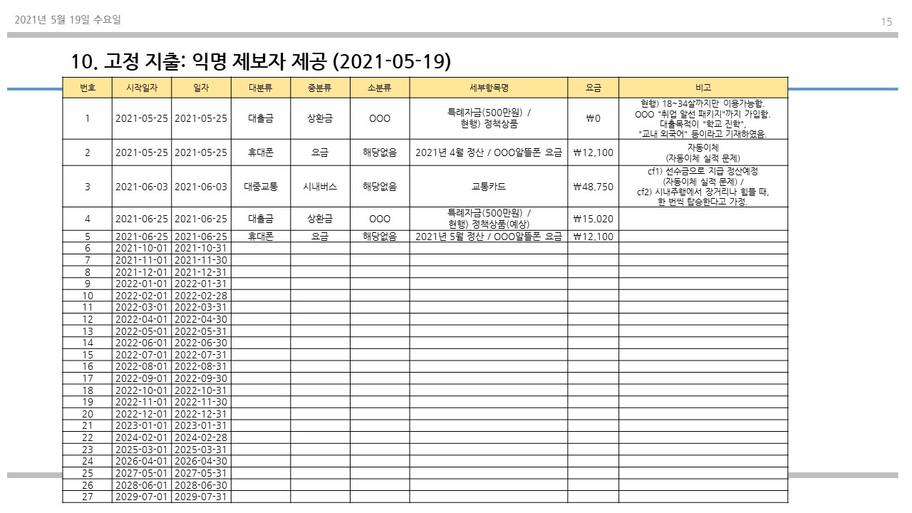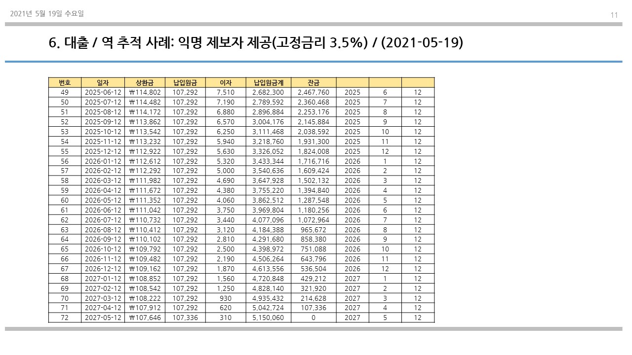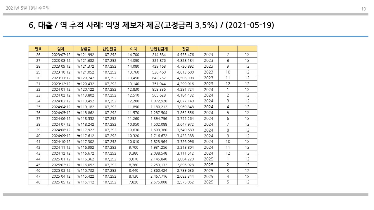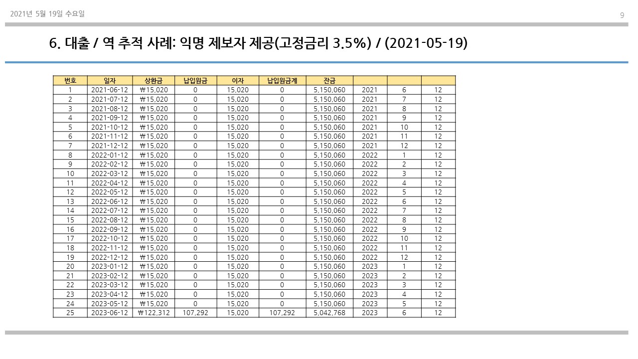 예를 들자면, 대출 현금 흐름을 "한눈에~" 볼 수 있도록 파악하는 작업을 제일 먼저 해야 할 것이다.