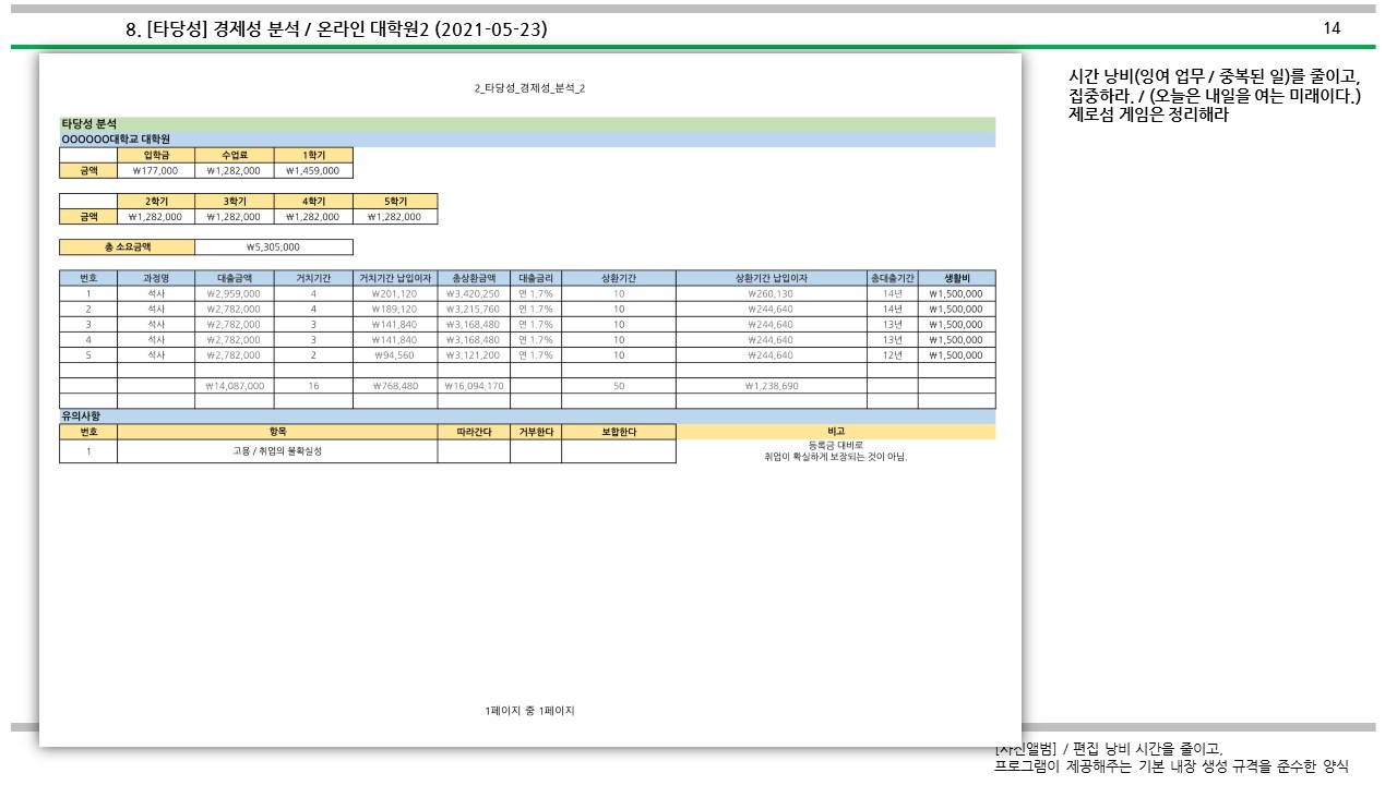 타당성 검토를 학자금 대출이라는 주제로 하였다.