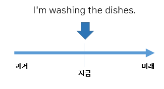 -> I'm washing the dishes. (설거지를 하고 있어)