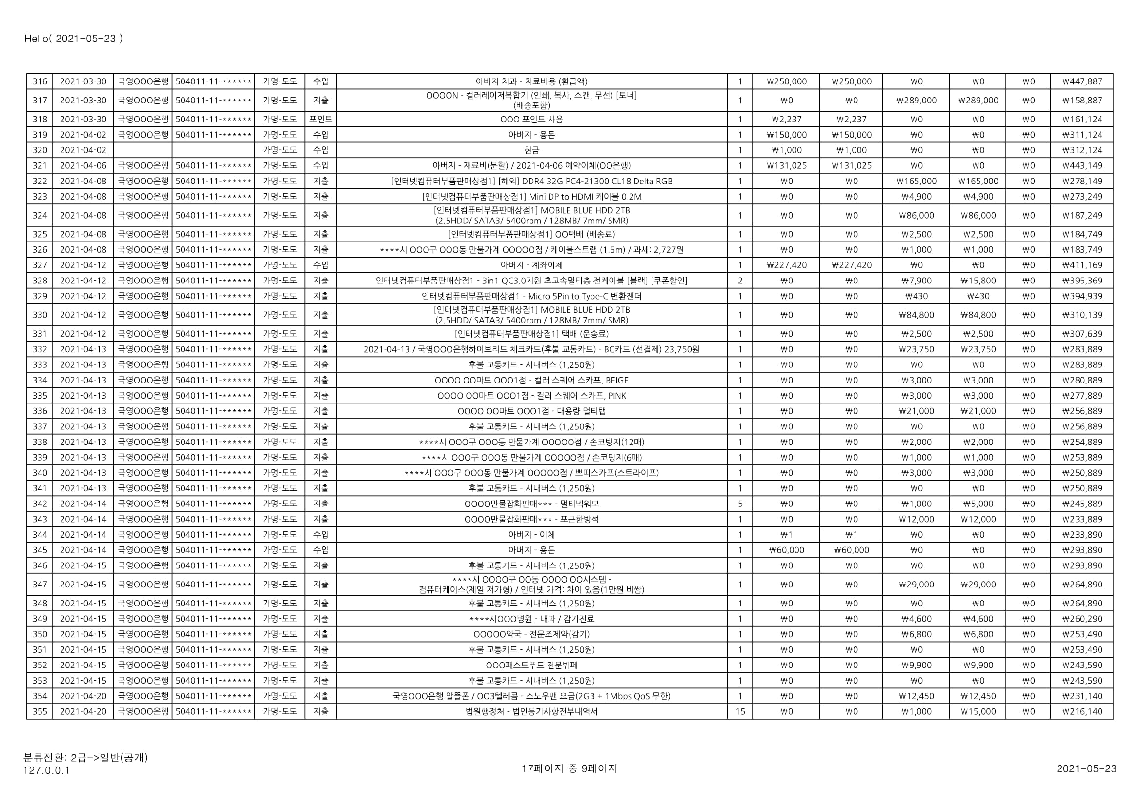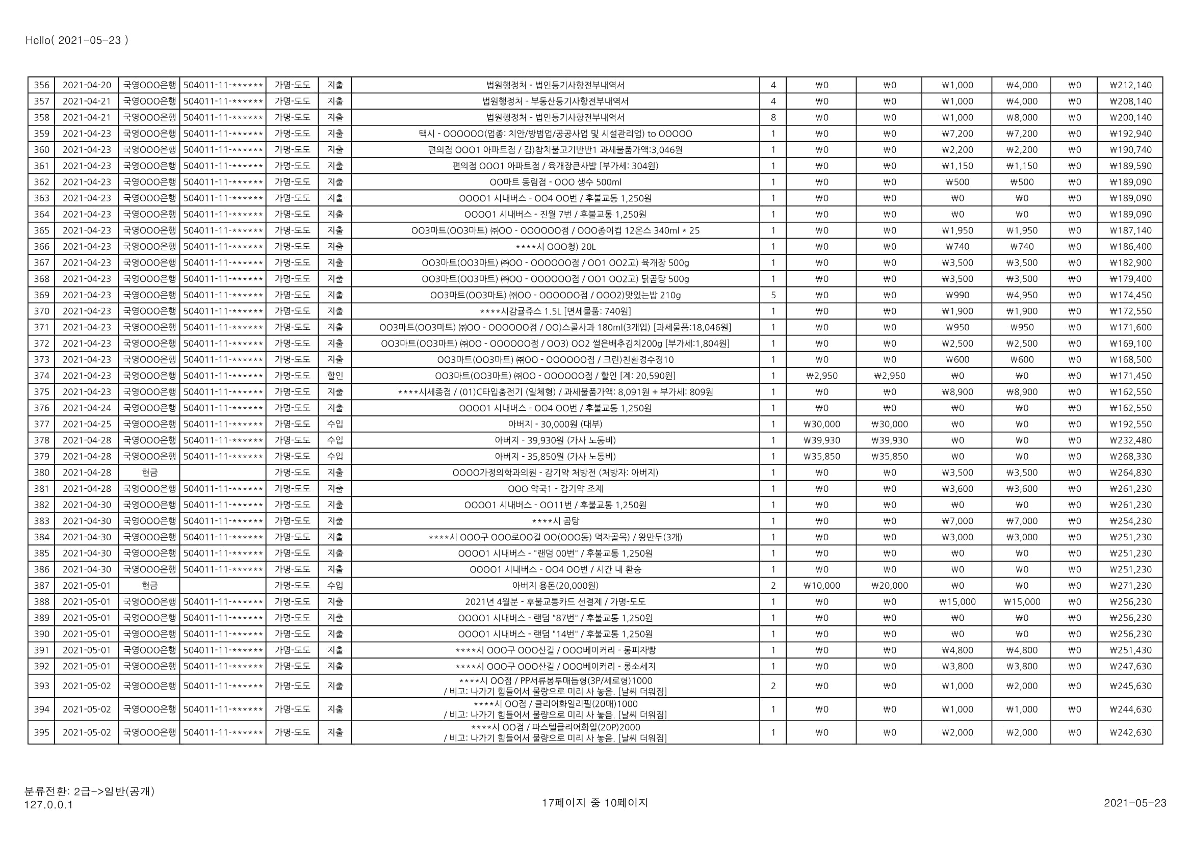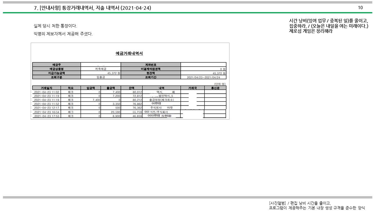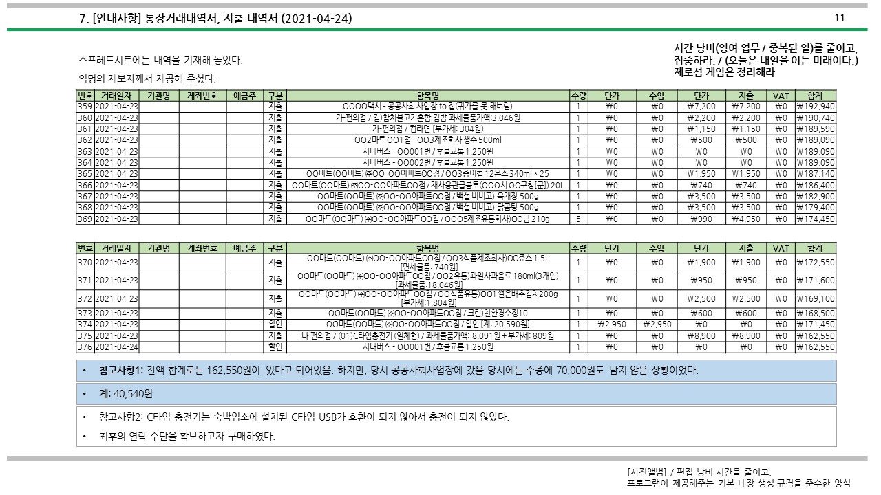 [심심풀이(pastime)] 용돈기입장 작성과 실제 작성 사례