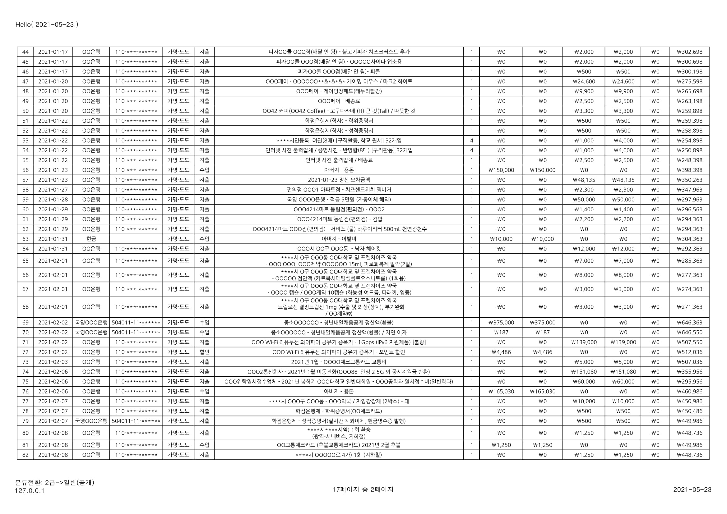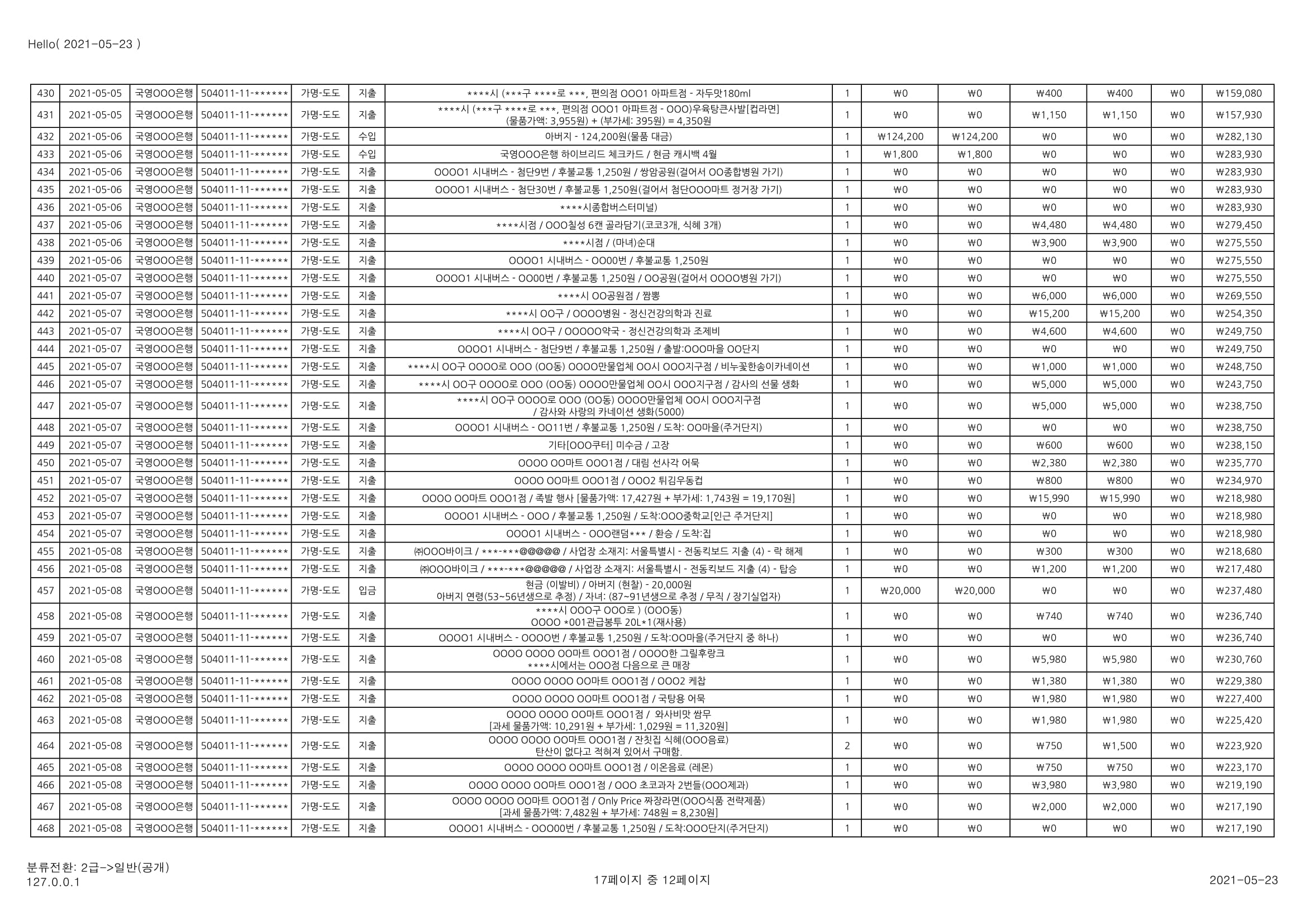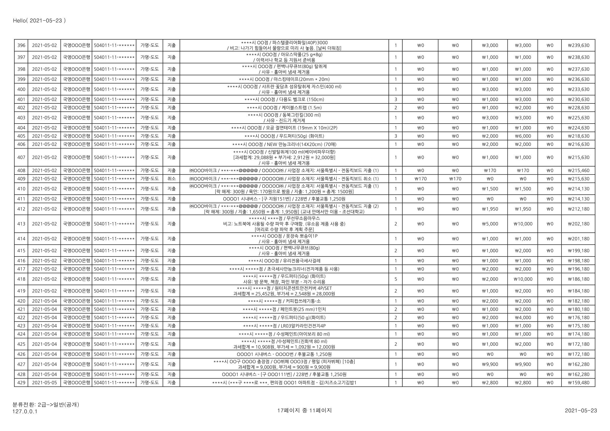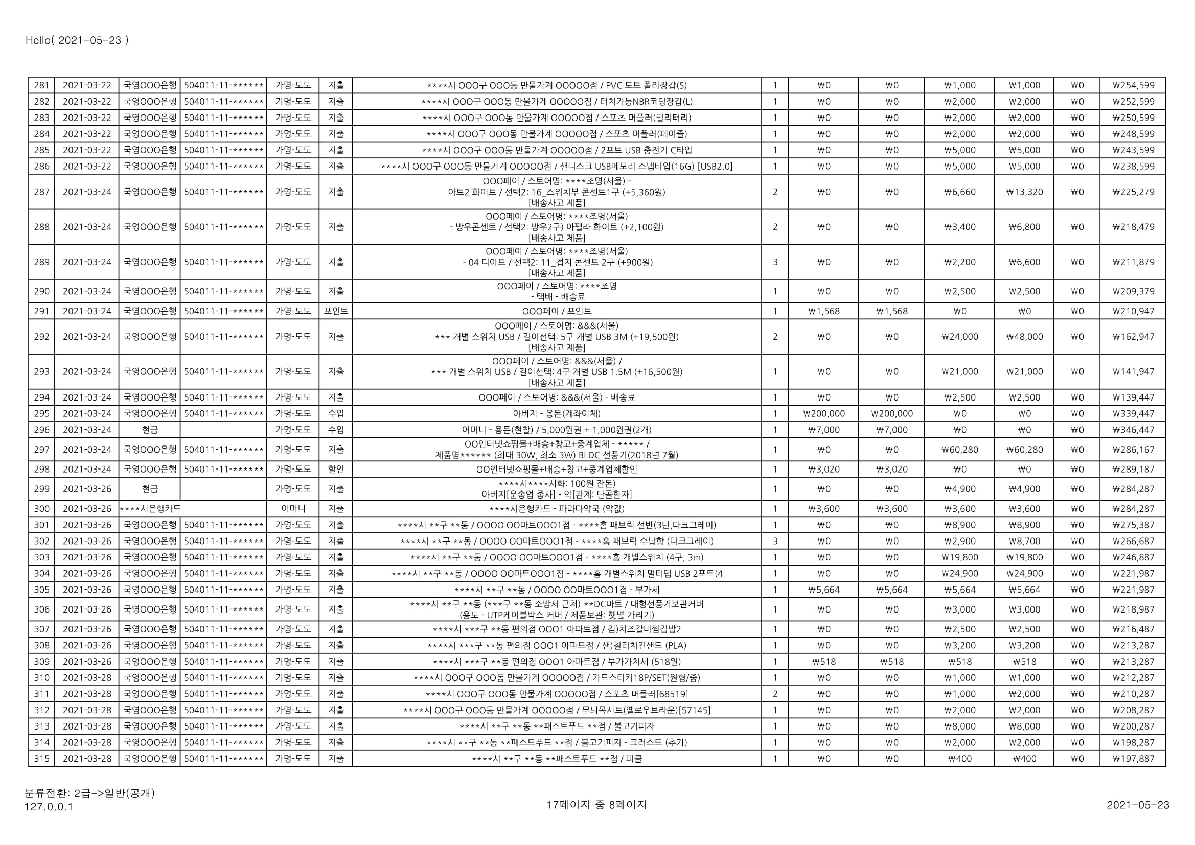 [심심풀이(pastime)] 용돈기입장 작성과 실제 작성 사례