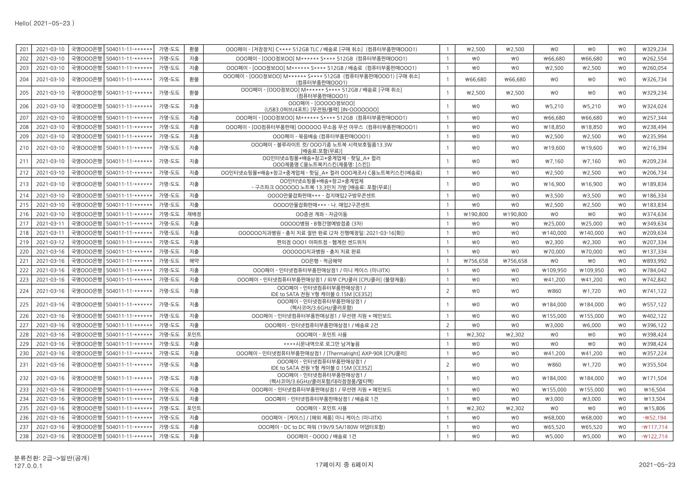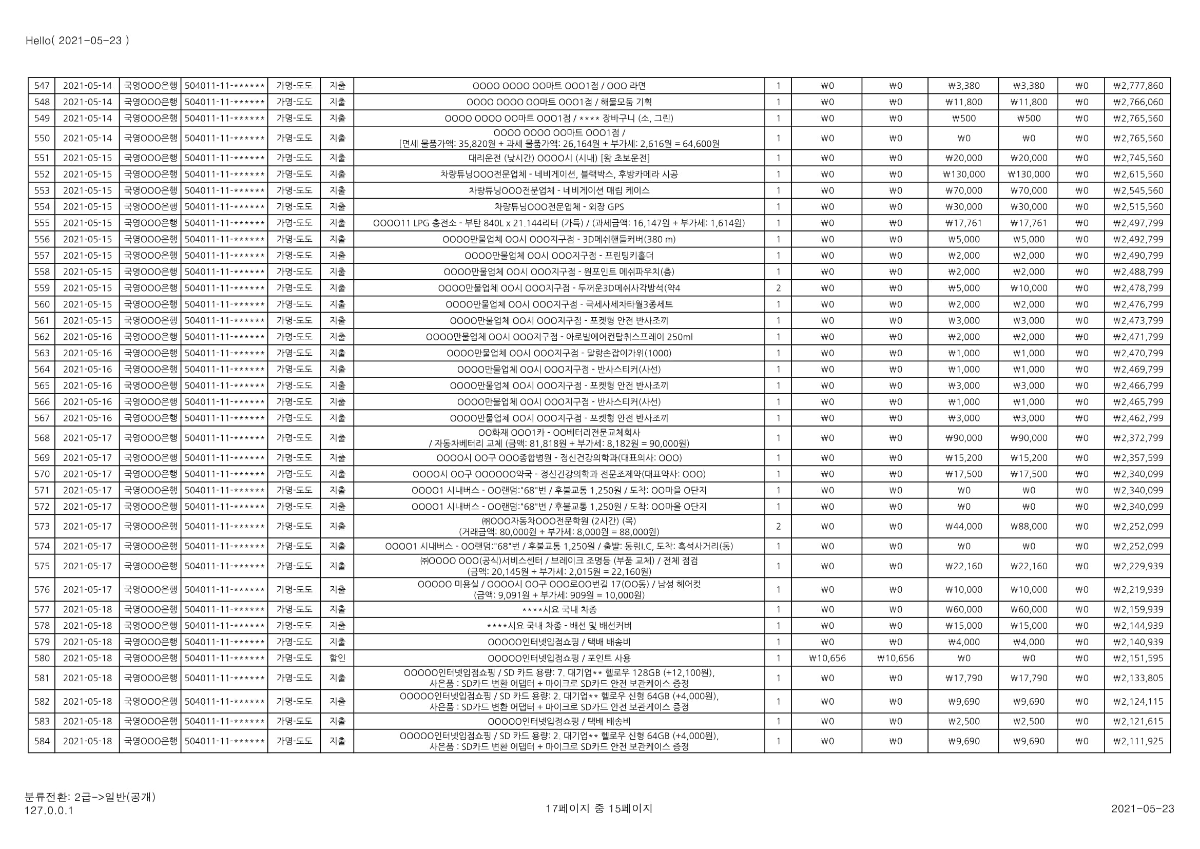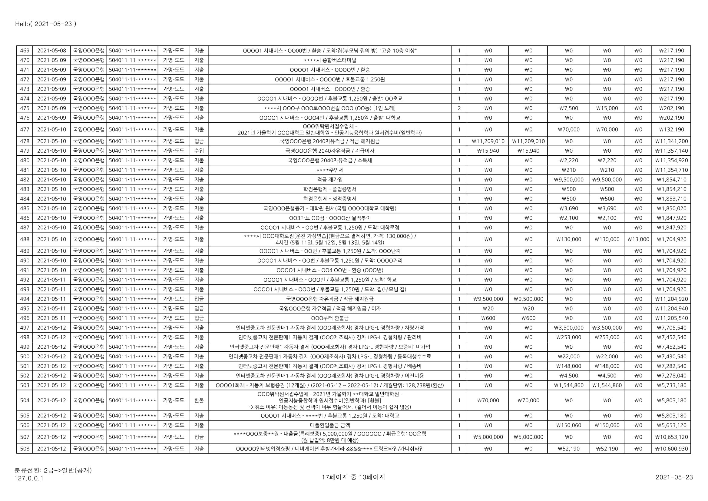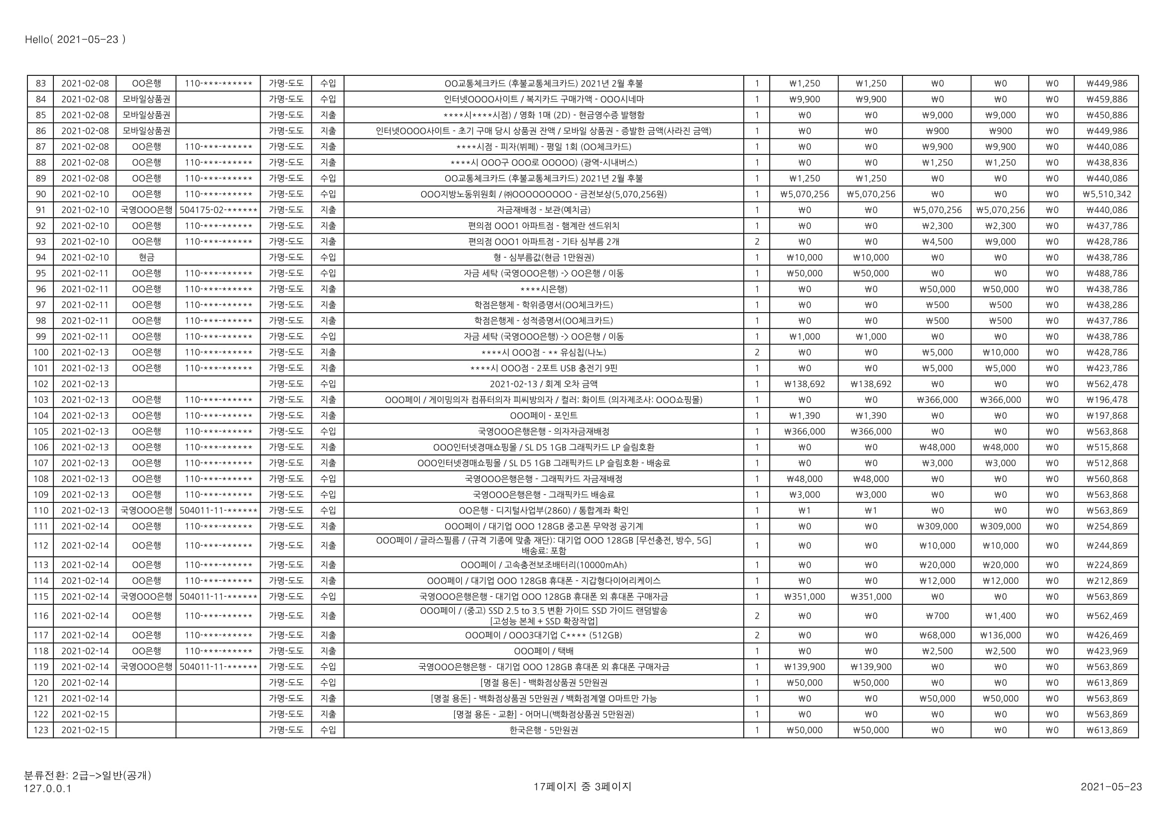 [심심풀이(pastime)] 용돈기입장 작성과 실제 작성 사례