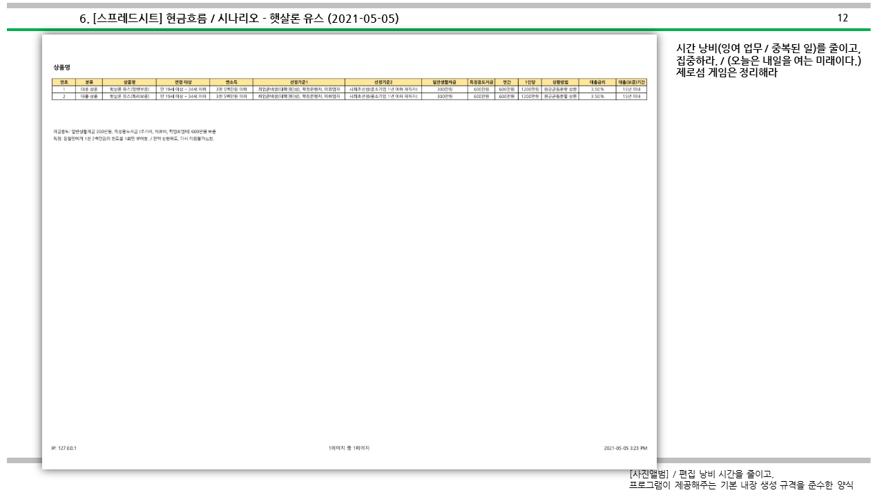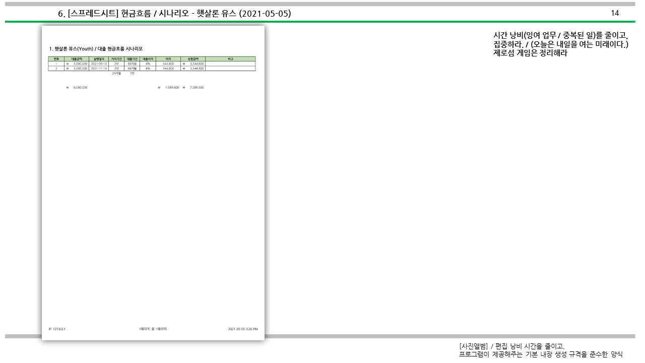 | [심심풀이(pastime)] 대출 / 현금흐름 시나리오 - 햇살론 유스 (174) | 2021.05.05 |