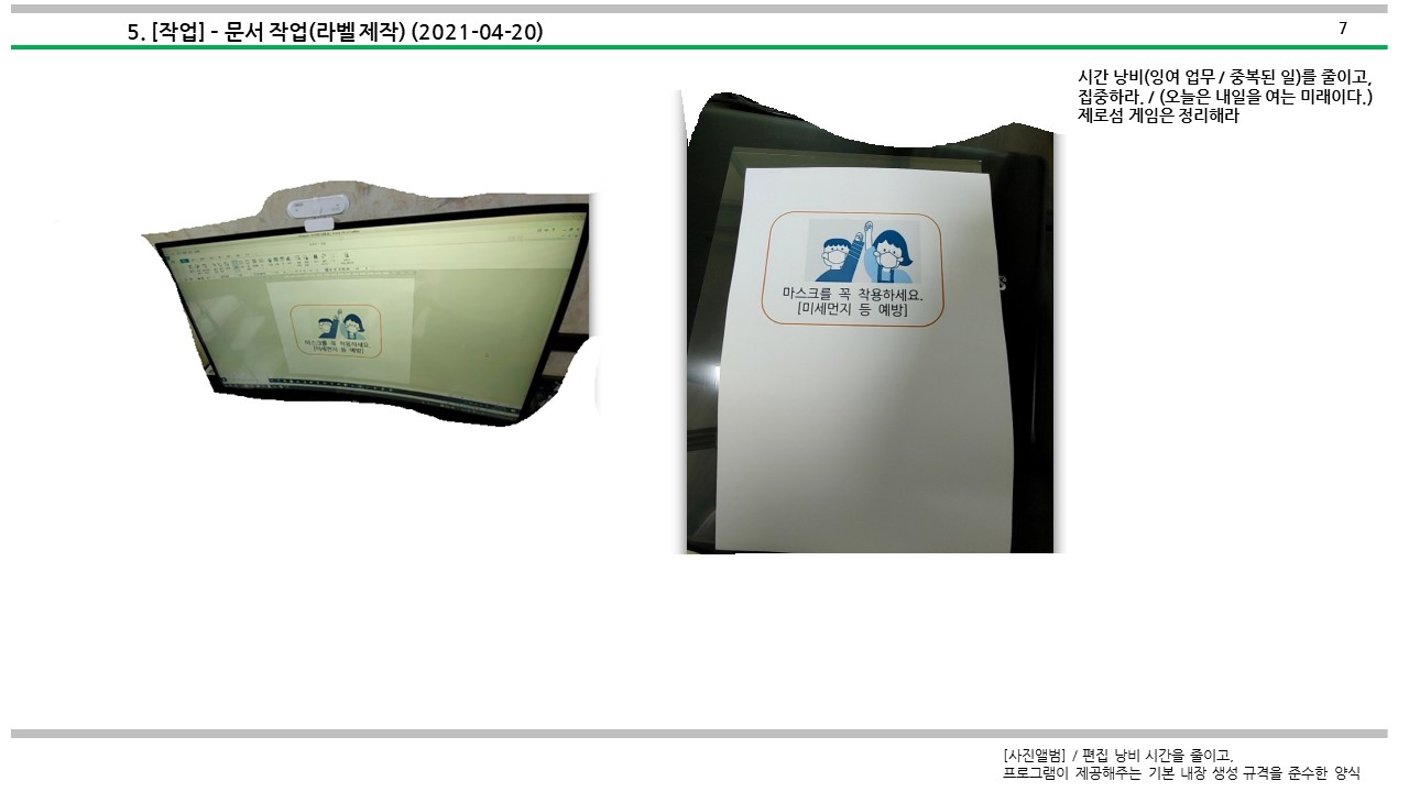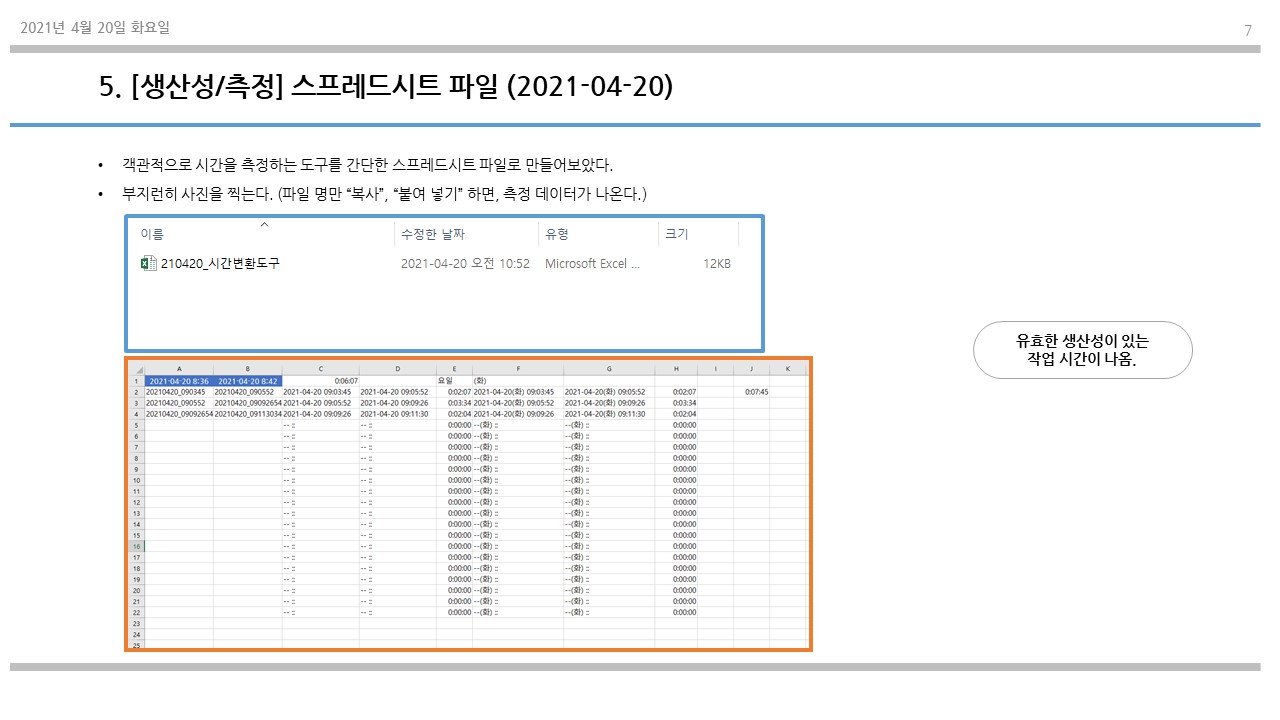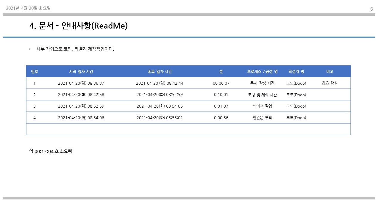 아래의 내용처럼 "시간 계산", "공정별 단위 작업"으로 작성하였다.