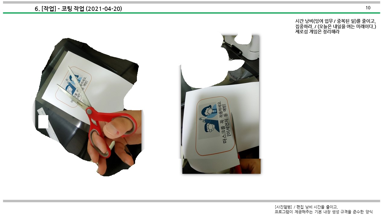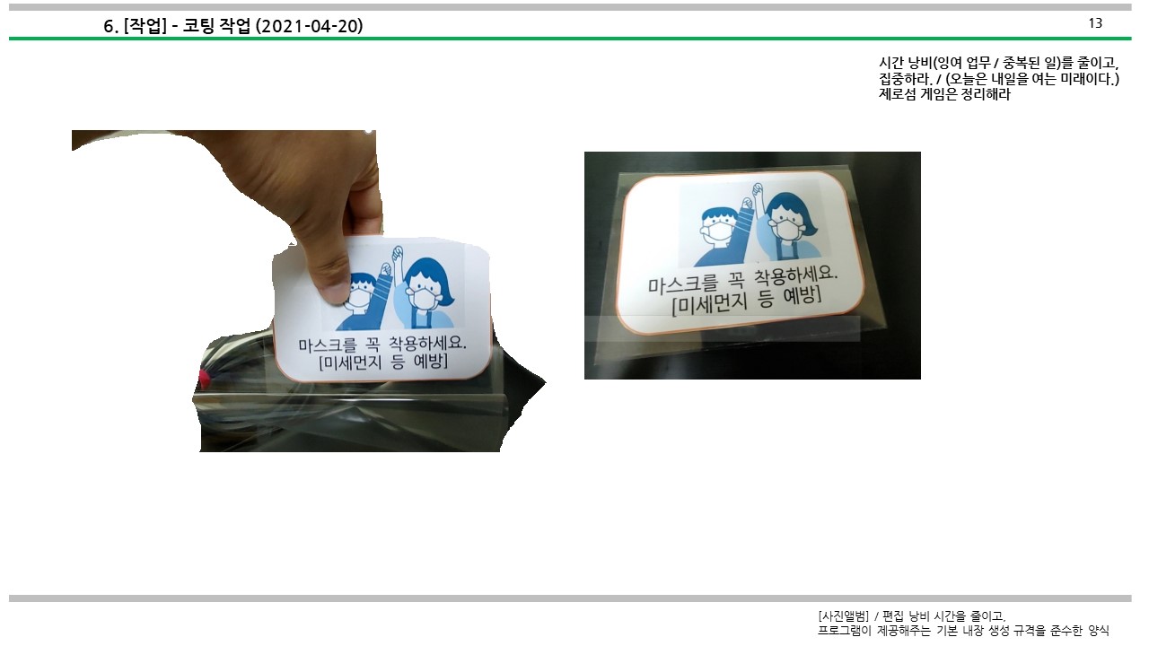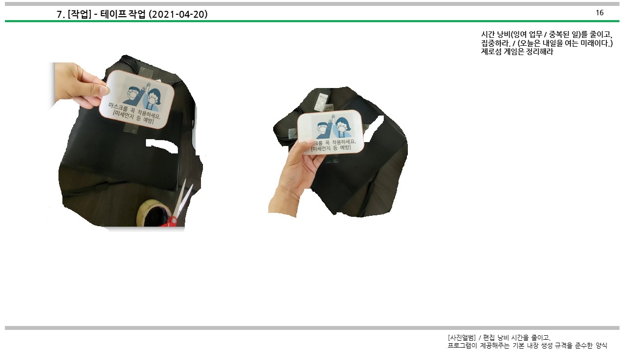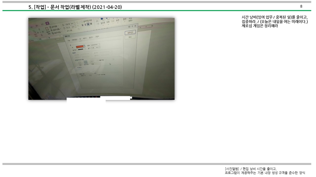 아래의 내용처럼 "시간 계산", "공정별 단위 작업"으로 작성하였다.