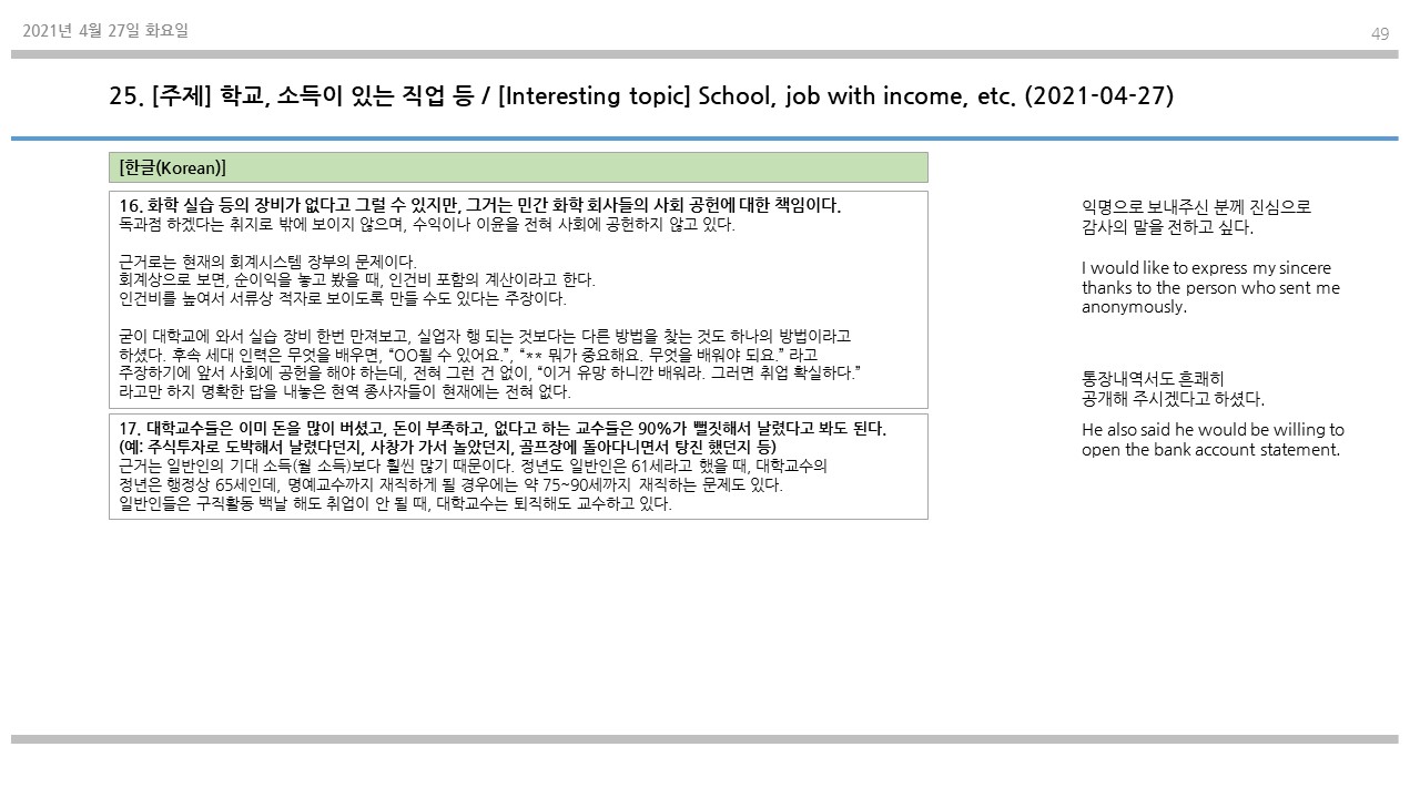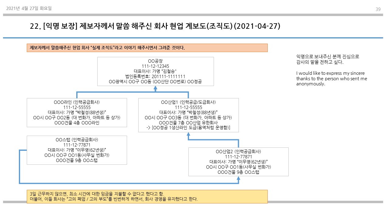 회사 명, 제품 명 등은 제거하였으니 참고하기 바란다.
