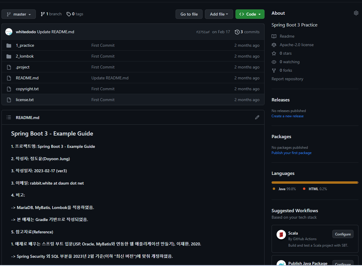 Spring-Boot 3 github 입문 소스코드 배포하고자 합니다.