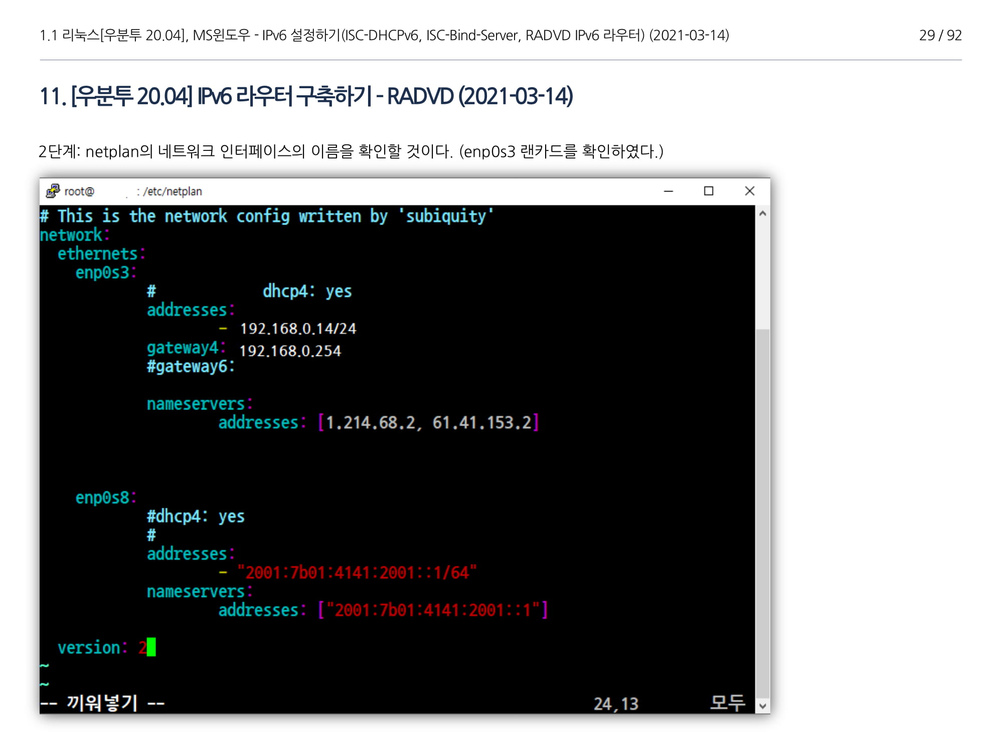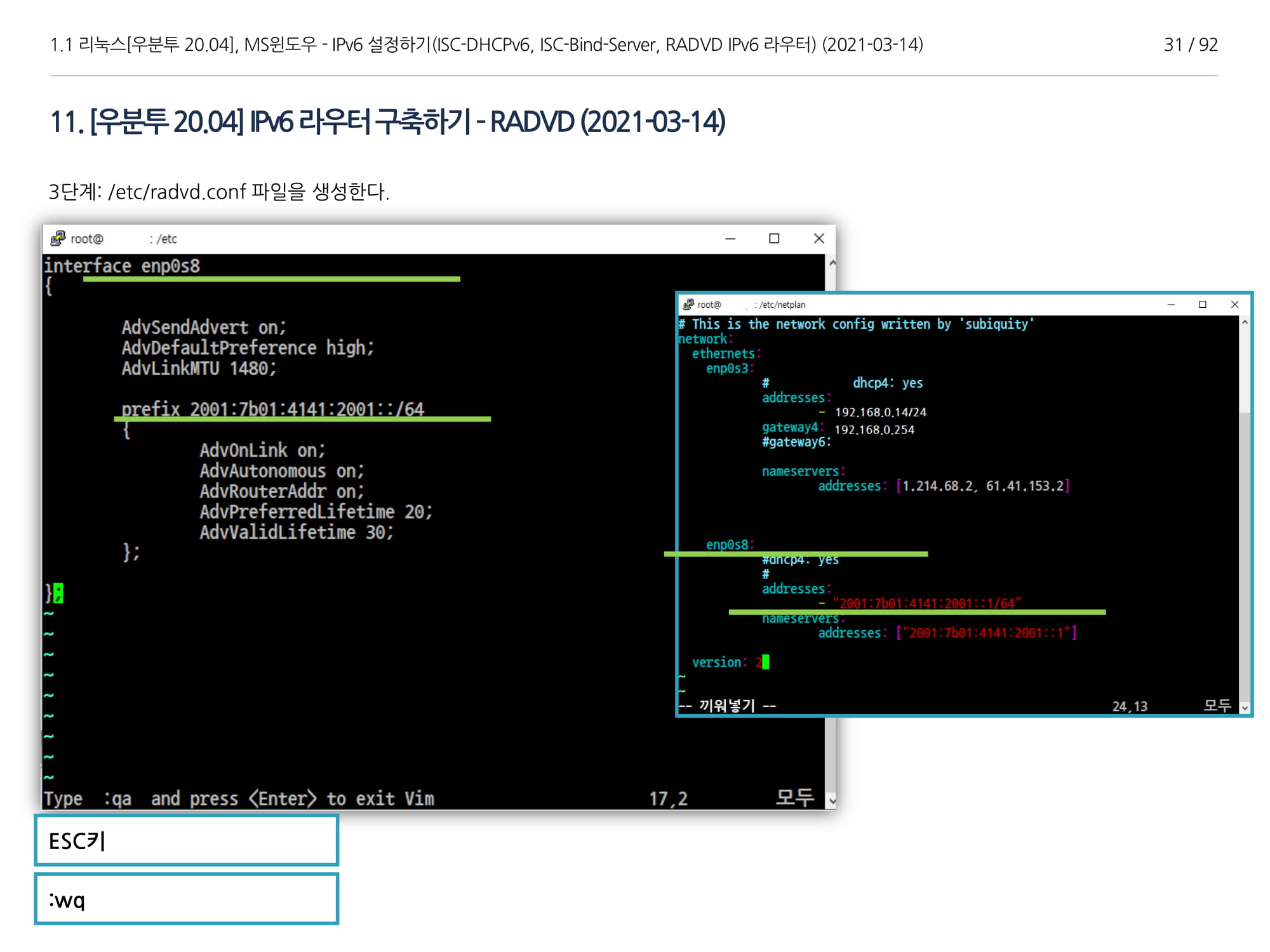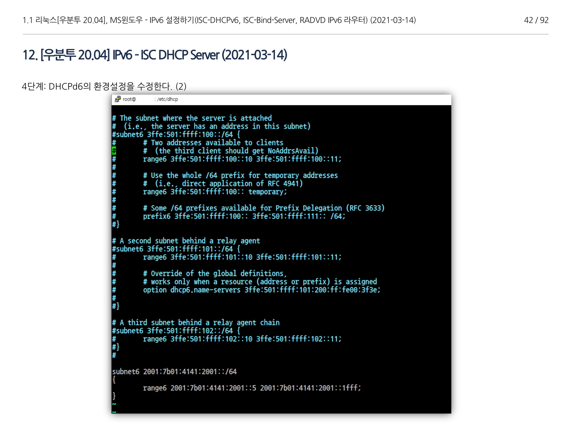 우분투 20.04, IPv6, ISC DHCPv6 Server, ISC-Bind-Server RADVD를 구축하는 방법에 대해서 소개하였다.