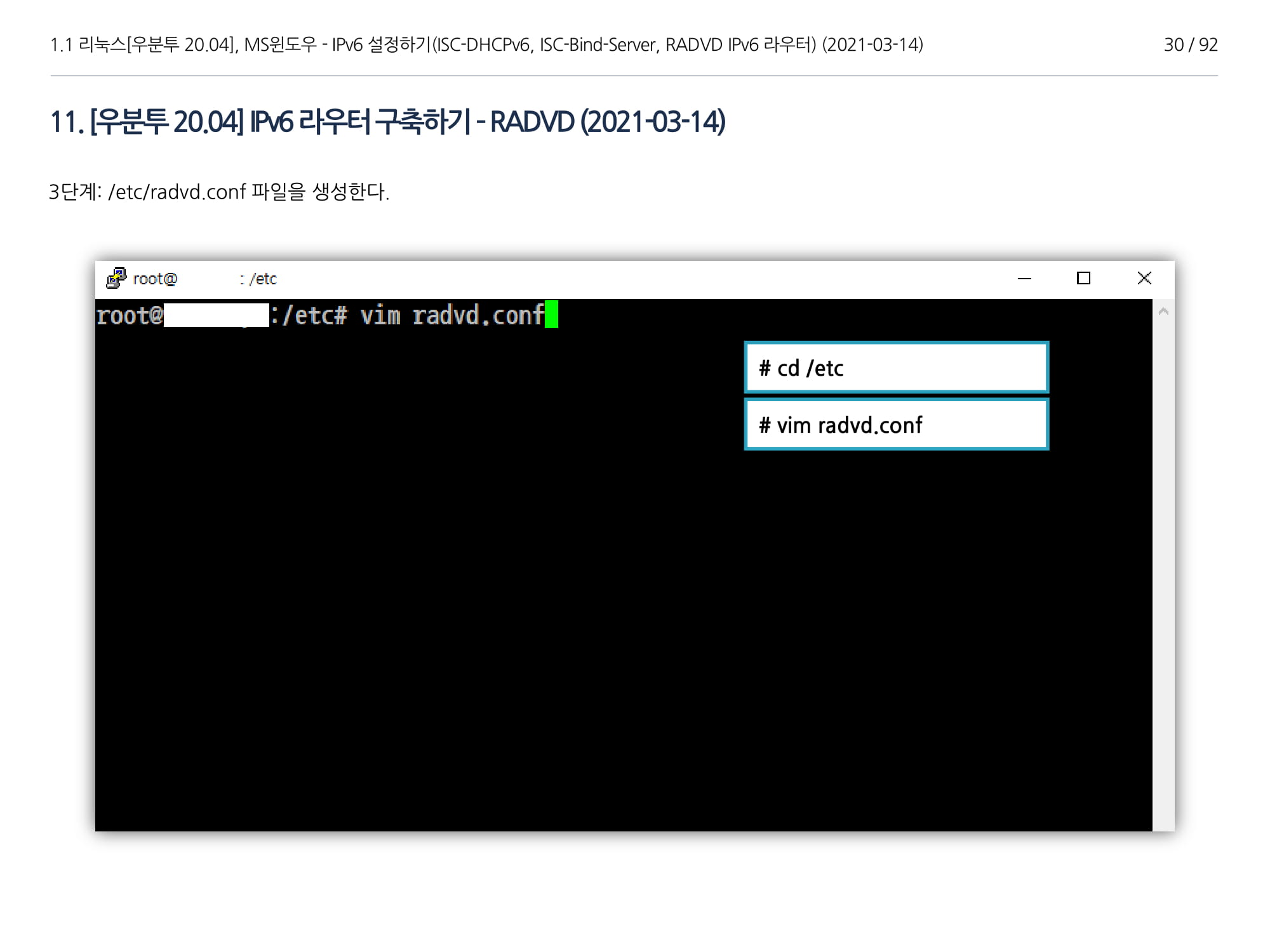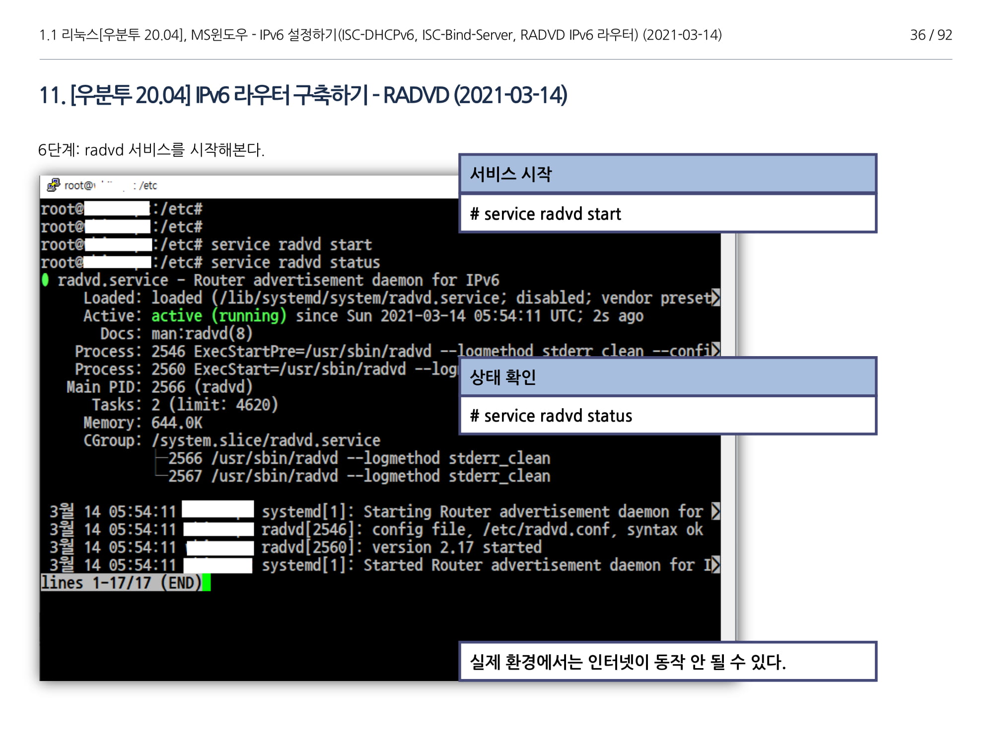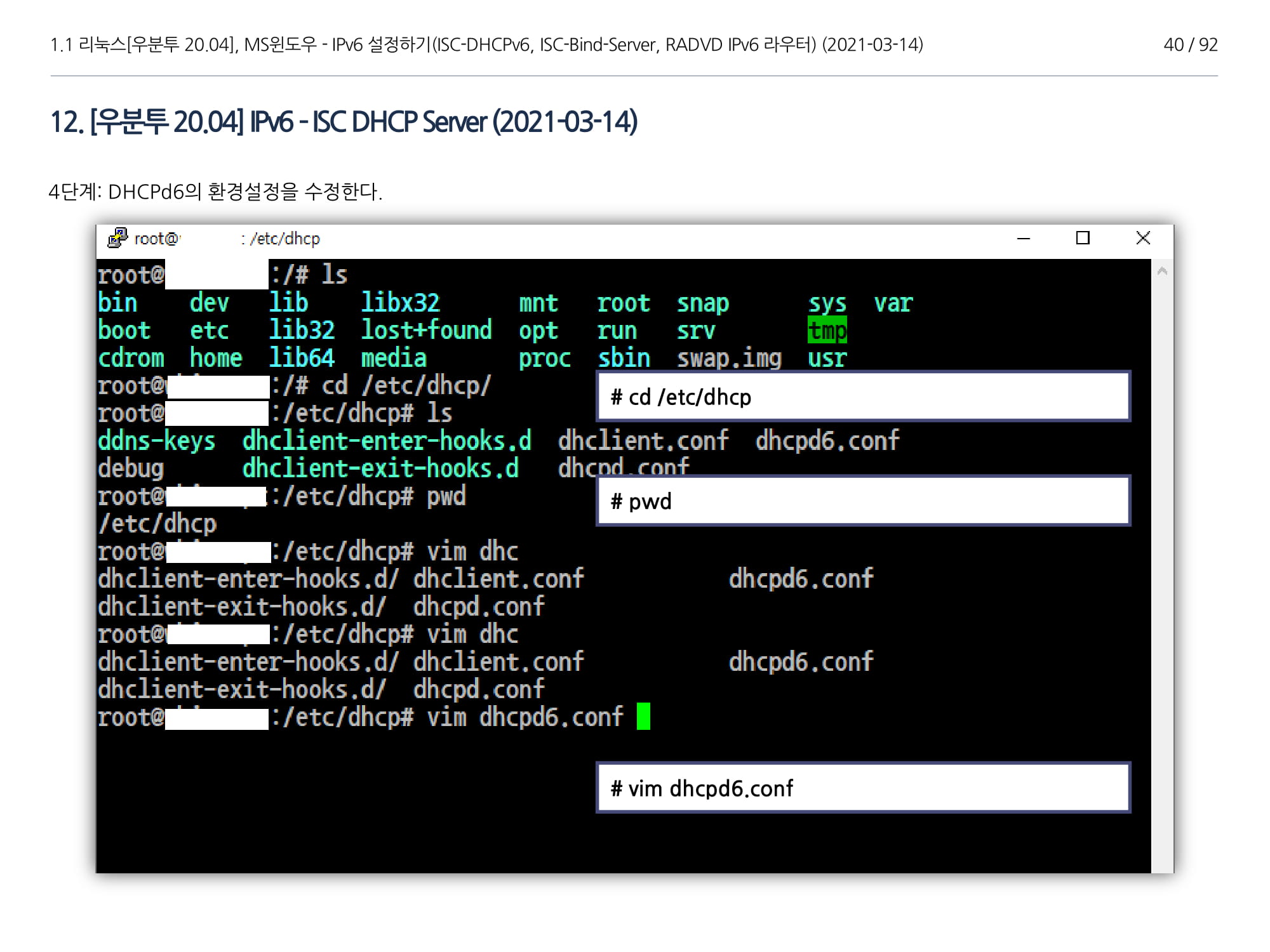 우분투 20.04, IPv6, ISC DHCPv6 Server, ISC-Bind-Server RADVD를 구축하는 방법에 대해서 소개하였다.