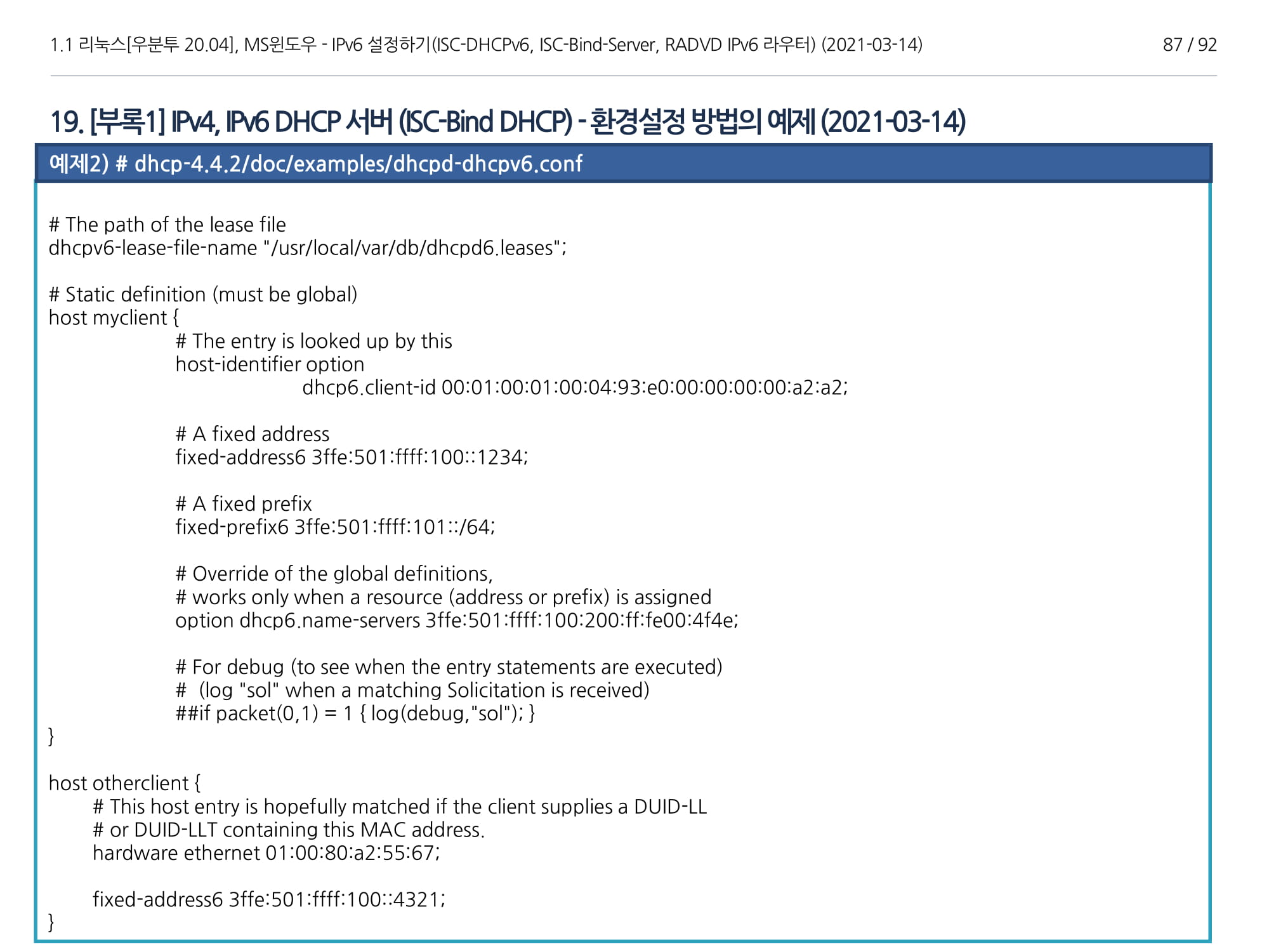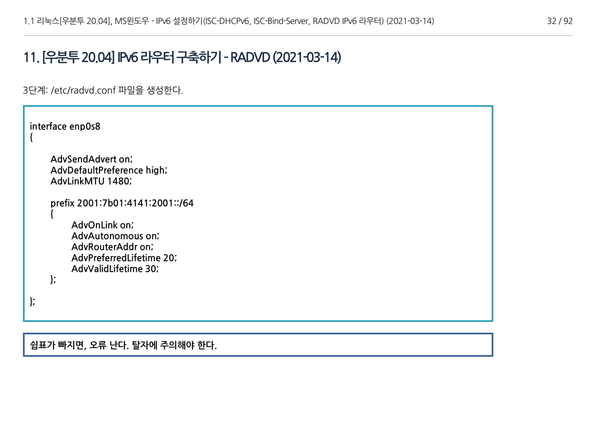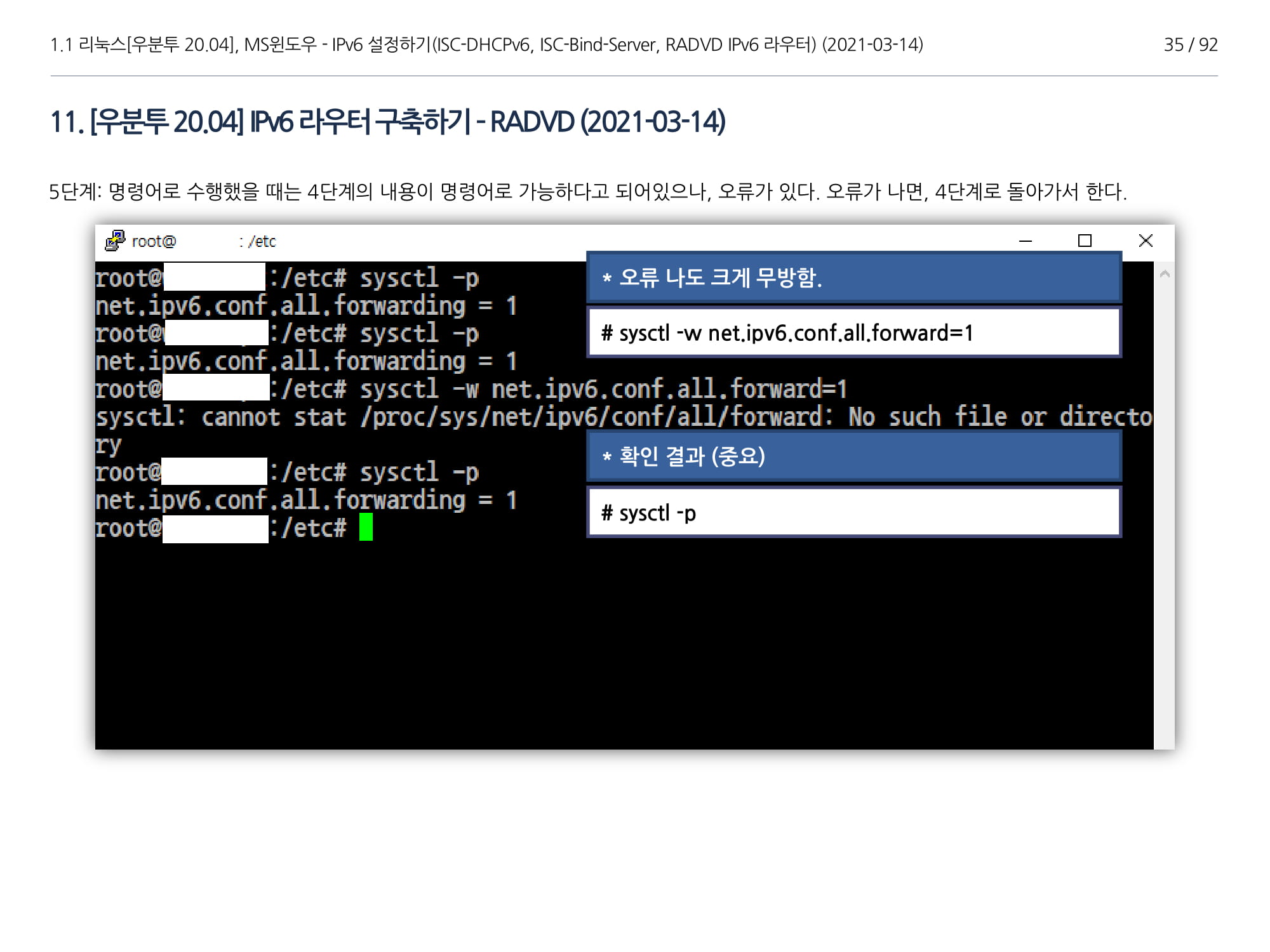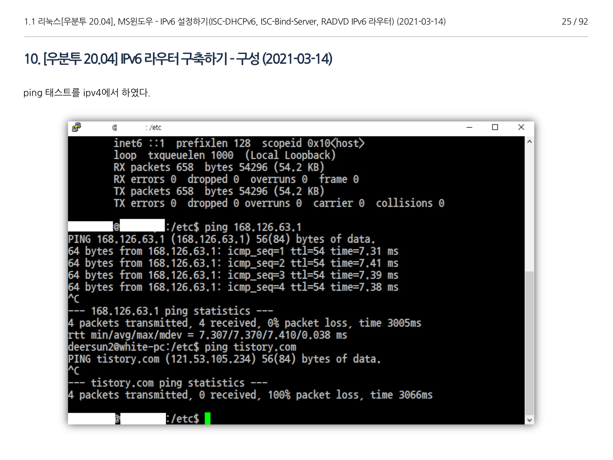 | [GNU(리눅스[Linux])] 우분투 20.04, ISC-Bind-Server, DHCPv6, RADVD(IPv6) 구축하기(1부) / 2021-03-14 19:40 https://yyman.tistory.com/1513 |