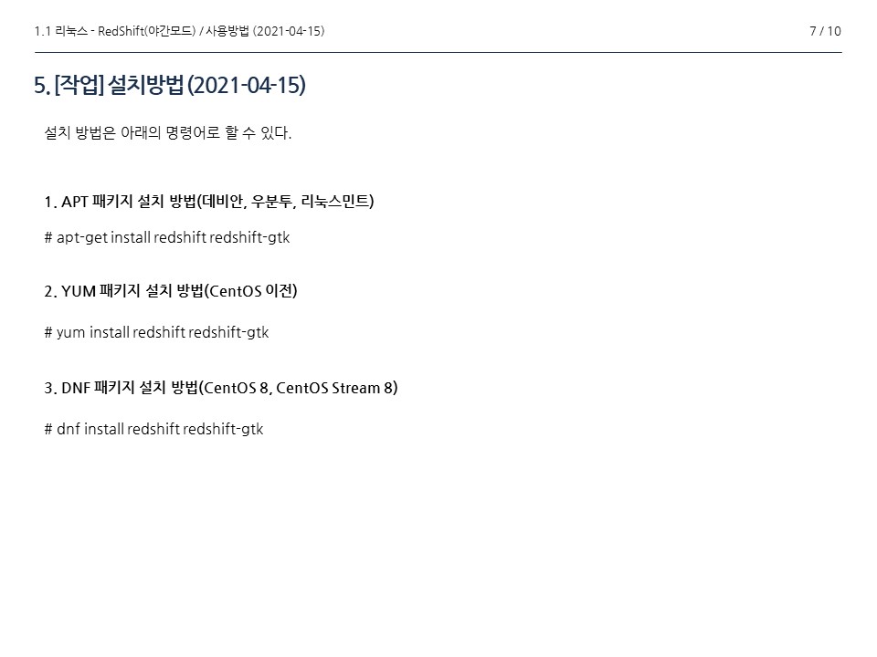 (시력보호[GNU - 리눅스(Linux)] 데비안(우분투), CentOS / RedShift - 야간모드(시력보호))