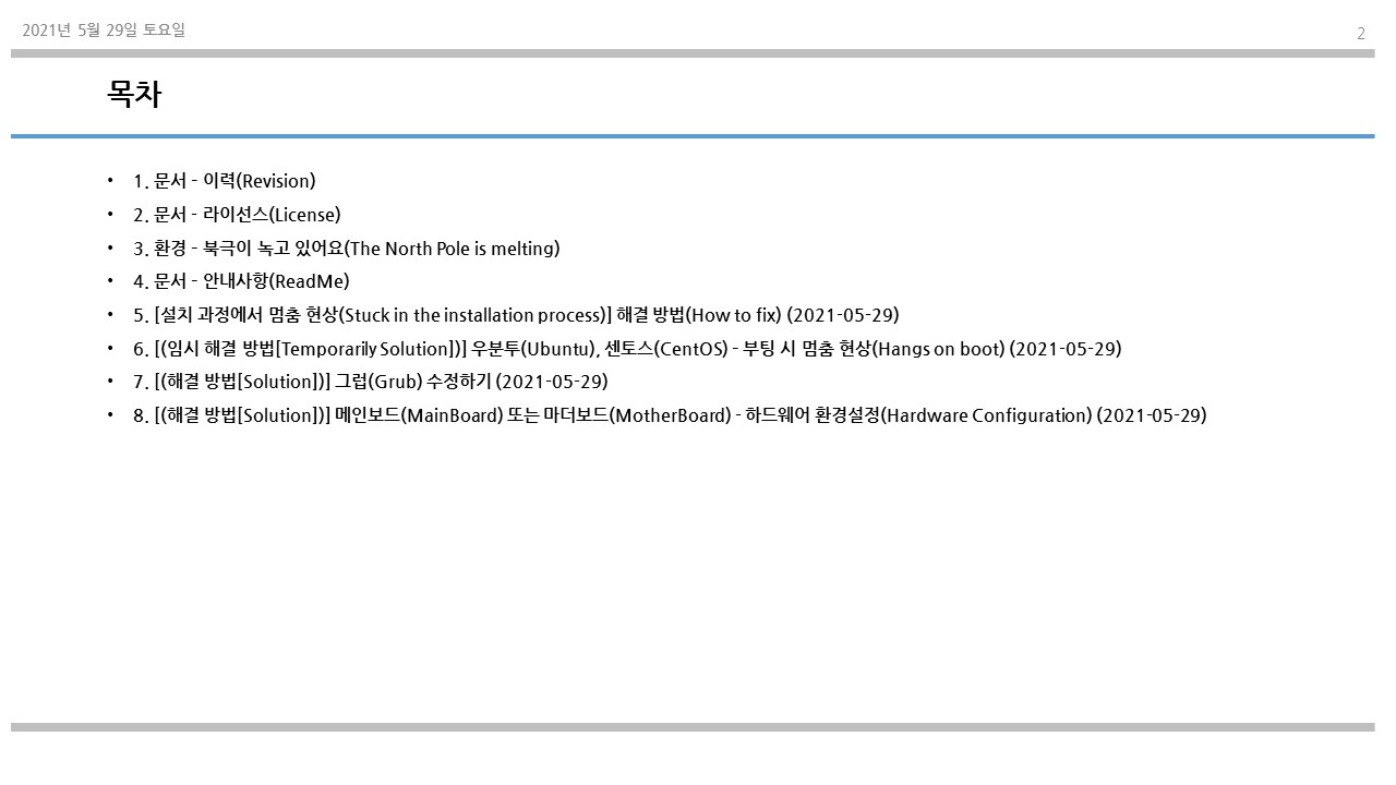 우분투 20.04, CentOS stream에서 부팅 시 화면이 멈췄을 때 조치하는 방법에 대해서 살펴보았다.