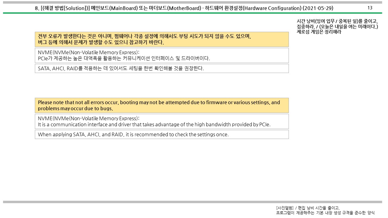 해당 문제가 발생할 수 있는 문제로는 최신 "그래픽카드"를 새로 설치한다던지, 최신 기종의 CPU와 메인보드를 접했을 때 생길 수 있는 것 중 하나이다.