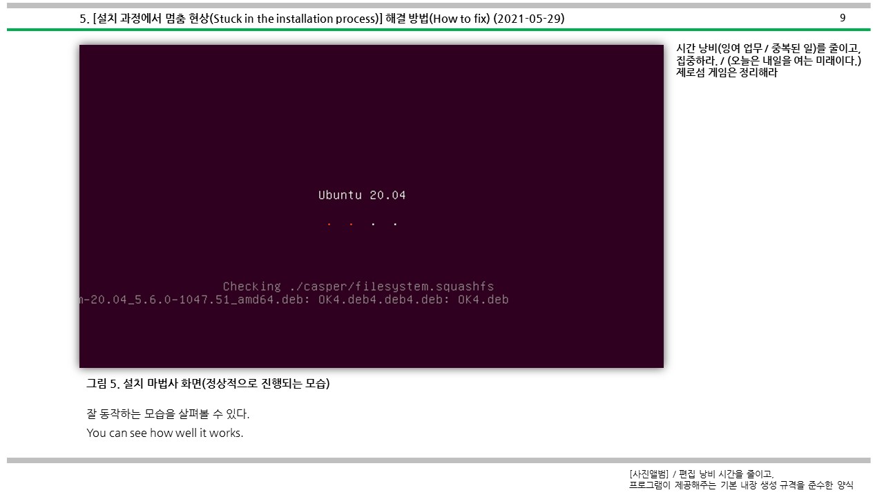부팅을 시도했는데, 멈춤 현상을 해결하는 방법에 대해서 소개하였다.