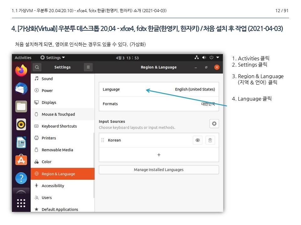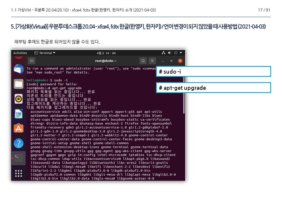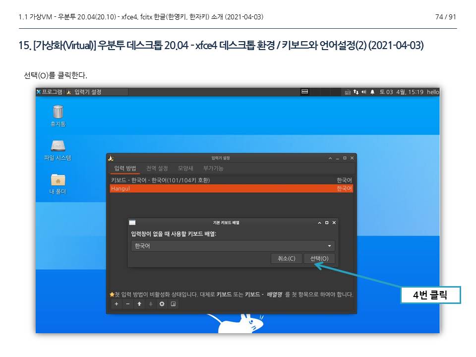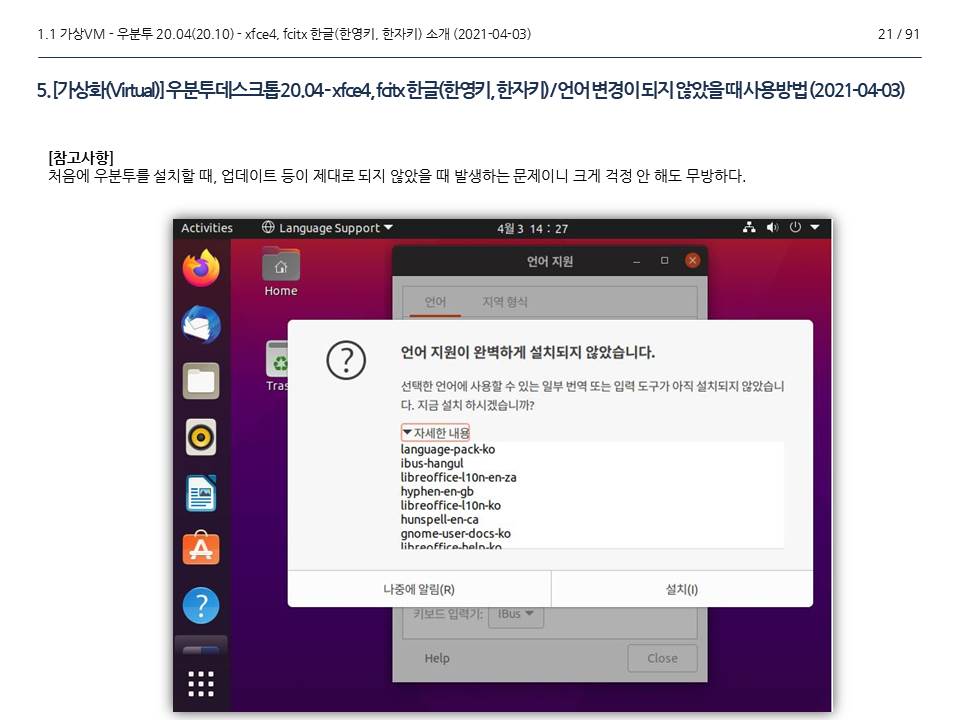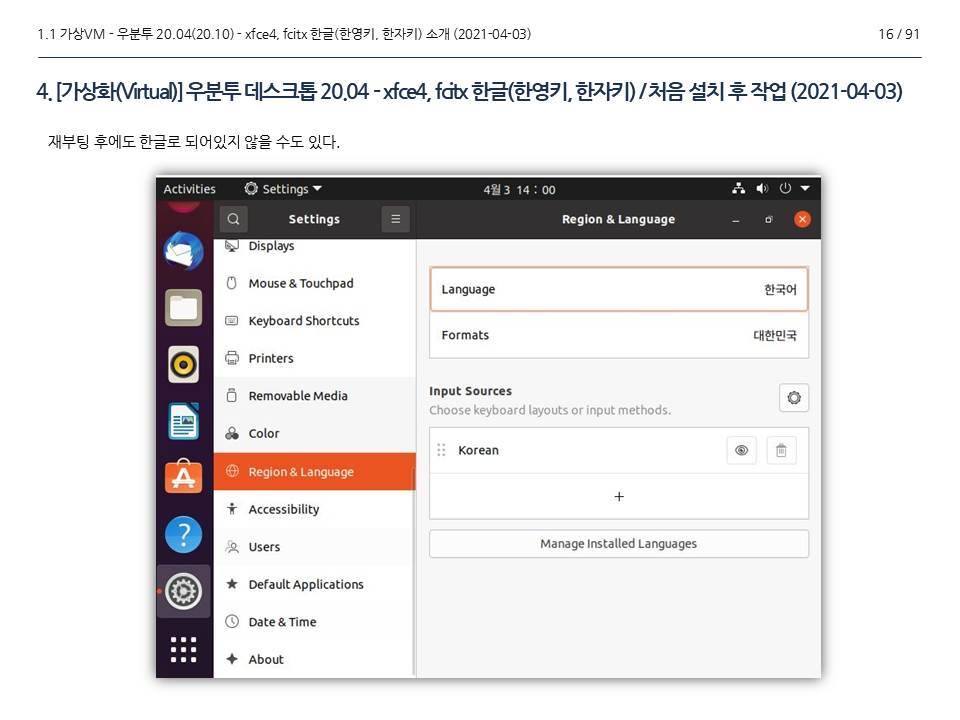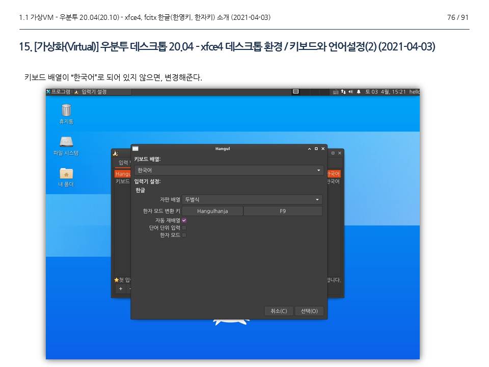 | [GNU - 리눅스(Linux)] 우분투 20.04(20.10) / fcitx 한글 키보드, 그래픽카드 설치(1/4), 2021-04-03. 22:06 |