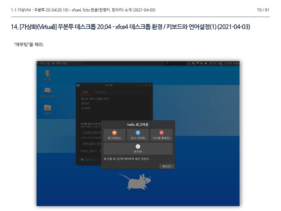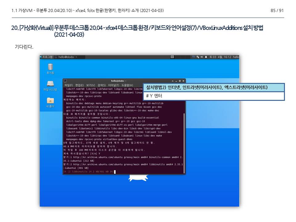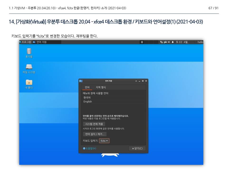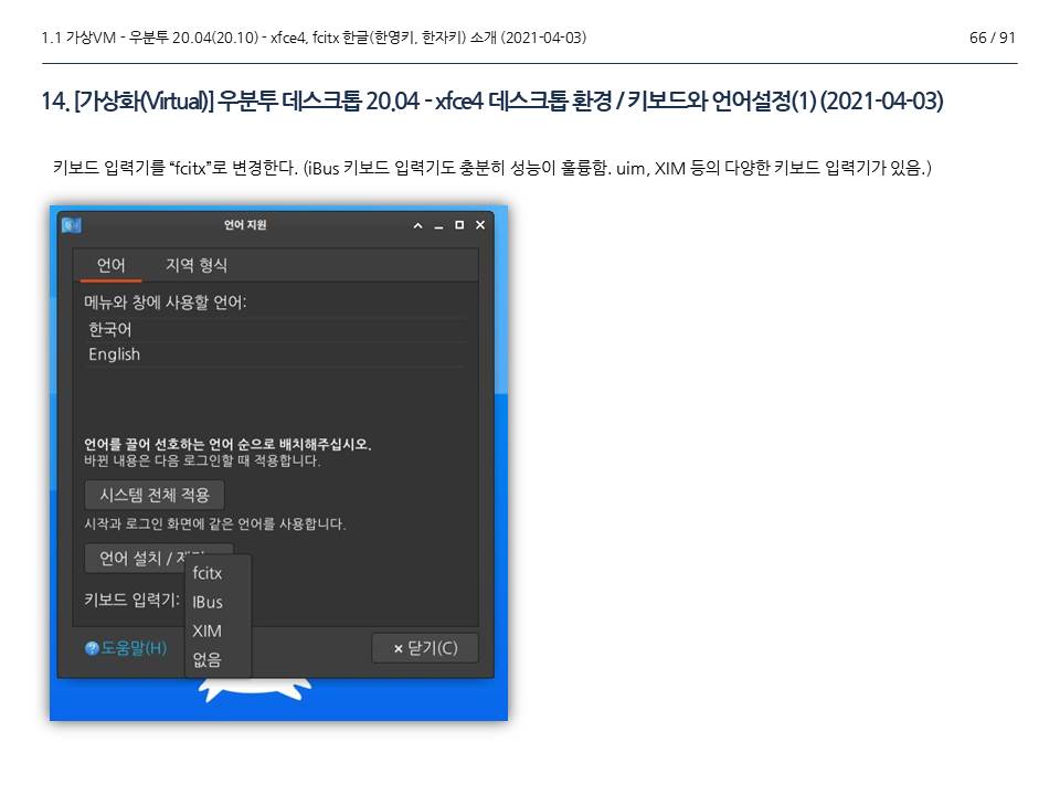 | [GNU - 리눅스(Linux)] 우분투 20.04(20.10) / fcitx 한글 키보드, 그래픽카드 설치(3/4), 2021-04-03 22:19 |