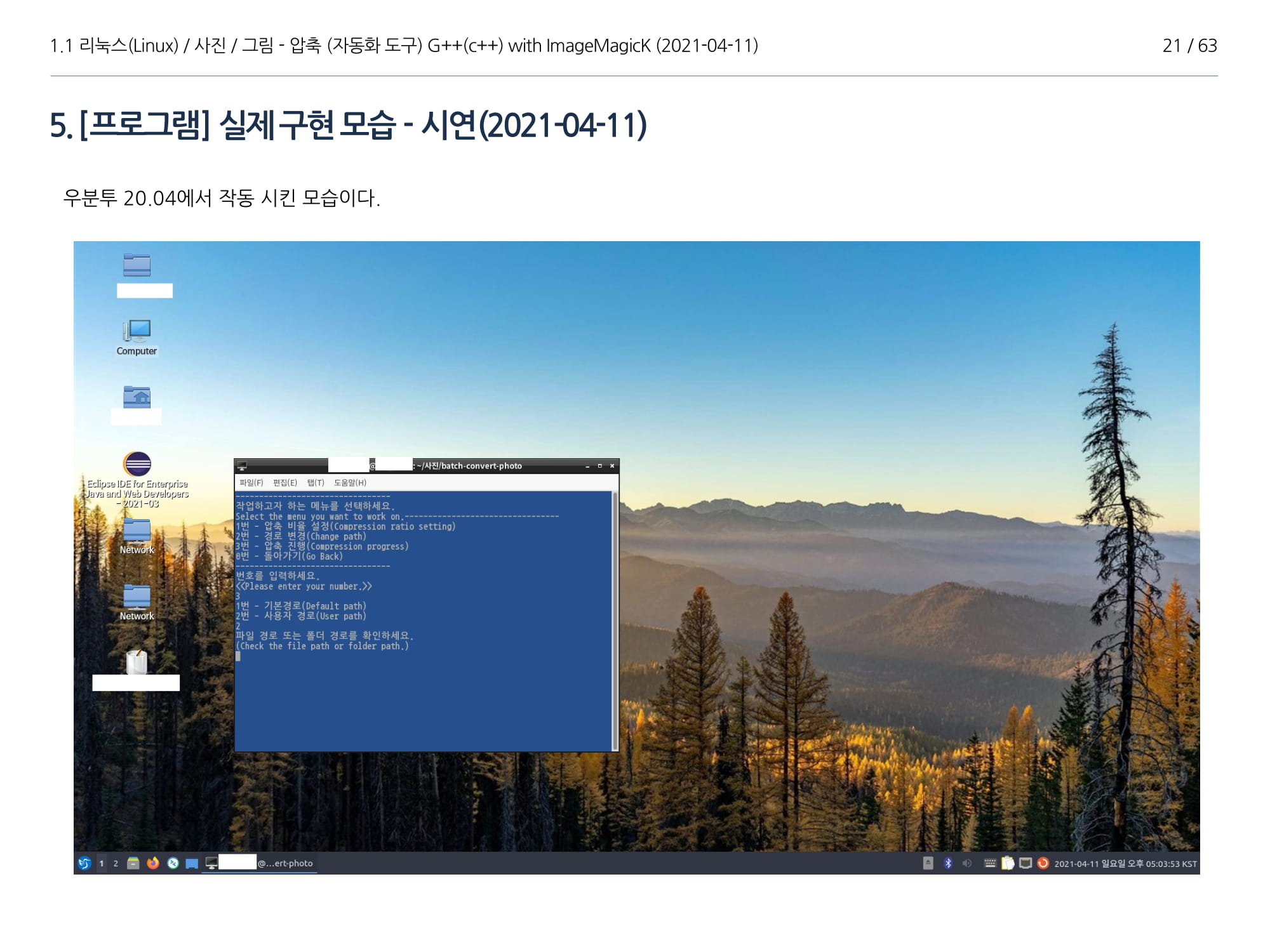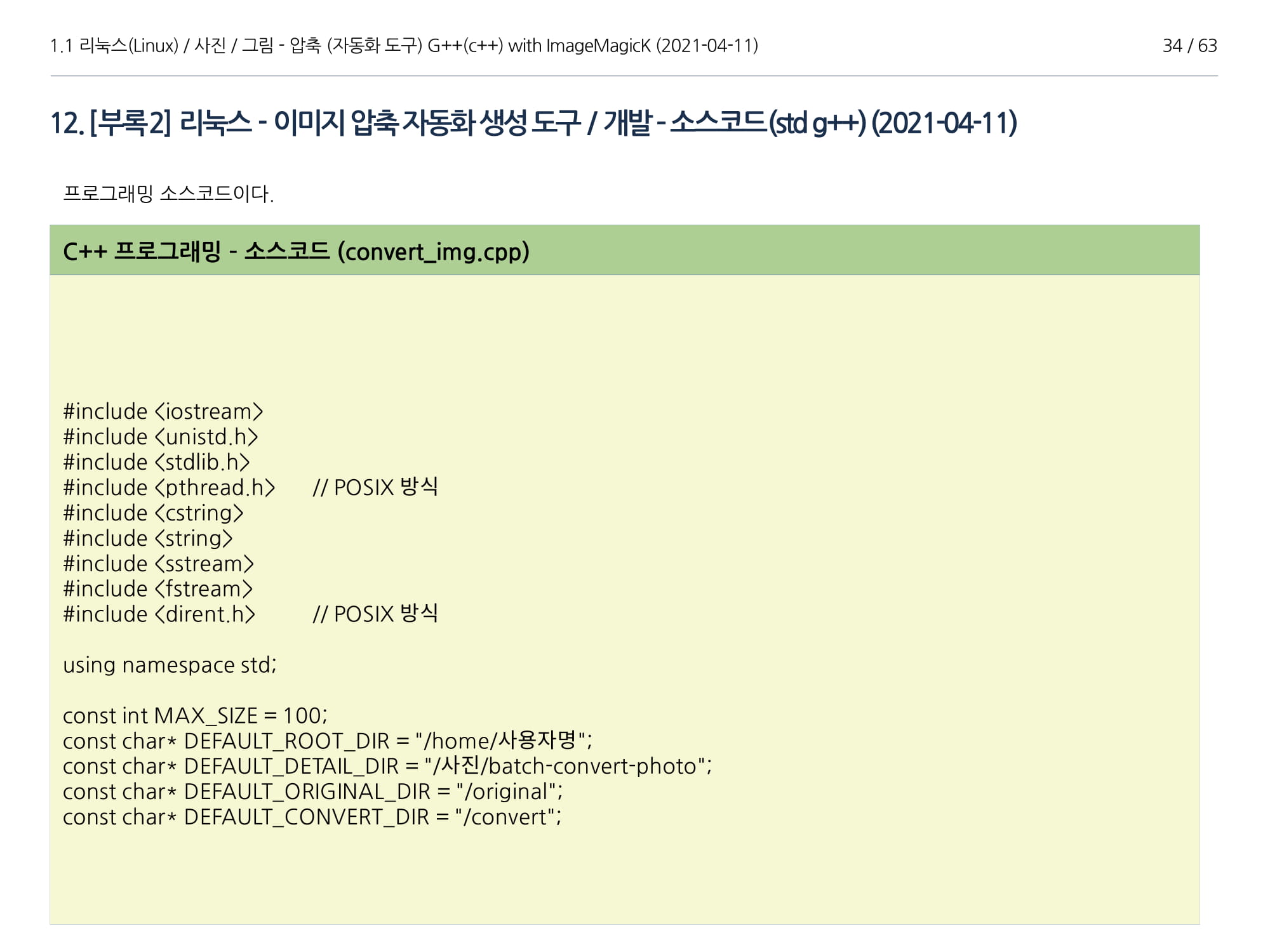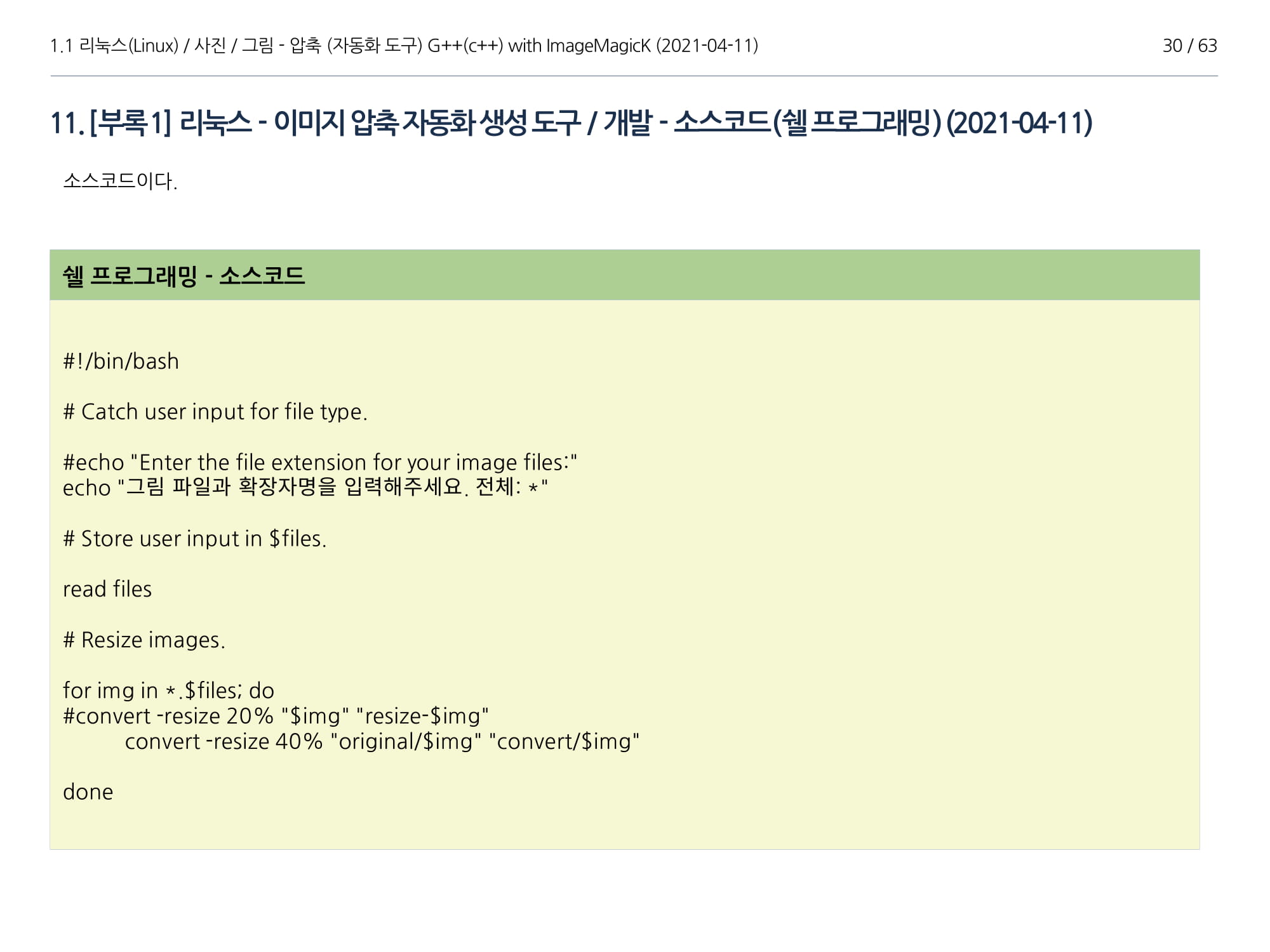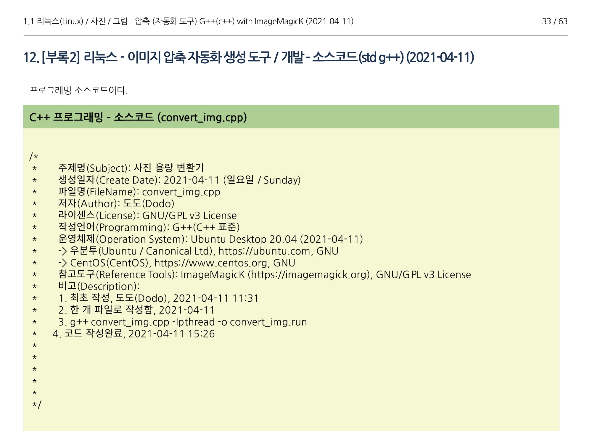 | [GNU - C, C++] 리눅스(Linux) - 사진 압축 자동화 도구(g++, 쉘(Shell)) (2/2), 2021-04-11 21:43 |